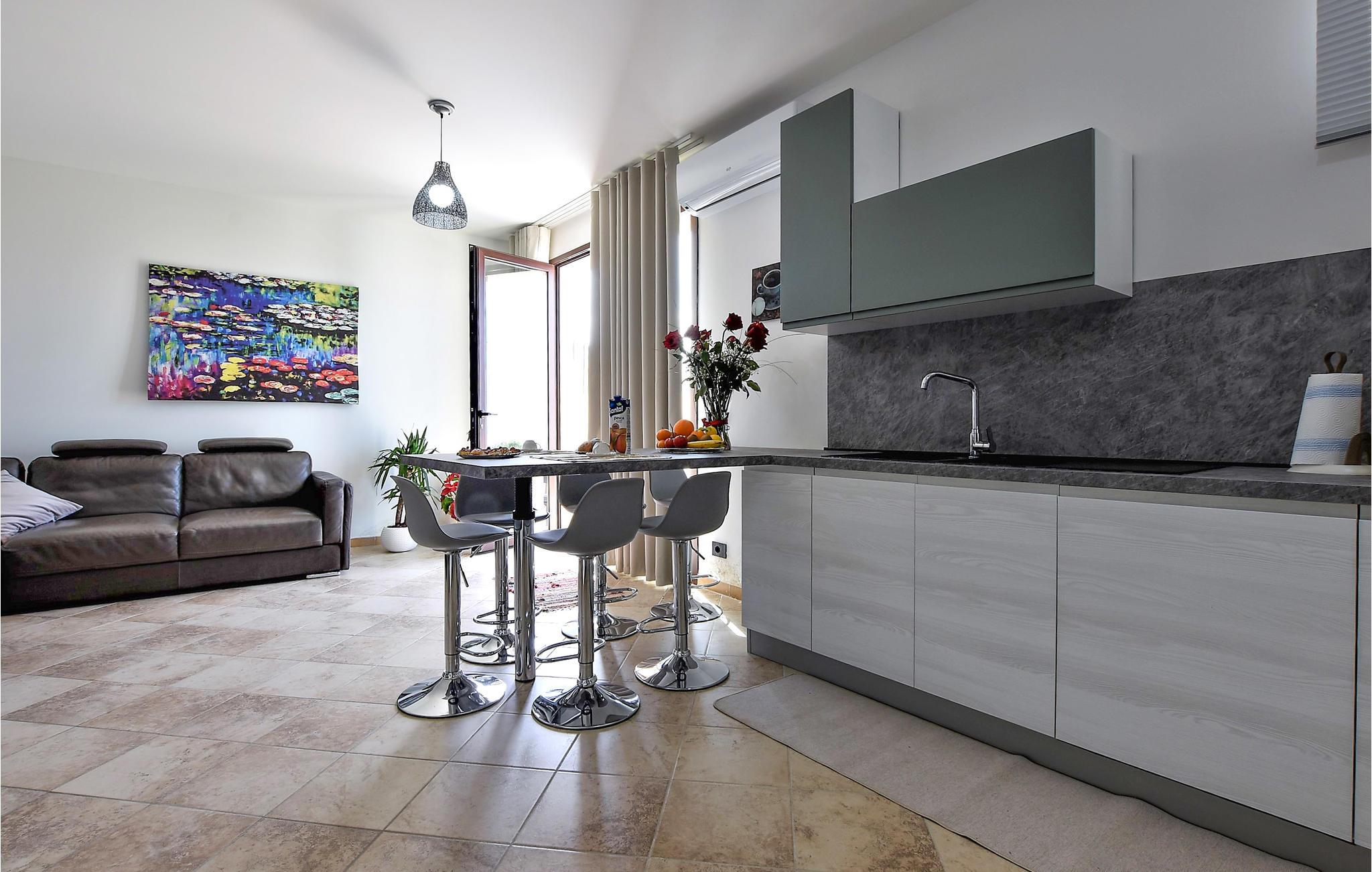 Denne skønne ferielejlighed i Custonaci har en dejlig udsigt over havet og kysten.