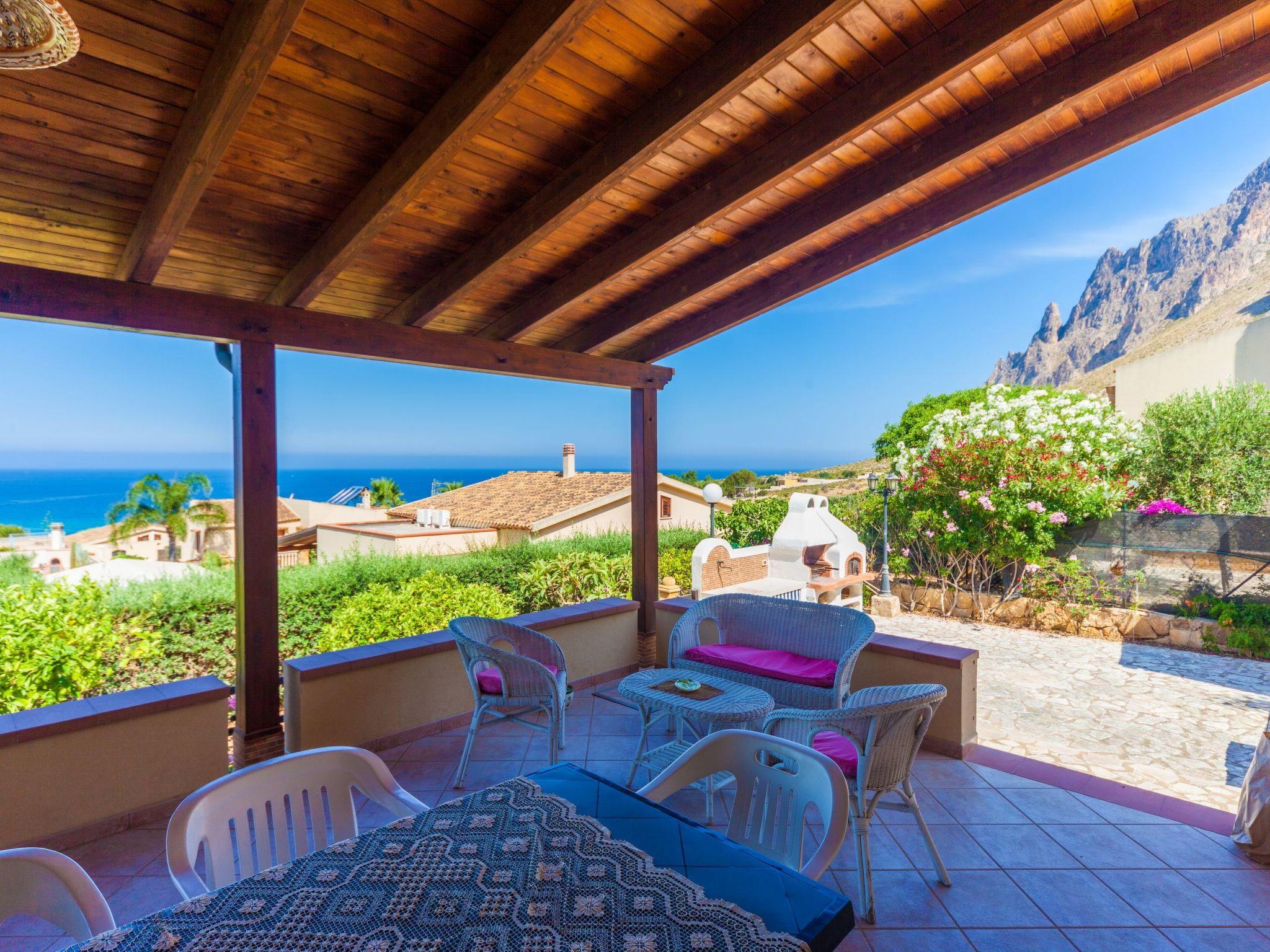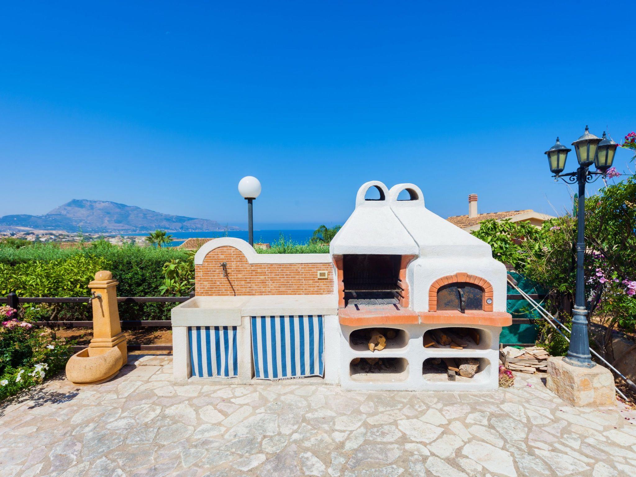 The house has a breathtaking exterior where you can find many corners where you can enjoy your stay: there is the pool area that overlooks the sea; there is a living room where you can read a book, next to the pool; the barbecue area, perfectly equipped with a wood-burning oven where you can make your own pizzas; there are lots of flowers and trees in the park; and then there is the terrace, a wonderful balcony overlooking the Mediterranean Sea!