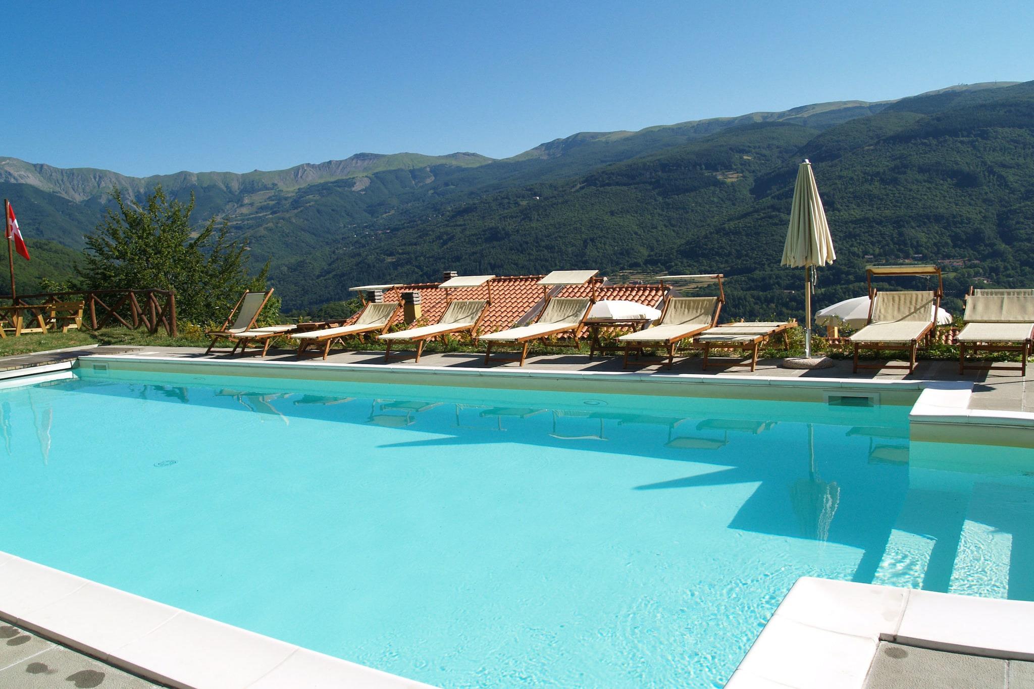 Flygt til denne fredfyldte hytte i Pistoia Apenninerne, beliggende 900 meter i den frodige Sestaione-dal nær Cutigliano. Ideel året rundt, dette bjergretræte tilbyder afslapning og eventyr i lige grad. Om sommeren kan du slappe af i panoramapoolen, slentre i skovstier eller nyde havens solplettede fred. Mountainbikere, vandrere og spændingssøgende vil elske den nærliggende Gravity Park Doganaccia, Canyon Park og ridestier. Om vinteren bliver hytten et snedækket tilflugtssted. Gå på ski på de familievenlige pister i Doganaccia eller udforsk Abetones 50 km pister og panoramalifter. Børn kan nyde tubing og snesko, mens haven er perfekt til snedækket sjov. Efter en dag udendørs kan du hygge dig i fællesområdet med en lokal vin eller slappe af på din private terrasse. Udforsk charmerende Cutigliano (4 km), spis på Il Nonno Cianco eller Trattoria da Fagiolino, og besøg Pistoia, Firenze eller Pisa - alt inden for rækkevidde. Oplev nærliggende ædelstene som San Marcello-hængebroen, eller se stjerneblik på Gavinanas observatorium. Uanset om det er sommervandreture eller vinterskiløb, byder denne hytte på toscansk alpin charme, lokalt køkken og natur lige uden for døren.