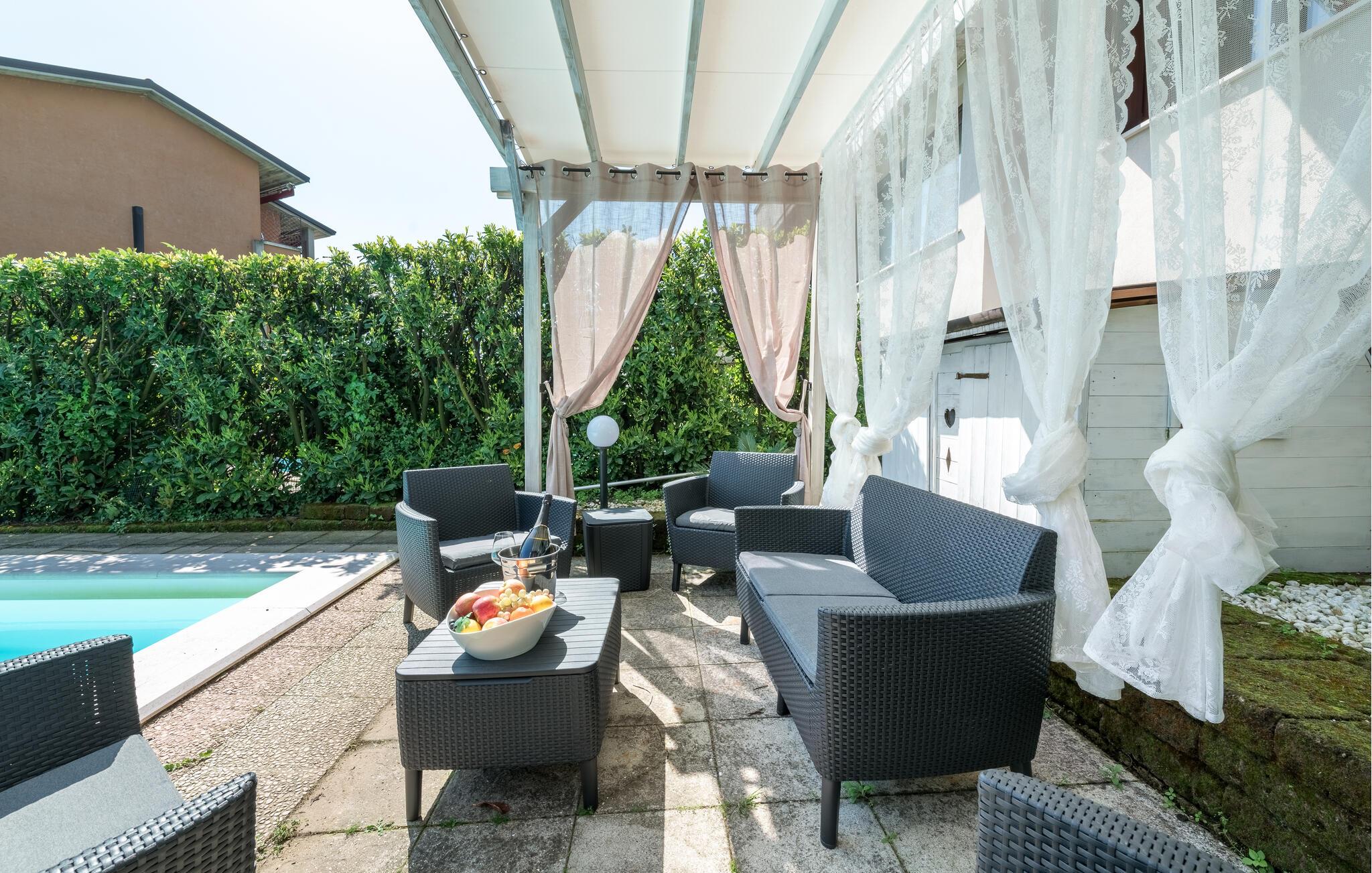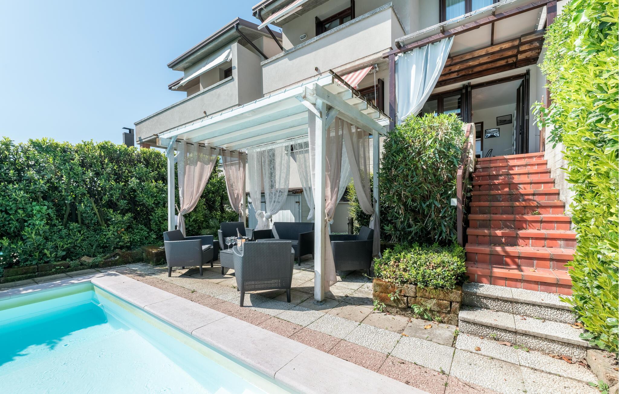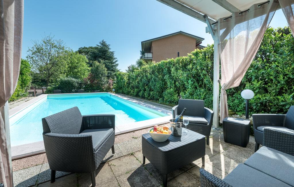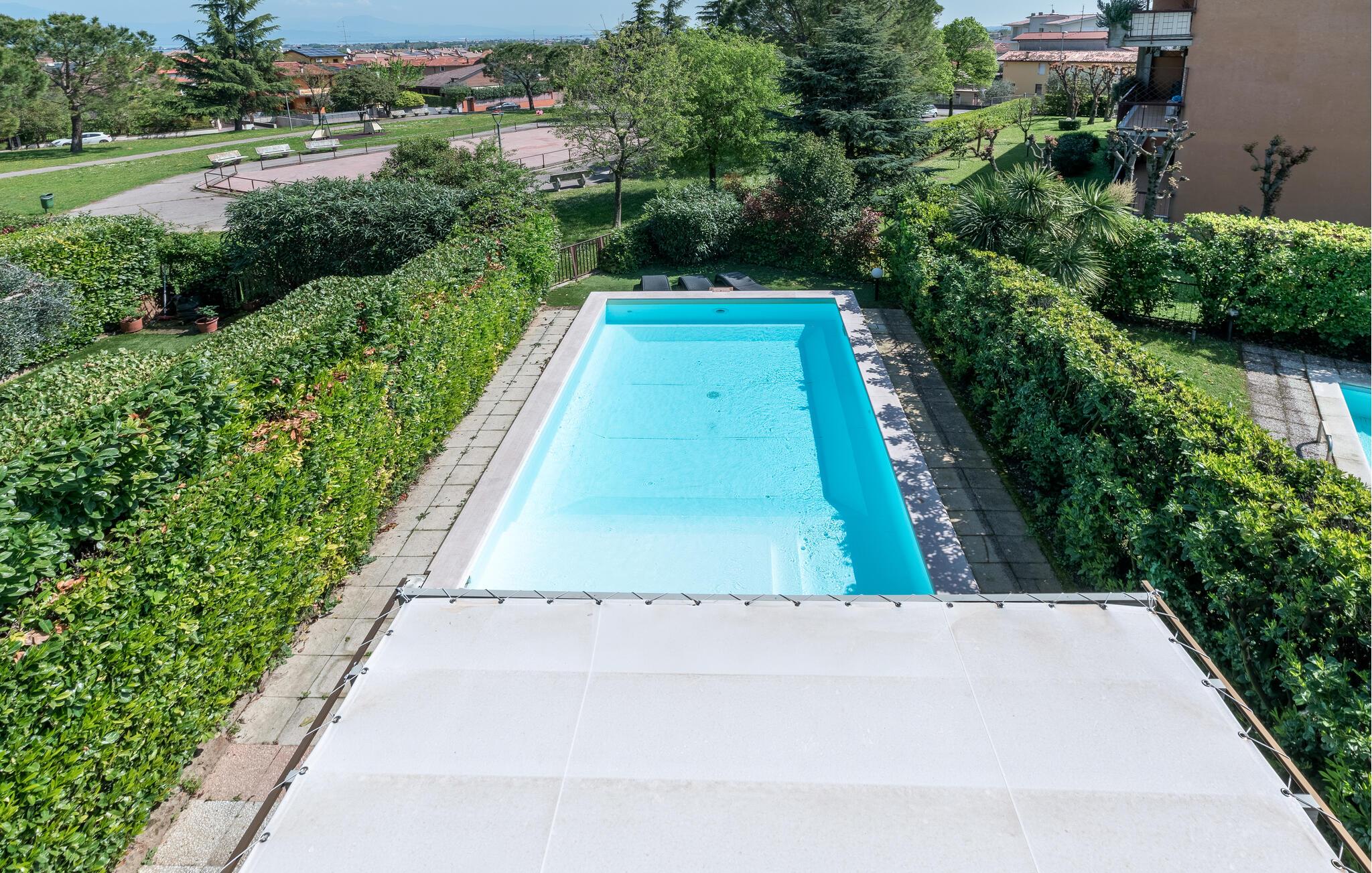 Velkommen til dette indbydende hus i et boligområde med god beliggenhed. Oplev den særlige charme ved denne villa, som ligger kun en kort gåtur fra bredden af ??Gardasøen. Med en rummelig stue, et hyggeligt tv-område og direkte adgang til verandaen og privat pool byder huset på masser af plads til afslapning. Det lyse, elegante design fortsætter på øverste etage, hvor soveværelserne med terrasser og vidunderlig søudsigt venter på jer. I kælderen indbyder et stort afslapningsområde med spabad til at slappe af eller nyde en hyggelig filmaften. Nyd den luksuriøse atmosfære og den fantastiske beliggenhed.