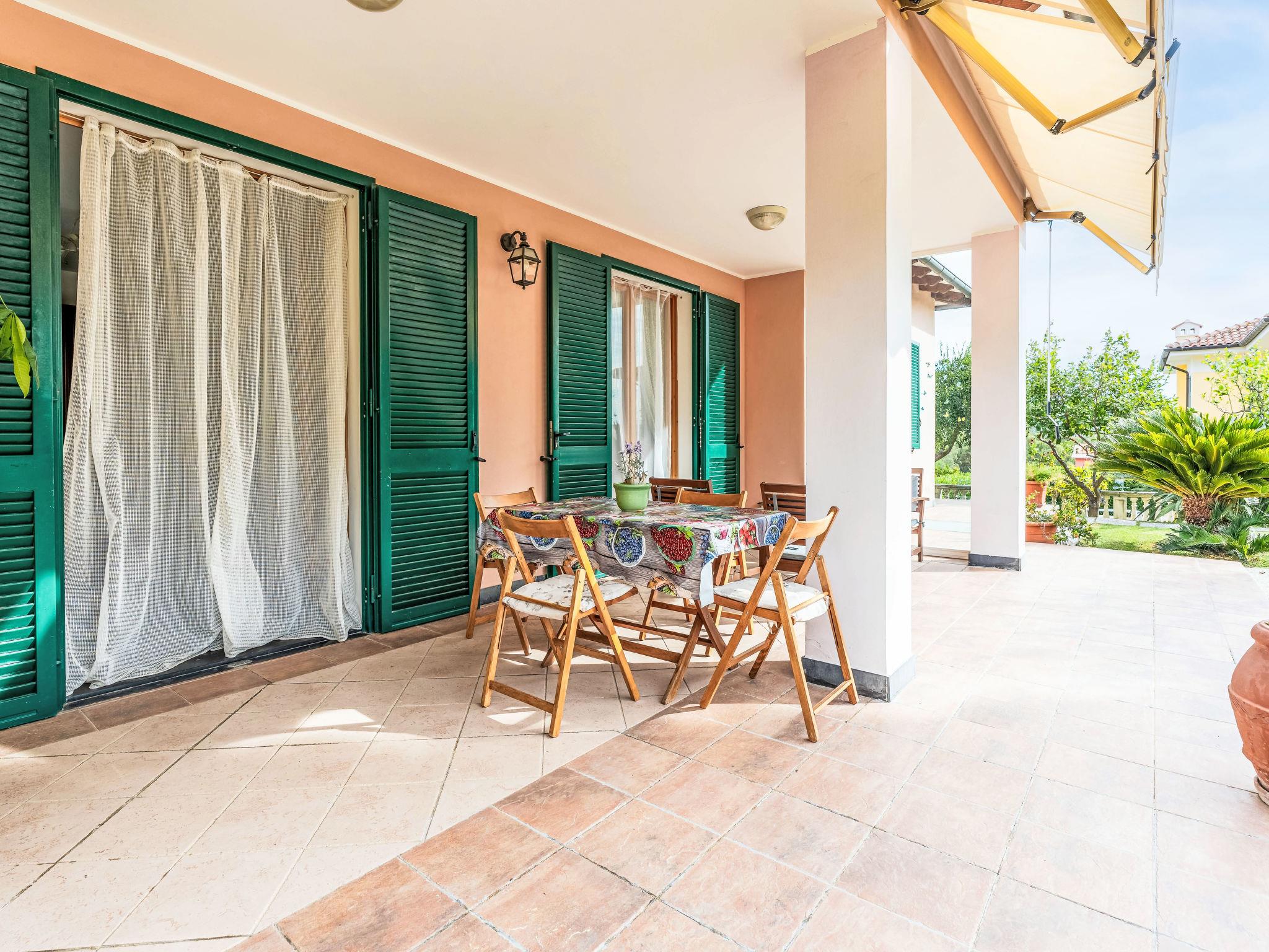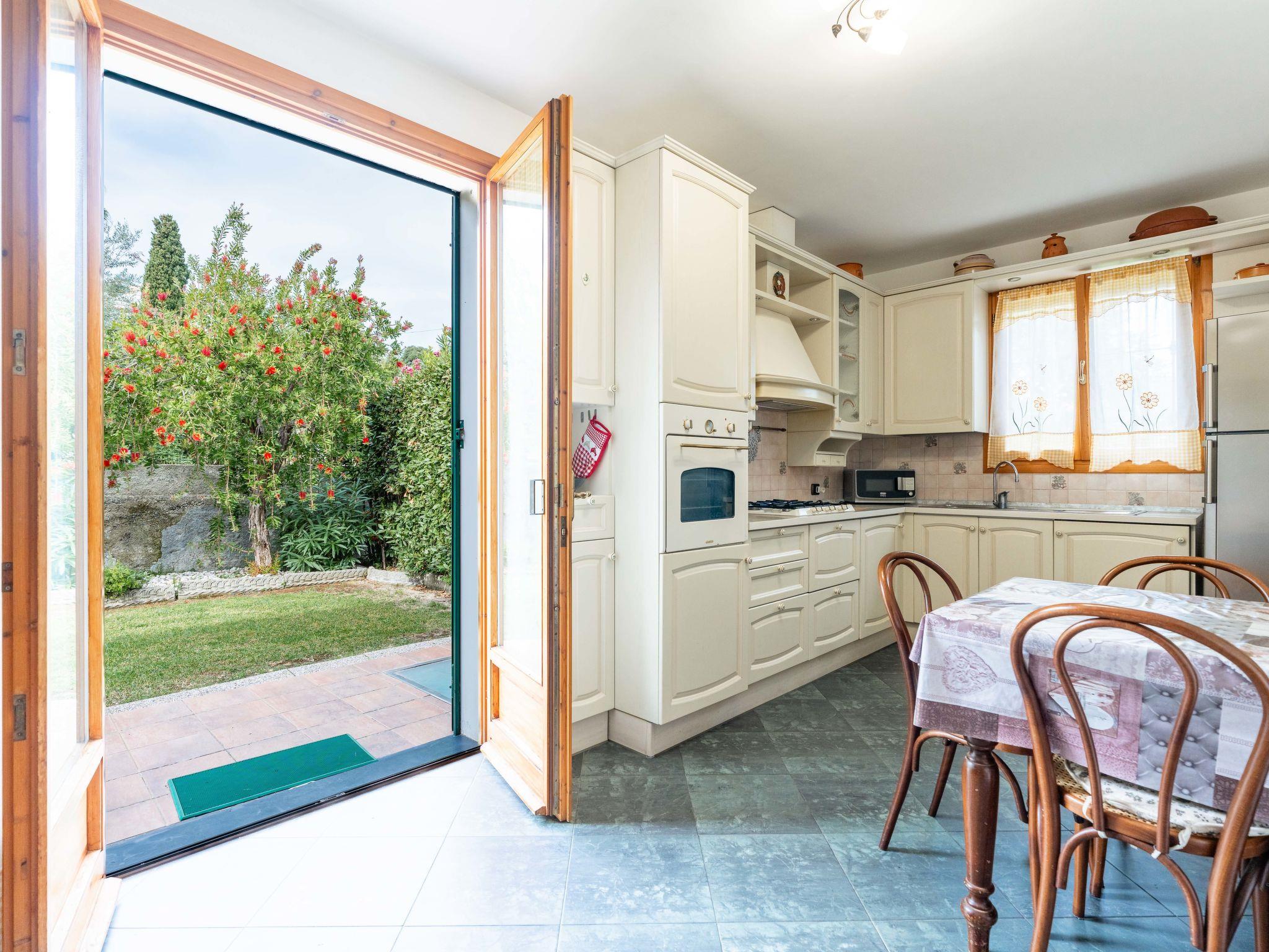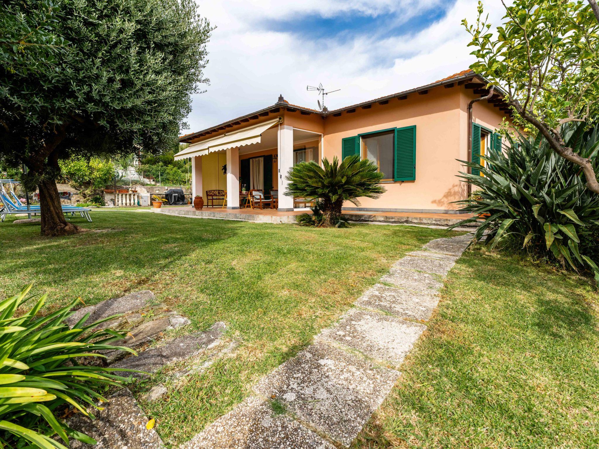 "La Casetta", 3-room house 140 m2. Cosy furnishings: living/dining room with dining table and satellite TV. Exit to the garden. 1 room with 2 beds (80 cm). 1 room with 1 french bed (160 cm). Kitchen (oven, dishwasher, 6 gas rings, toaster, kettle, microwave, freezer, electric coffee machine). Sep. WC, bath/shower/WC. Gas heating. On the lower ground floor: shower/WC. Parquet floors. Terrace partly roofed. Terrace furniture, barbecue (portable), deck chairs (4). Facilities: washing machine, iron, children's high chair, baby cot. Internet (WiFi, free). Garage. Please note: non-smokers only. IT008026C2RSBWPTFT