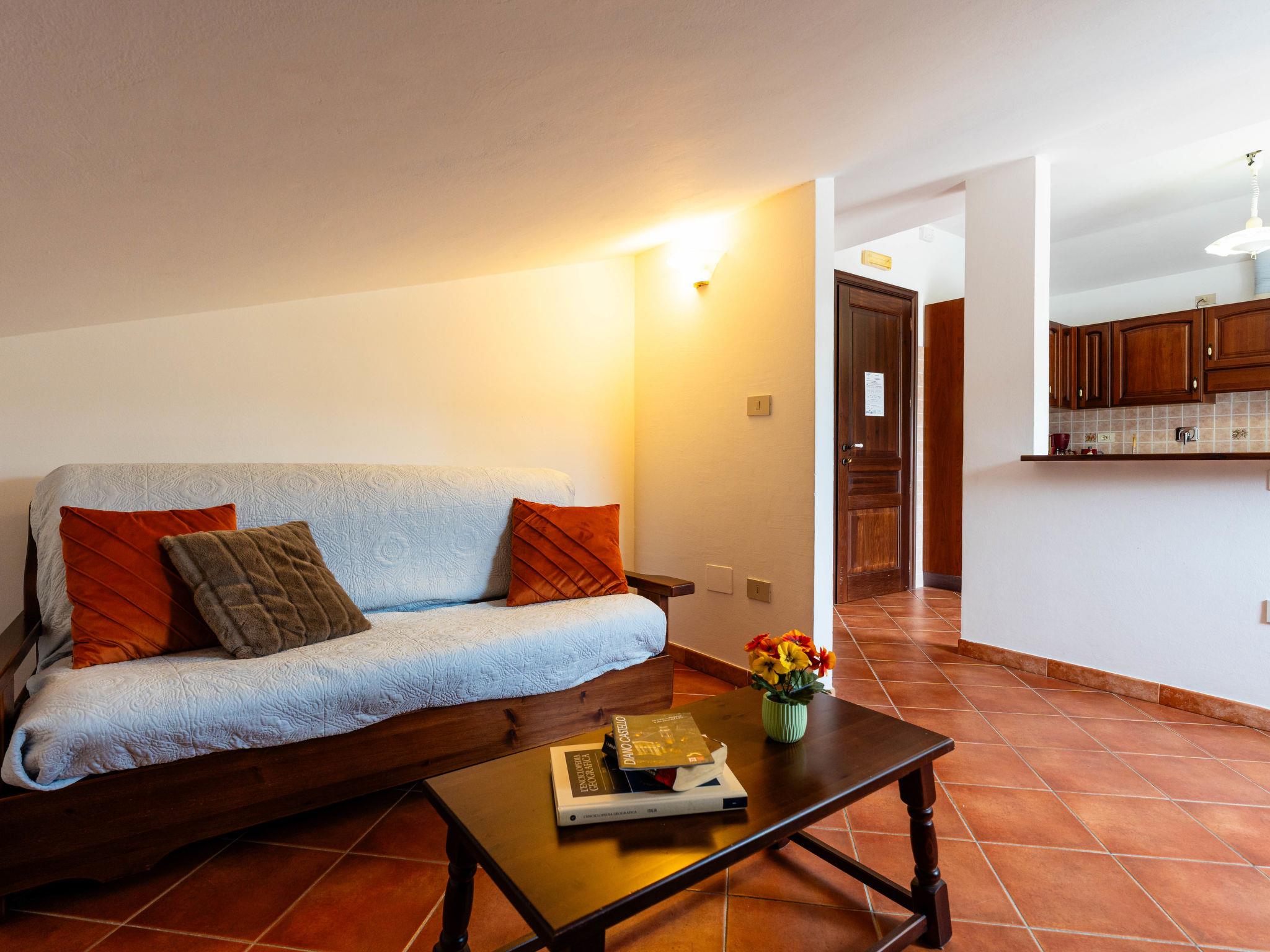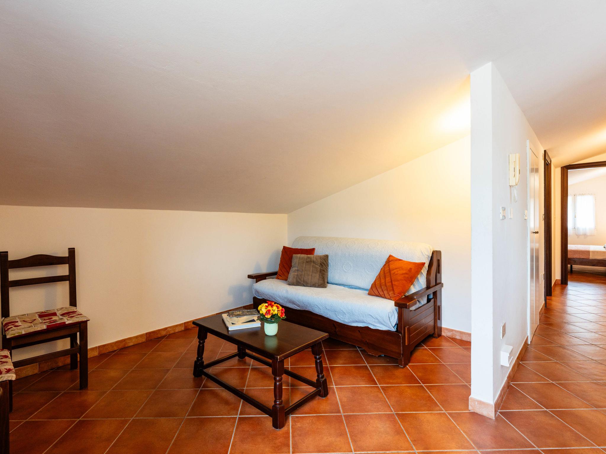 "Il Terrazzo E", 2-room apartment 50 m2 on 2nd floor. Rustic furnishings: living/sleeping room with sloping ceilings with 1 double sofabed and satellite TV. 1 room with 1 french bed (160 cm). Open kitchen (oven, 4 gas rings, toaster, kettle, freezer, electric coffee machine) with dining table. Exit to the terrace. Bath/WC. Gas heating. Terrace 20 m2. Terrace furniture. Facilities: washing machine, children's high chair, baby cot. Internet (WiFi, free). Maximum 1 pet/ dog allowed. IT008026B53FWFJN55