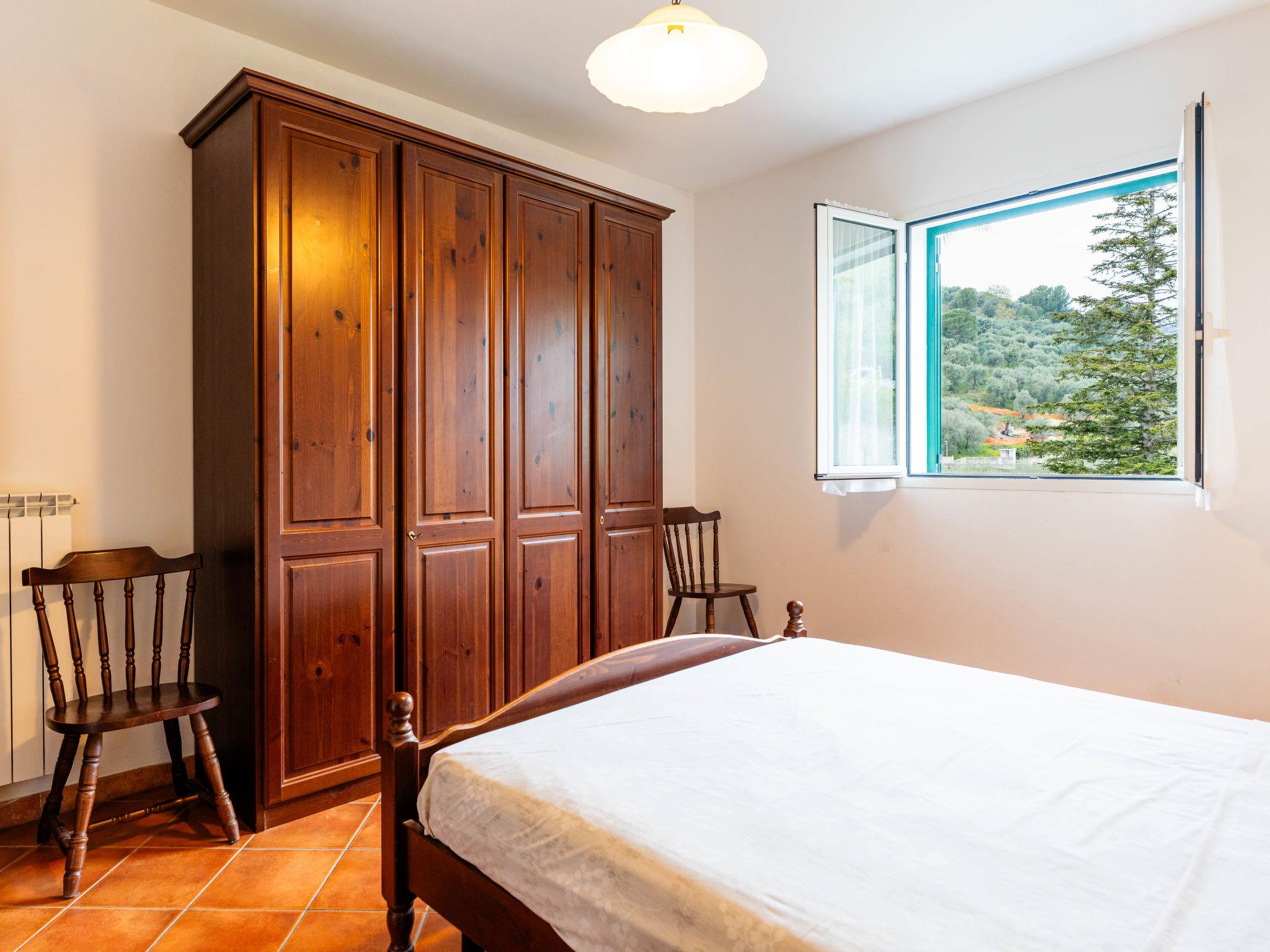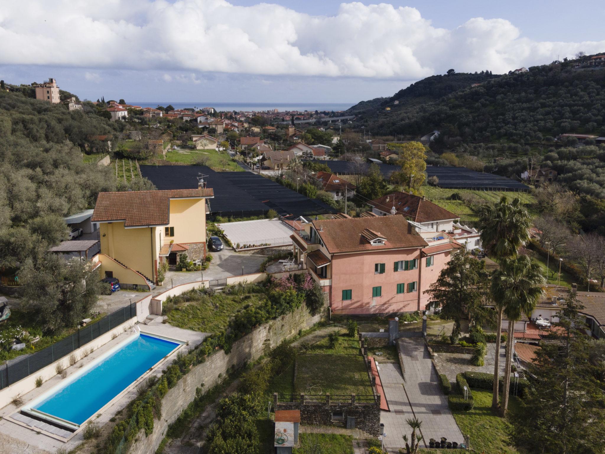 Agriturismo "La Colombera", surrounded by trees and fields. 7 apartments in the residence. In the hamlet Varcavello 1 km from the centre of Diano Castello, 2 km from the centre of Diano Marina, 7 km from the centre of Imperia, in a sunny, elevated position on a slope, 2.5 km from the sea, located by a road. For shared use: natural state property 1'000 m2 with plants, courtyard, swimming pool fenced (12 x 5 m, depth 110 cm, seasonal availability: 01.Apr. - 31.Oct.). Outdoor shower, terrace, garden furniture, barbecue, pool maintenance by the owner/gardener. In the house: bicycle rental. Available: bicycles (12) (extra). Roofed, parking (limited number of spaces) on the premises. Shop 900 m, supermarket 3 km, bus stop 7.2 km, sandy beach 2.5 km, indoor swimming pool 10 km. Marina 2.5 km. Groups of teenagers on request only. Local sale of farm products. Please note: the owner lives on the same property. The owner has a dog. Animals in the neighbourhood. Additional accommodations can be booked.