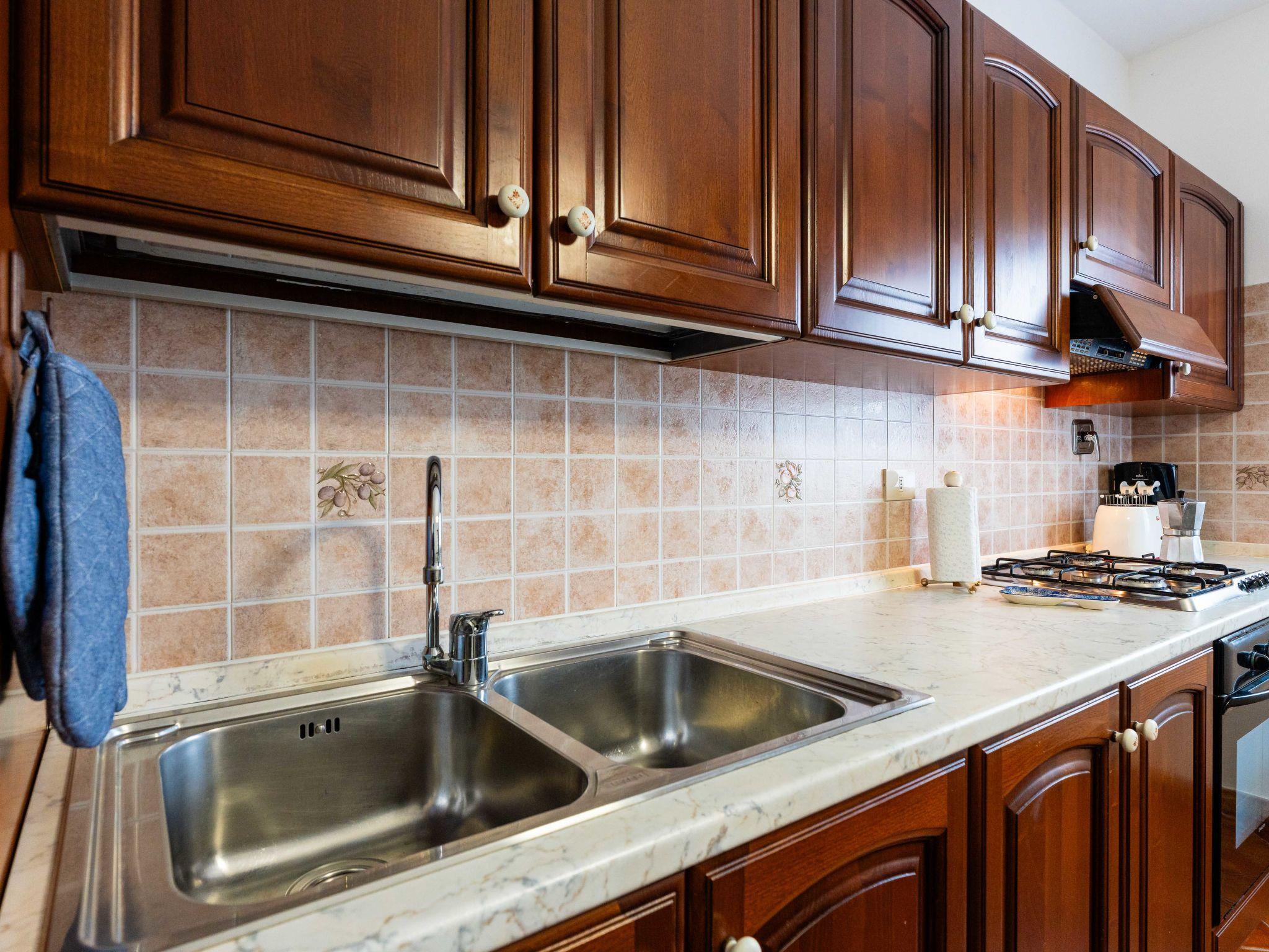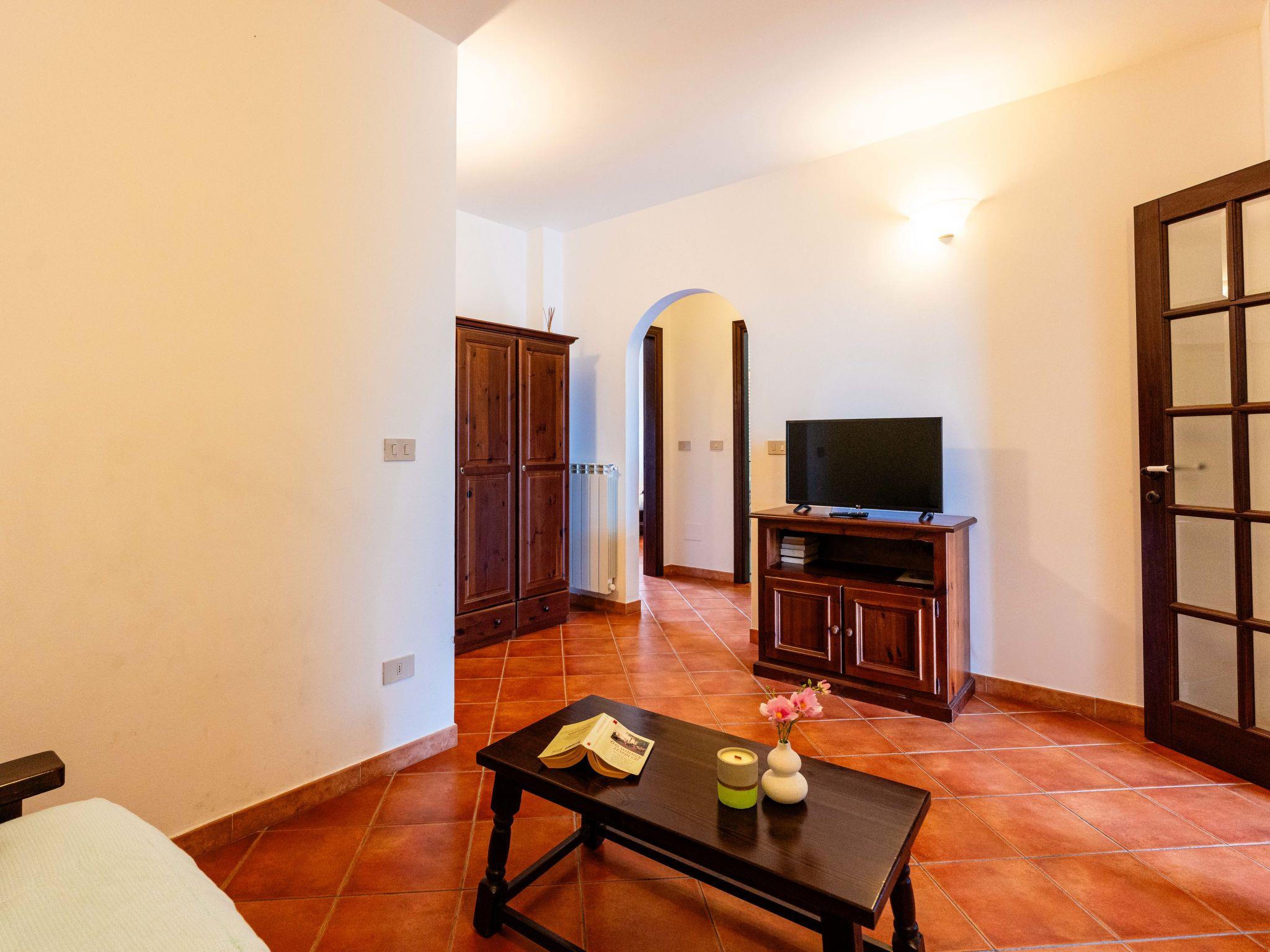 "Il Raggio", 2-room apartment 60 m2, on the ground floor. Rustic furnishings: living/sleeping room with 1 double sofabed, dining table and satellite TV. 1 room with 1 french bed (160 cm). Kitchen-/living room (oven, 4 gas rings, toaster, kettle, freezer, electric coffee machine) with small dining table. Exit to the balcony. Shower/WC. Gas heating. Patio. Facilities: washing machine, children's high chair, baby cot. Internet (WiFi, free). Please note: maximum 1 pet/ dog allowed. Private entrance. IT008026B53FWFJN55