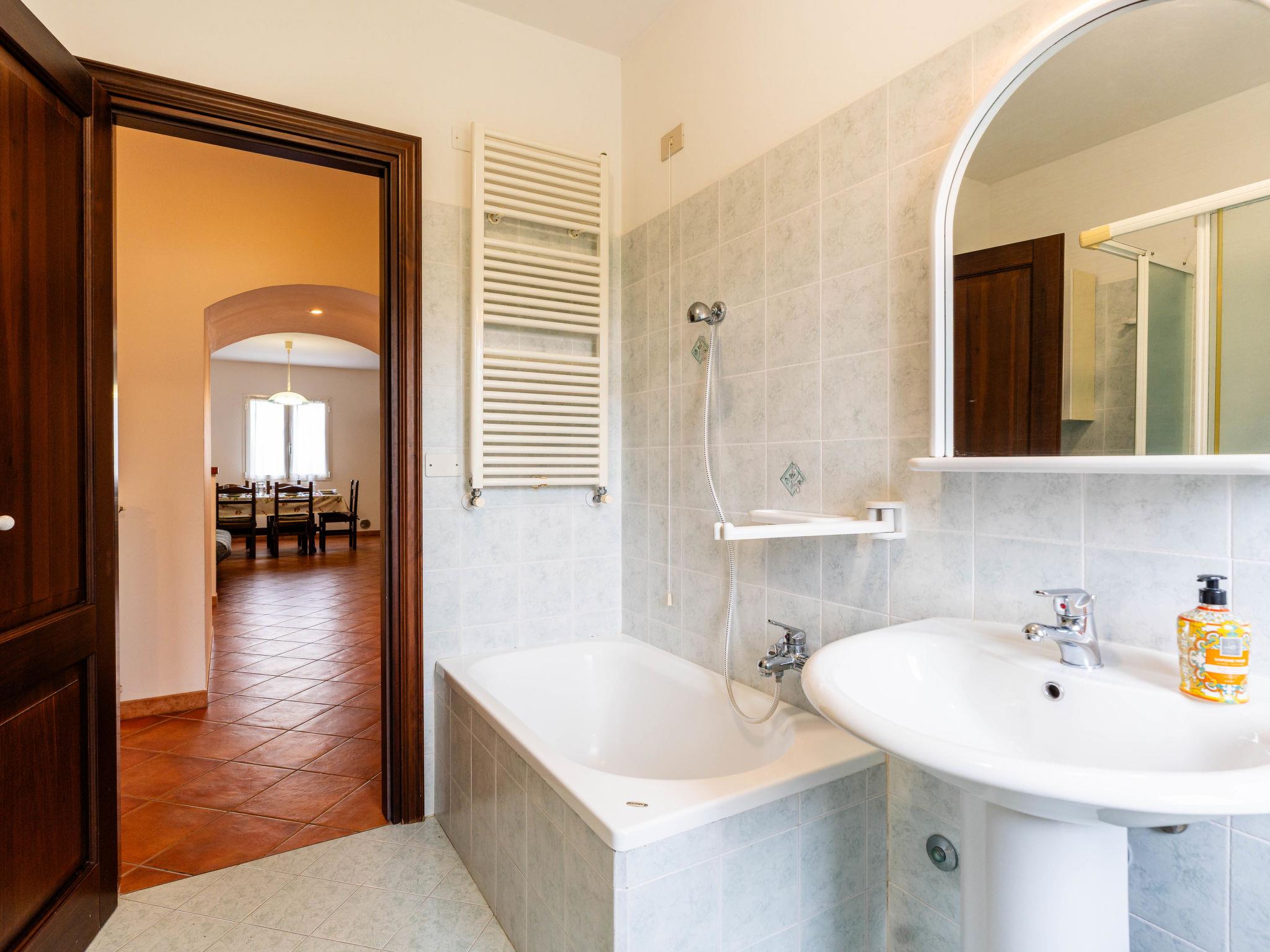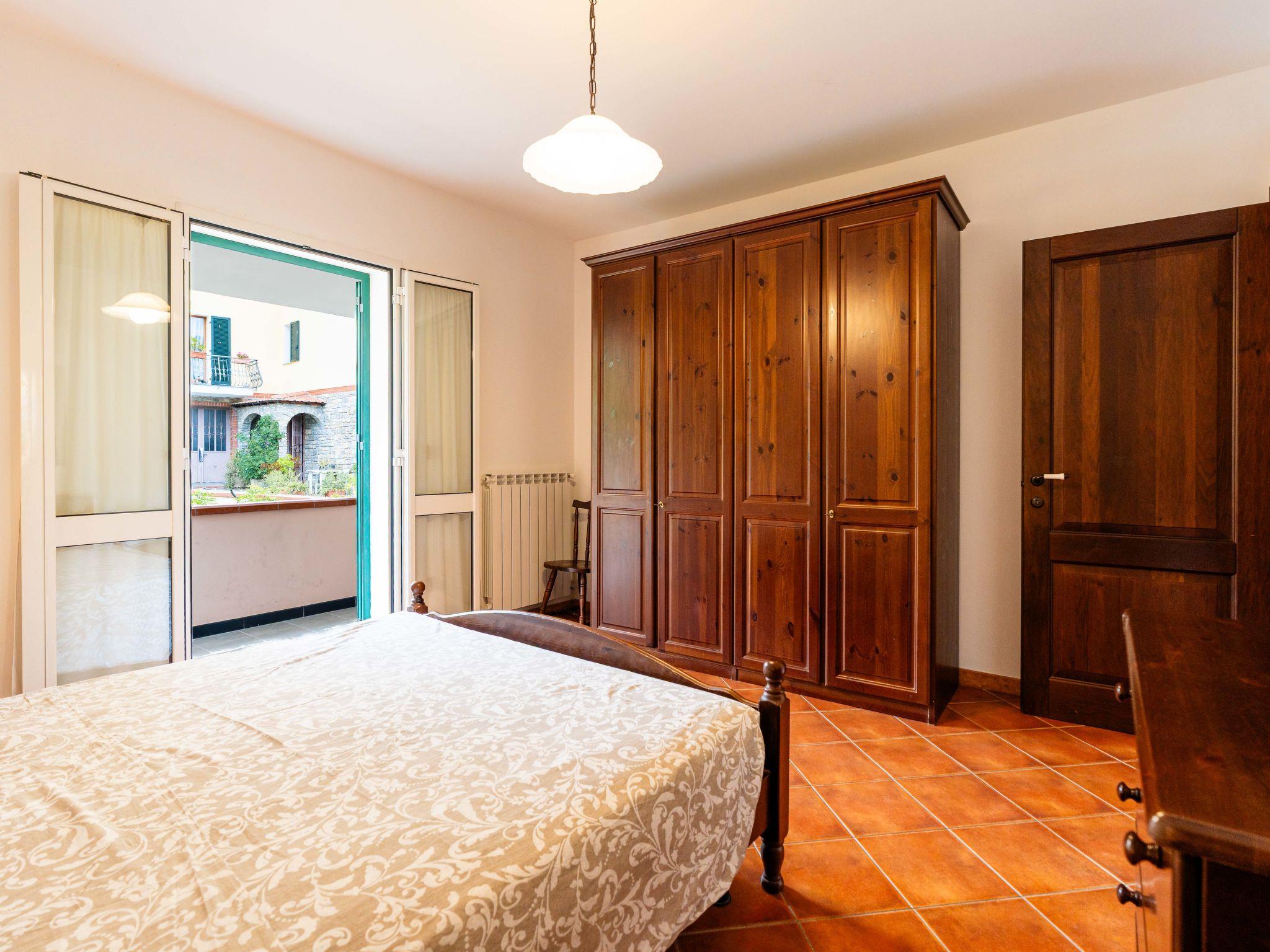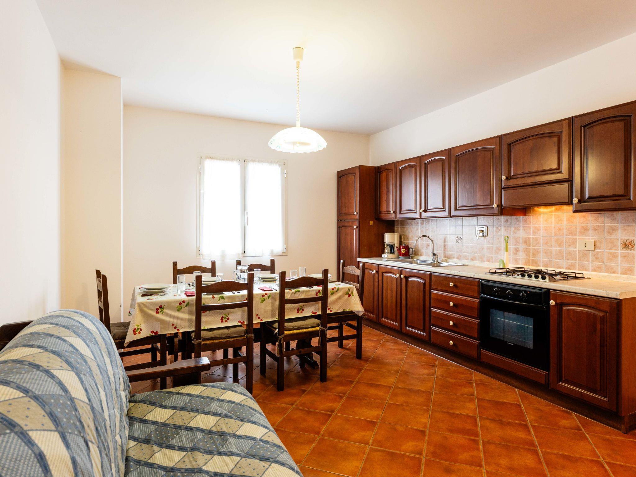 "Il vento D", 3-room apartment 70 m2 on 1st floor. Rustic furnishings: living/sleeping room with 1 double sofabed, dining table and satellite TV. 1 room with 1 french bed (160 cm). Exit to the balcony. 1 room with 2 beds (80 cm). Open kitchen (oven, 4 gas rings, toaster, kettle, freezer, electric coffee machine). Shower/WC. Gas heating. Balcony, terrace. Terrace furniture, balcony furniture. Facilities: washing machine, children's high chair, baby cot. Internet (WiFi, free). Please note: maximum 1 pet/ dog allowed. Private entrance. IT008026B53FWFJN55