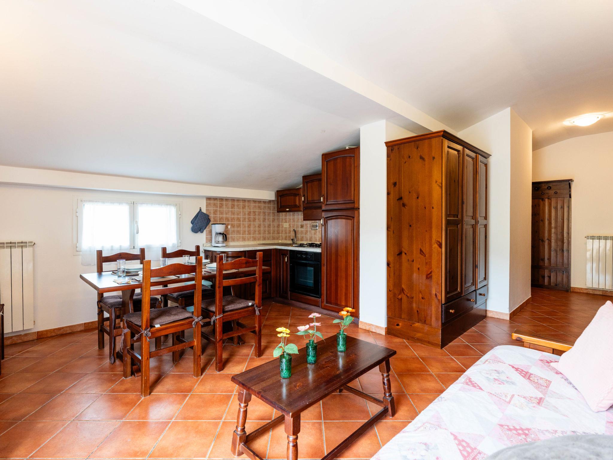 "Sulle Colline F", 2-room apartment 50 m2 on 2nd floor. Rustic furnishings: living/sleeping room with sloping ceilings with 1 double sofabed, dining table and satellite TV. Exit to the balcony. 1 room with 1 bed (80 cm), 1 french bed (160 cm). Open kitchen (oven, 4 gas rings, toaster, kettle, freezer, electric coffee machine). Shower/WC. Gas heating. Heating available only from 01.11. to 15.04. Balcony. Balcony furniture. Facilities: washing machine, baby cot. Internet (WiFi, free). Maximum 1 pet/ dog allowed. IT008026B53FWFJN55