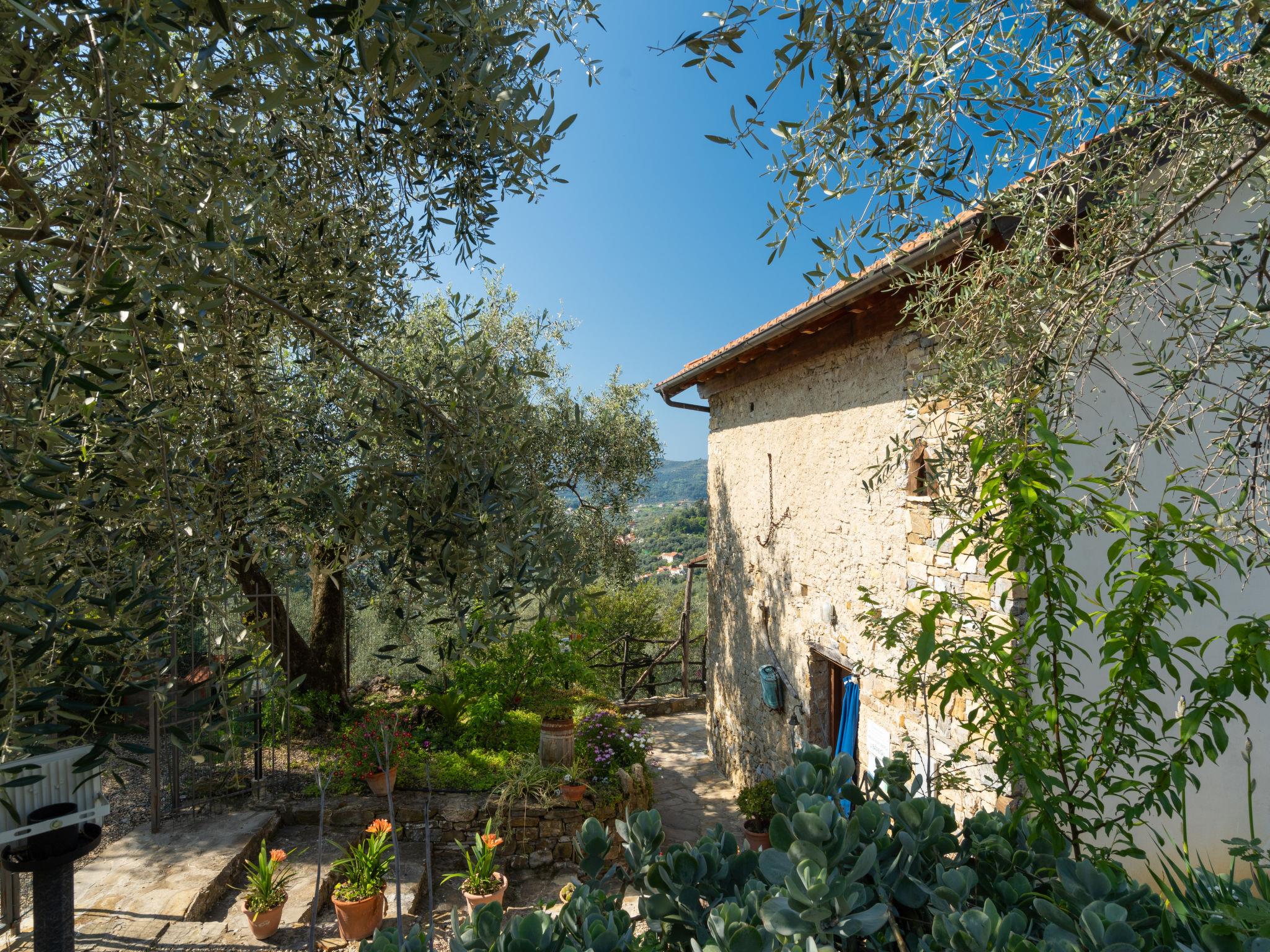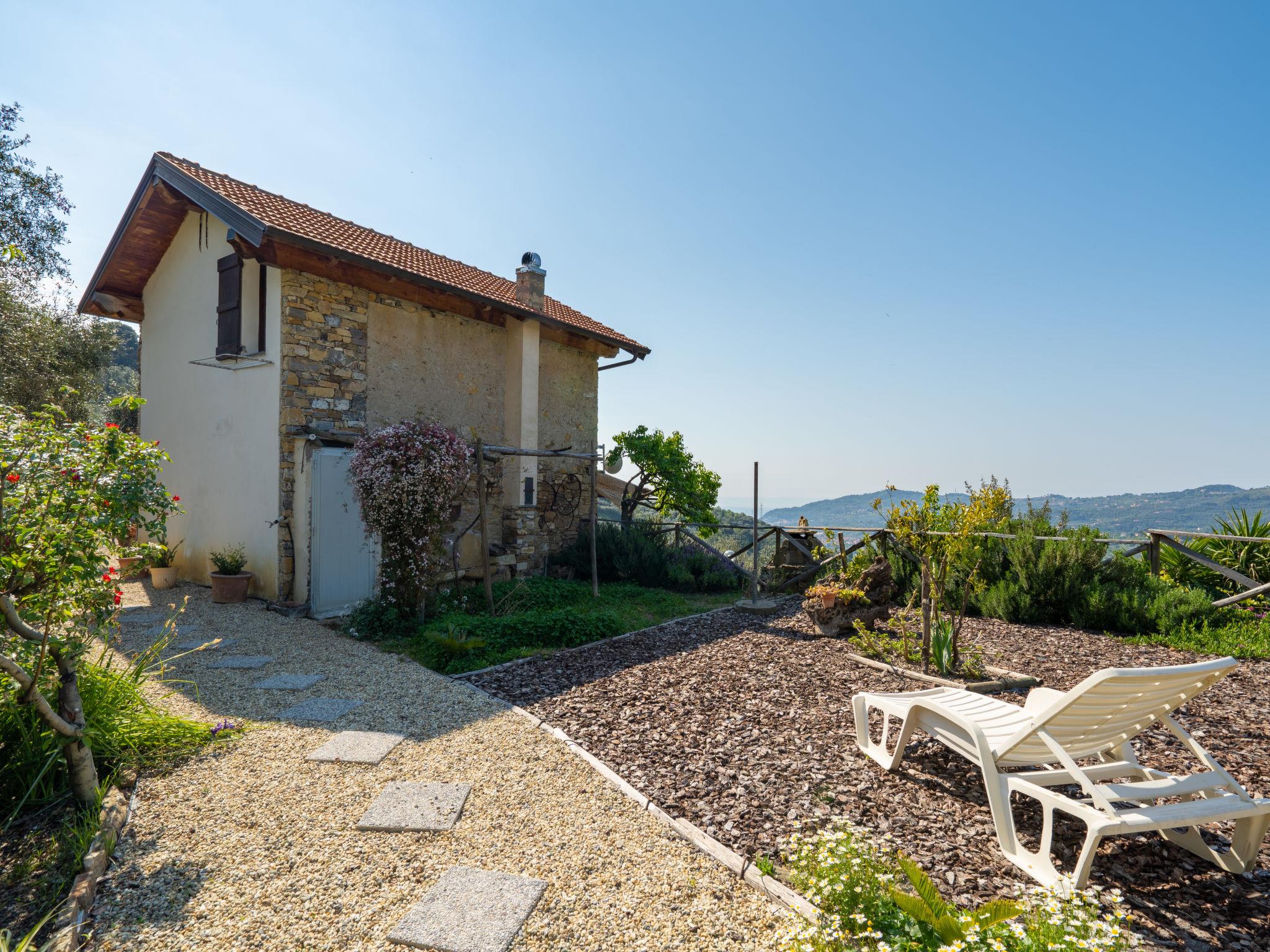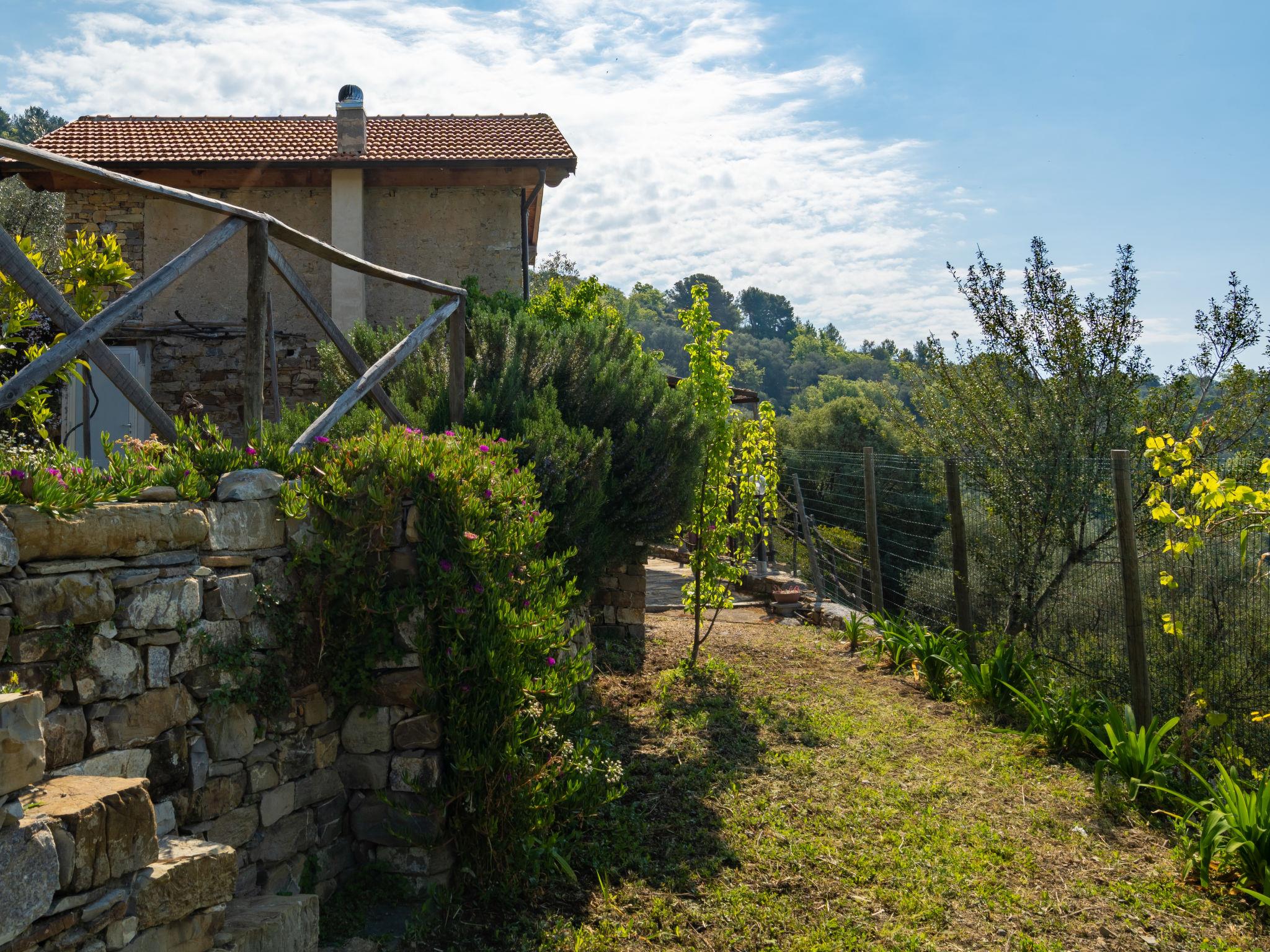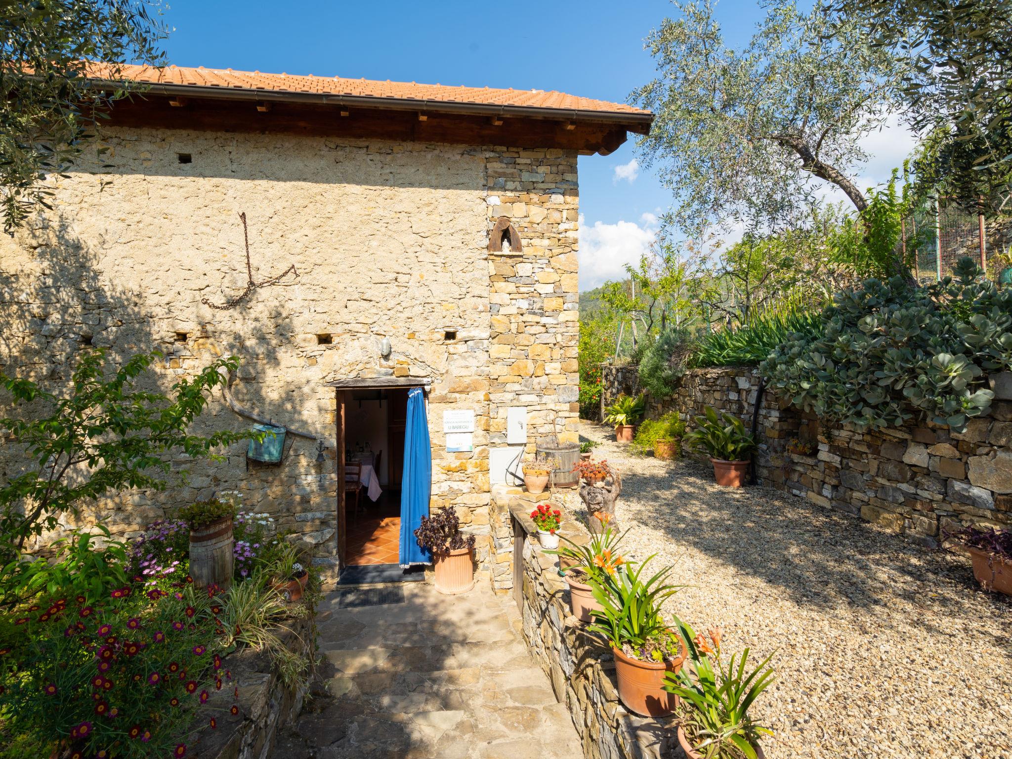 Small, cosy, rustic single-family house "Casa U Baregu". 5 km from the centre of Diano Marina, 11 km from the centre of Imperia, 22 km from the centre of Alassio, in a secluded, elevated position, 5 km from the sea, in the countryside. Private: property 20 ha, terraced garden with wildlife garden, orchard, swimming pool (6 x 3 m, depth 140 cm, seasonal availability: 01.Apr. - 31.Oct.). Pergola, terrace, garden furniture, barbecue, pool maintenance by the owner/gardener. 300 m long bumpy motor access. Stepped path to the house. Parking (for 2 cars) on the premises. Shop 2 km, supermarket 6 km, bus stop 10.9 km, sandy beach "Diano Marina" 5 km. Local sale of farm products. Please note: the owner lives on the same property.