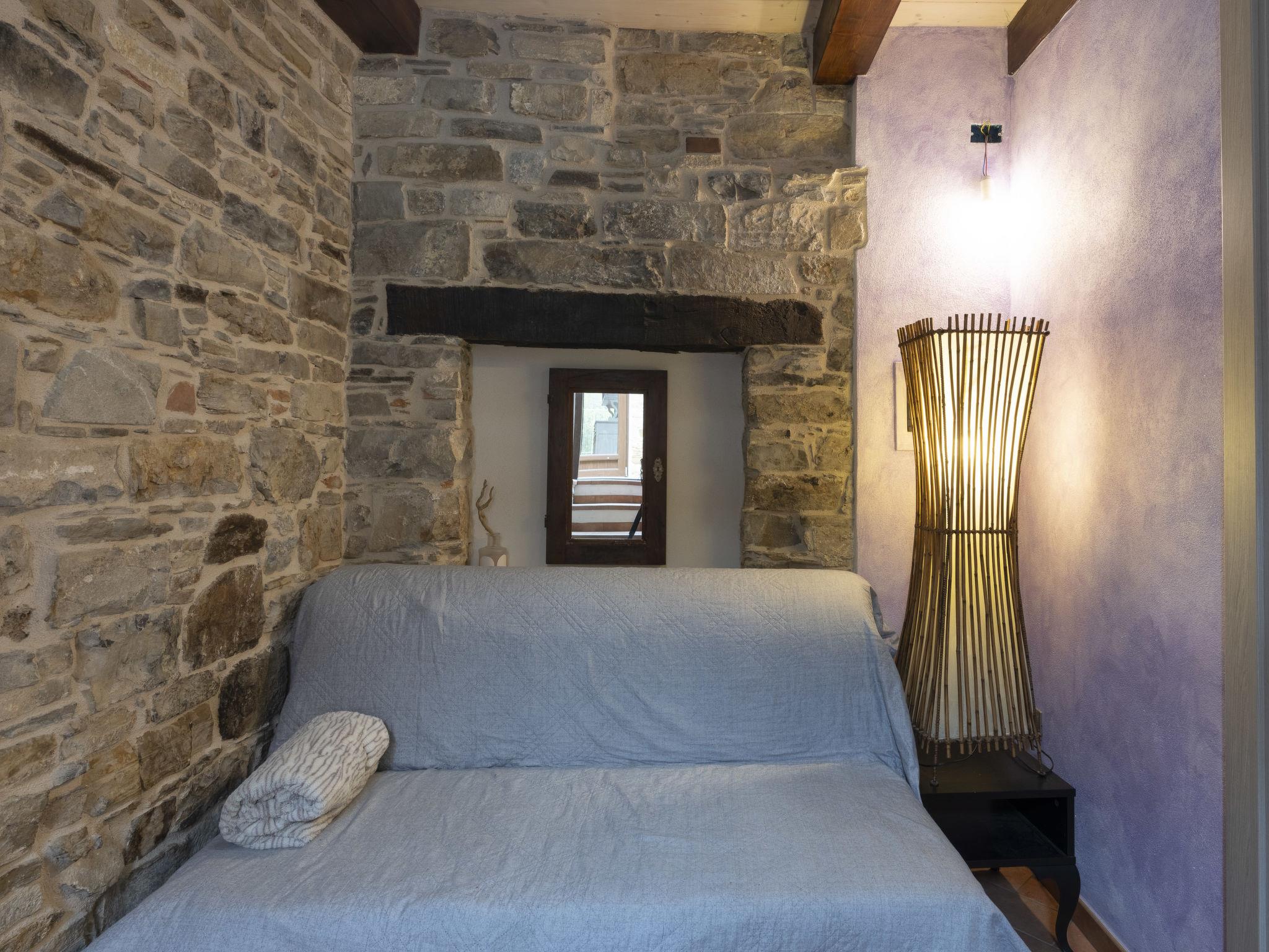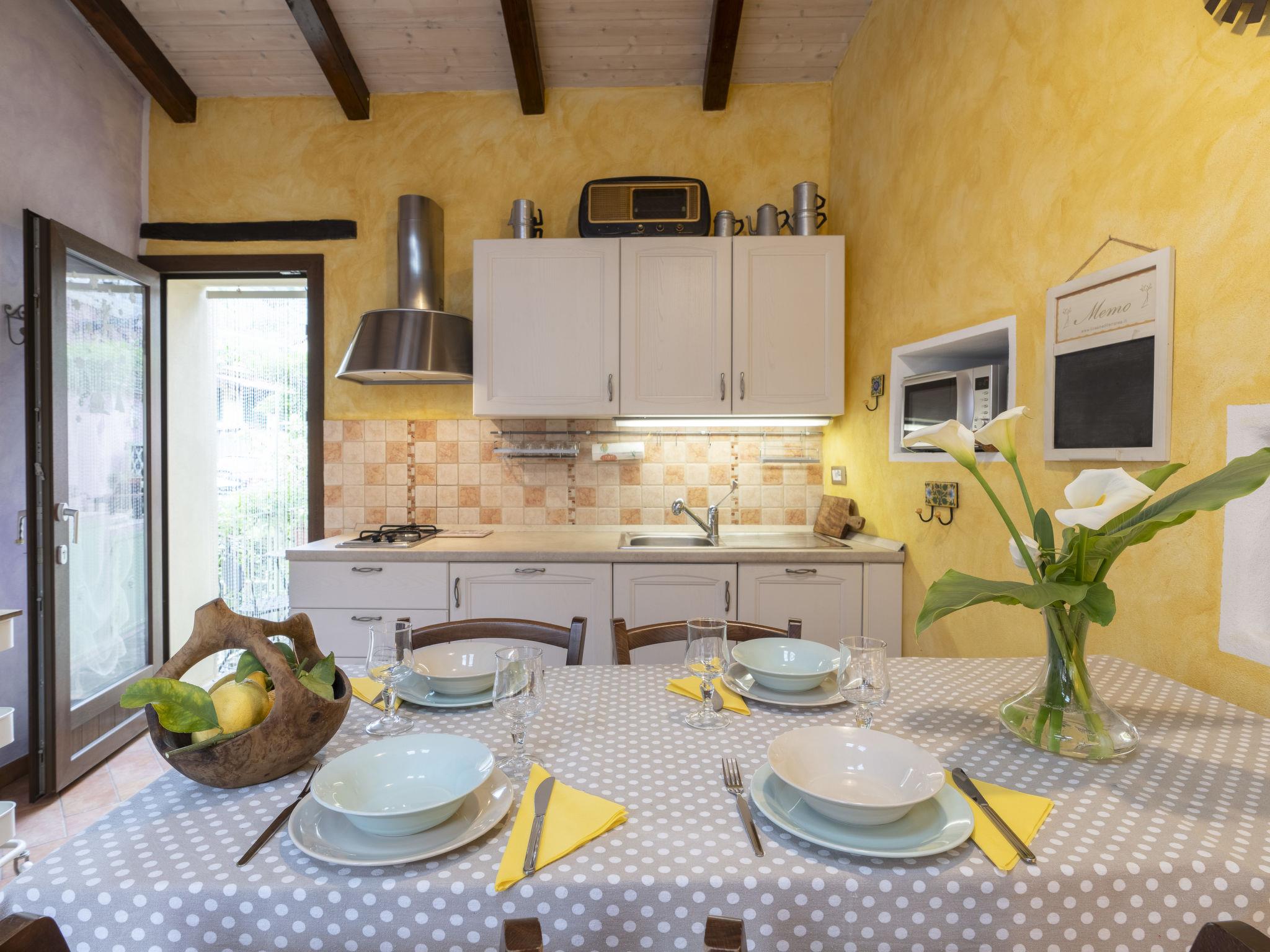 "La vecchia Stalla", 3-room semi-detached house 70 m2, on the ground floor. Comfortable and cosy furnishings: living/dining room with 1 sofabed (140 cm, length 200 cm), TV. Exit to the garden. Kitchen-/living room (dishwasher, 2 gas rings, toaster, kettle, microwave). Exit to the garden. On the lower ground floor: (spiral staircase), 1 double bedroom. Exit to the balcony. Shower/bidet/WC. No heating option. Natural stone floors. Balcony 6 m2. Terrace furniture. View of the sea and the resort. Facilities: washing machine, hair dryer. Internet (WiFi, free). Please note: maximum 1 pet/ dog allowed. Private entrance. IT008025C2FQMHOT7W