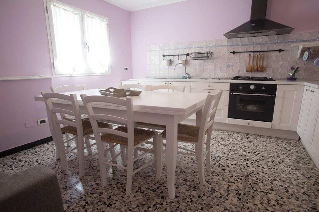 Stueetage: (åbent køkken(, , enkeltsovesofa, Fjernsyn, spisebord, kakkelovn, kaffemaskine, mikrobølgeovn, fryser, barnestol, insektnet), badeværelse(, , toilet, bruser, bruser, håndvask, bidet, vaskemaskine, føntørrer), pulterkammer()) På 1. etage: (soveværelse(, , king size-seng, insektnet), badeværelse(, , toilet, bruser, bruser, håndvask, bidet, insektnet)) , , soveværelse(, , enkeltseng, enkeltseng, enkeltsovesofa, insektnet), Internetadgang, Internetadgang, vaskemaskine, balkon, varme, have(, havemøbler, solstole), parkering, cykler til rådighed, trappegitter, strygebræt, tørreskab