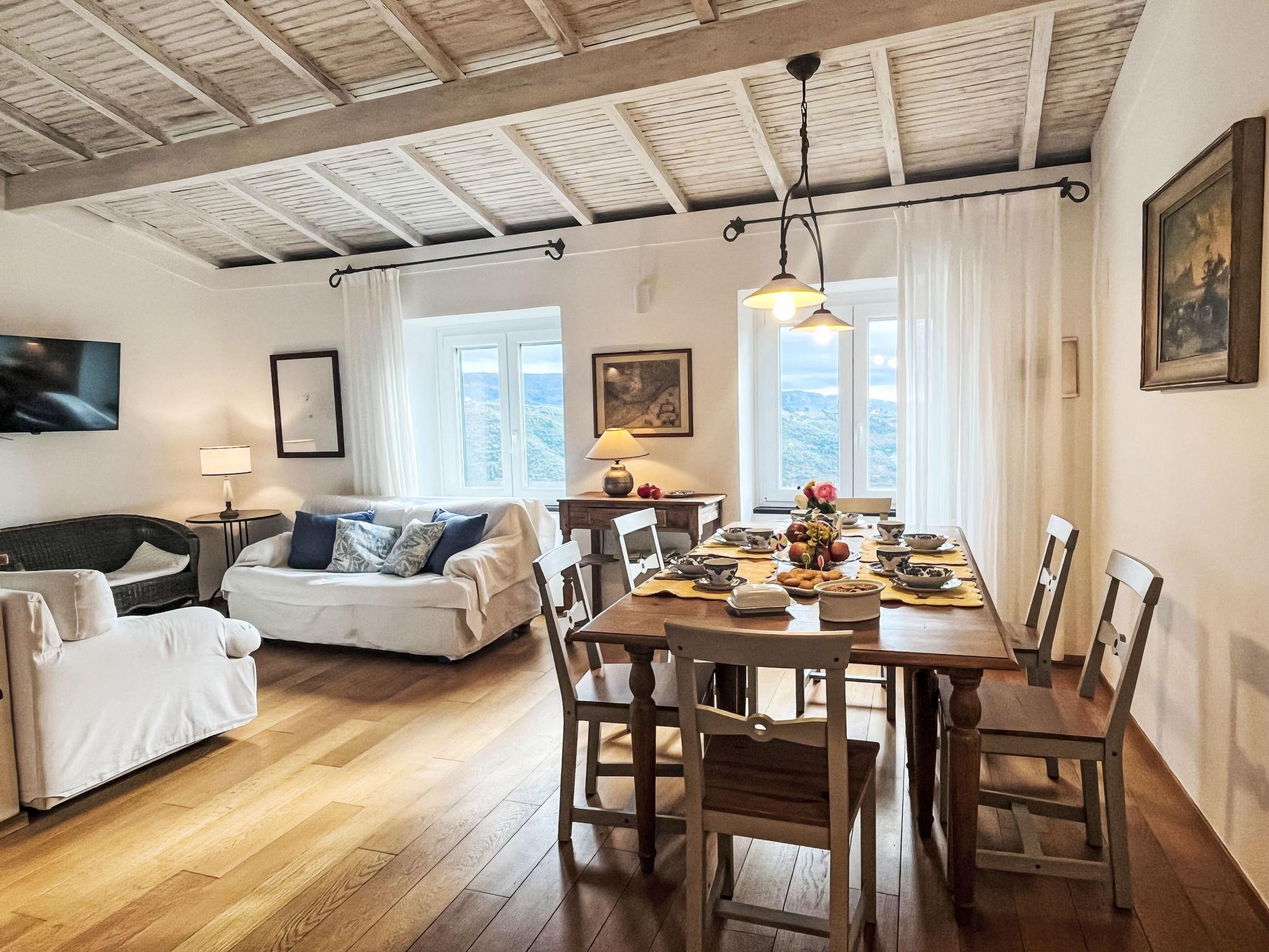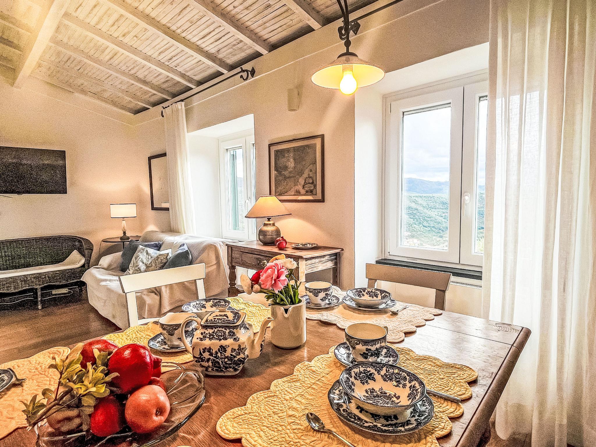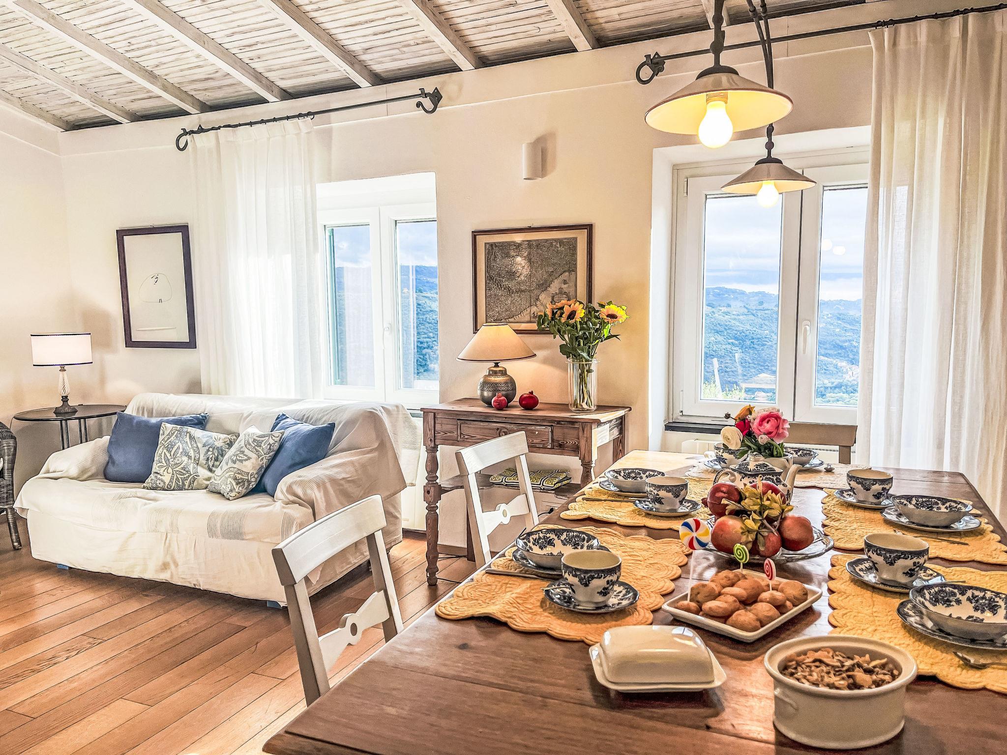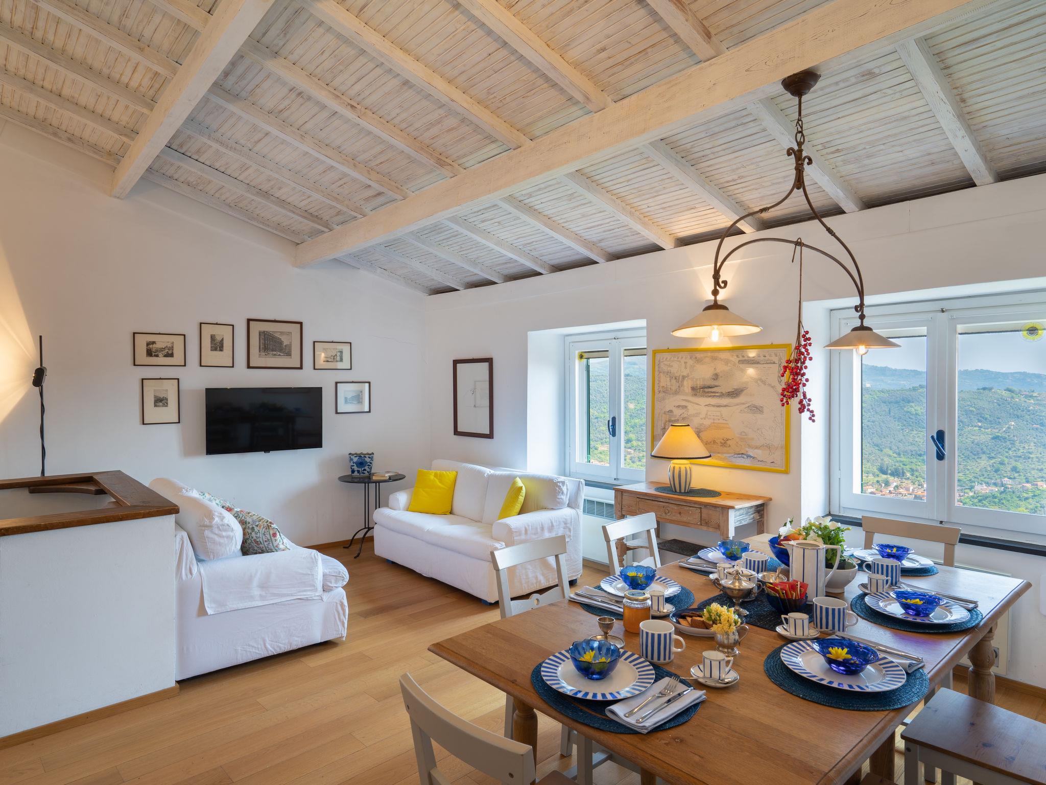 "Bellissimi (DOL280)", 5-room terraced house 110 m2 on 3 levels. Partly renovated in 2022, beautiful and stylish furnishings: 1 small room with 1 sofabed (80 cm), shower/WC and air conditioning. Upper floor: (spiral staircase), 2 small rooms, each room with 1 french bed and air conditioning. 1 small room with 1 x 2 bunk beds (80 cm). Shower/bidet/WC. 2nd upper floor: (spiral staircase) living room with dining table, satellite TV, hi-fi system and DVD. Open kitchen (oven, dishwasher, 4 gas rings, freezer, electric coffee machine). Exit to the garden. Electric heating, air-conditioning. Heating available only from 01.11. to 10.05. Parquet floors. Patio 12 m2, porch. Terrace furniture, deck chairs. Beautiful view of the valley and the countryside. Facilities: iron. Internet (WiFi, free). IT008030C2UZO9GOXA