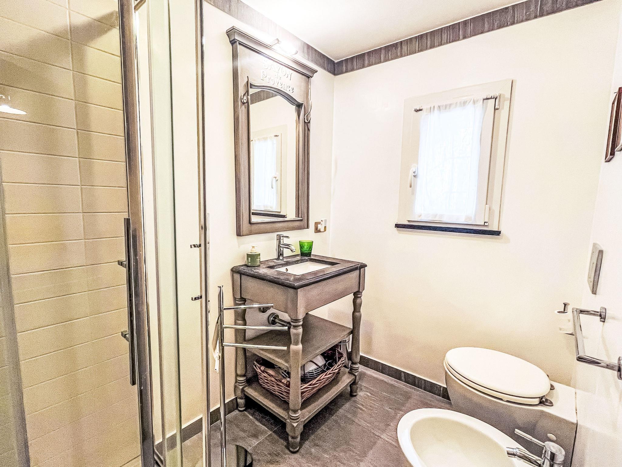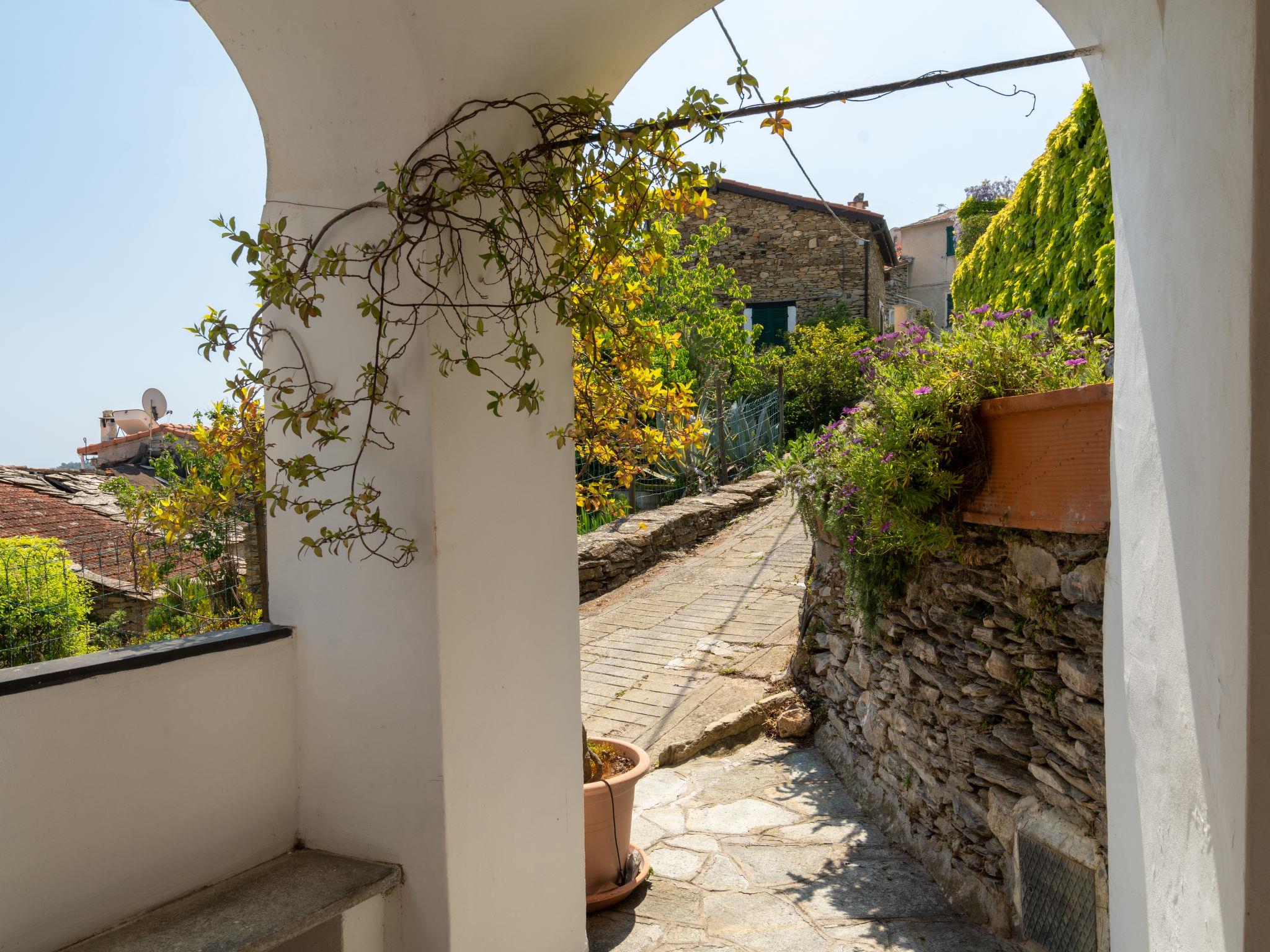 Beautiful cottage, 2 storeys, semi-detached. In the hamlet Bellissimi 4 km from the centre of Dolcedo, 13 km from the centre of Imperia, on a slope, in the residential district, 11 km from the sea. For shared use: swimming pool (8 x 4 m, depth 150 cm, seasonal availability: 01.May. - 15.Oct.). Outdoor shower, pool maintenance by the owner/gardener. Private: beautiful, well-kept garden 200 m2 (fenced) with lawn and trees, lawn for sunbathing. Patio, arbour, garden furniture. In the house: washing machine (for shared use). 200 m steep footpath to the house. Public parking 200 m. Shop 4 km, supermarket 13 km, restaurant 5 km, bus stop 200 m, railway station "Imperia Porto Maurizio" 13 km, pebble beach "Imperia Porto Maurizio" 13 km, outdoor swimming pool 10 km. Please note: the apartment is located in a zone with limited traffic. The complex has another 1 house for rent.
