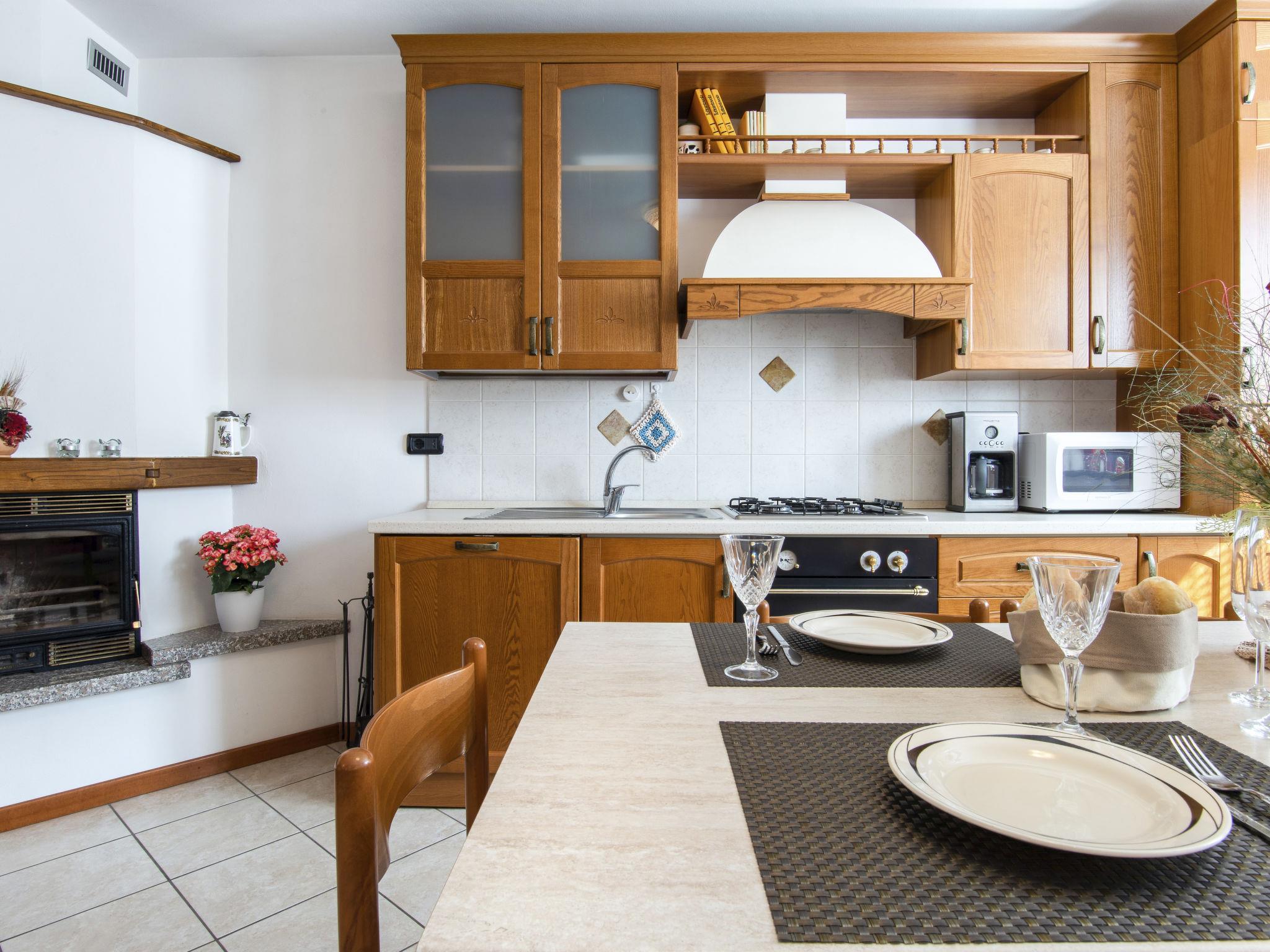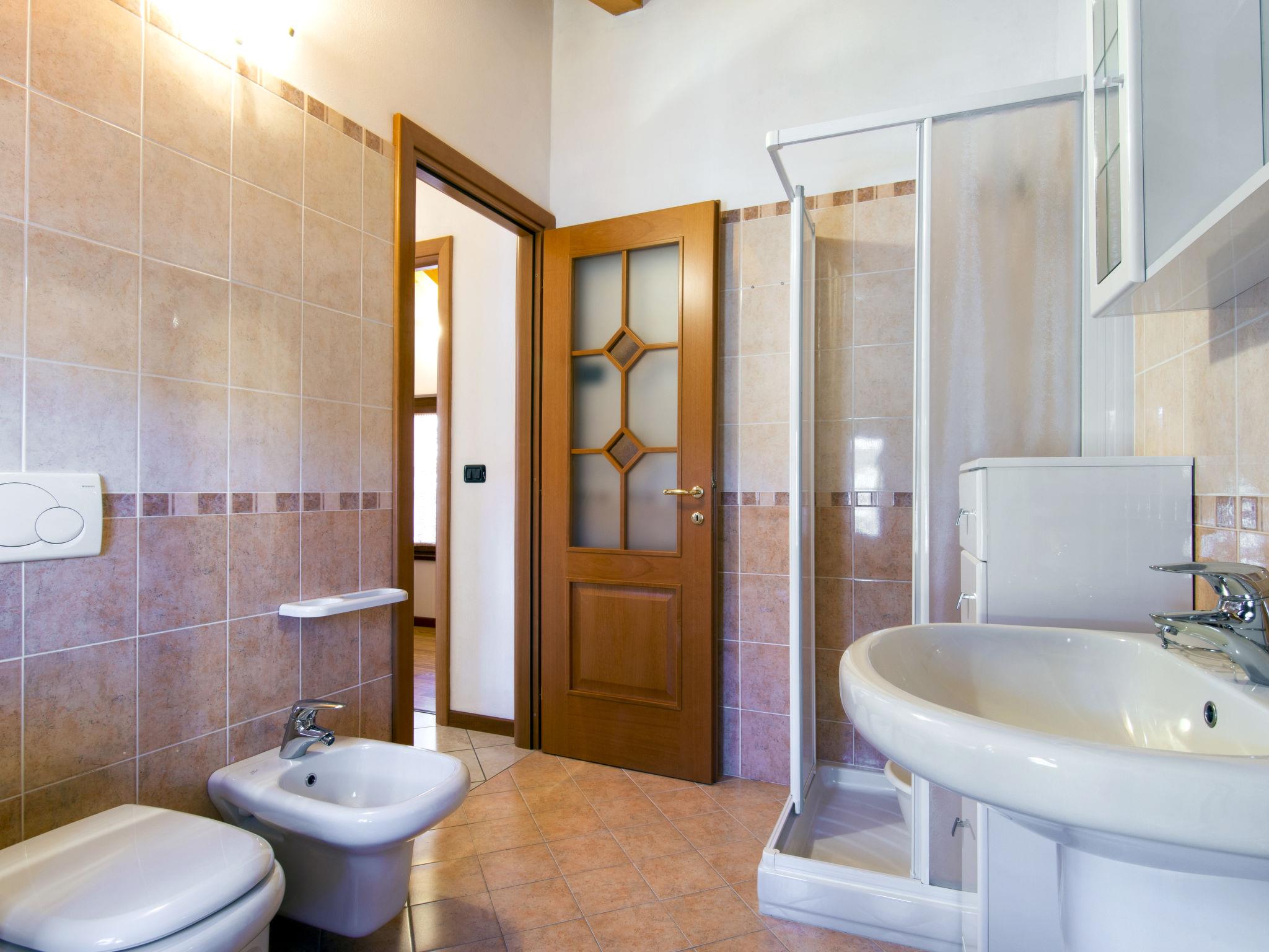 5-room terraced house 105 m2 on 3 levels, on the upper ground floor, south facing position. Cosy furnishings: living/dining room with open-hearth fireplace, dining table and satellite TV. 1 room with 1 bed and 1 double bed. Open kitchen (oven, dishwasher, 4 gas rings, toaster, kettle, freezer, electric coffee machine). Shower/bidet/WC, hip bath. Upper floor: (exterior staircase) living/dining room with open-hearth fireplace, dining table and satellite TV. 1 double bedroom. Open kitchen (oven, dishwasher, 4 gas rings, toaster, kettle, microwave, freezer, electric coffee machine). Shower/bidet/WC. 2nd upper floor: 1 open room with 1 bed, 1 double bed and shower/WC. Shower/bidet/WC. Gas heating. Heating available only from 15.10. to 15.04. Terrace. Terrace furniture, deck chairs (4), box-room. Beautiful view of the lake. Facilities: washing machine, iron, children's high chair, baby cot for up to 2 year olds. Internet (WiFi, free). Please note: non-smoking house. Maximum 3 pets/ dogs allowed. No lift. No internal connecting door between the separated properties. When booking this property you make a reservation for the whole house. Facilities for shared use are then for private use. IT013239C2OZHBVFIT