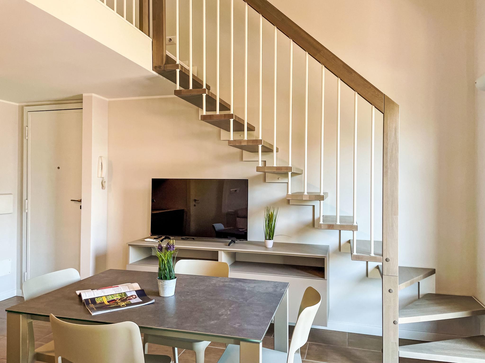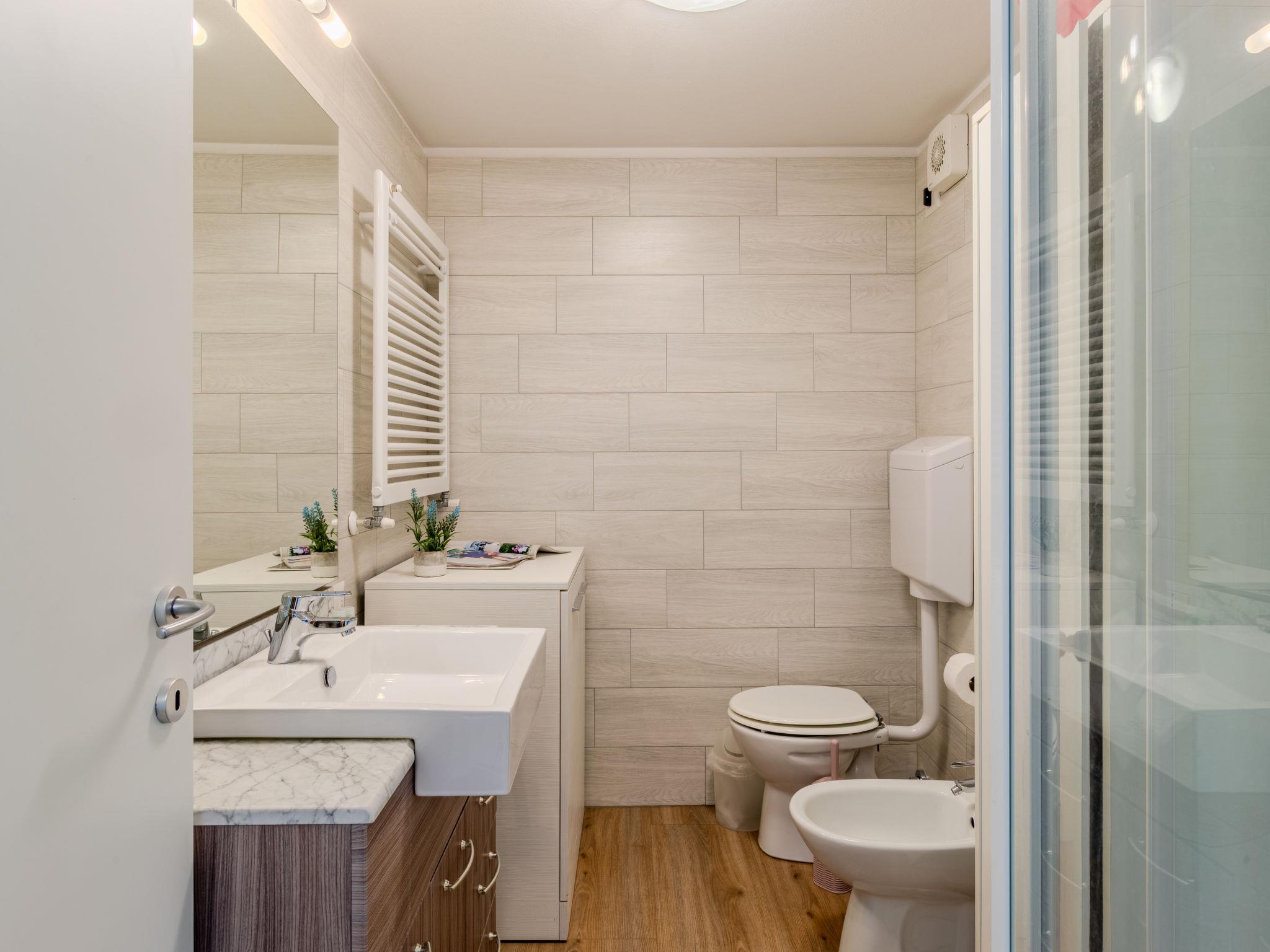 3-room apartment 45 m2 on 2 levels on 1st floor. Comfortable furnishings: open living/sleeping room with TV. Exit to the balcony. 1 double bedroom. Small, open kitchen (dishwasher, 4 induction hot plates, toaster, electric coffee machine). Shower/bidet/WC. Gas heating, air-conditioning. Heating available only from 15.10. to 15.04. Upper floor: open gallery with Dressing room with 2 beds. Balcony. Balcony furniture. Facilities: hair dryer. Internet (WiFi, free). Garage (1 car), height 200 cm, width 215 cm. Please note: non-smokers only. Private entrance, fire extinguisher. IT013089C258KQABC4