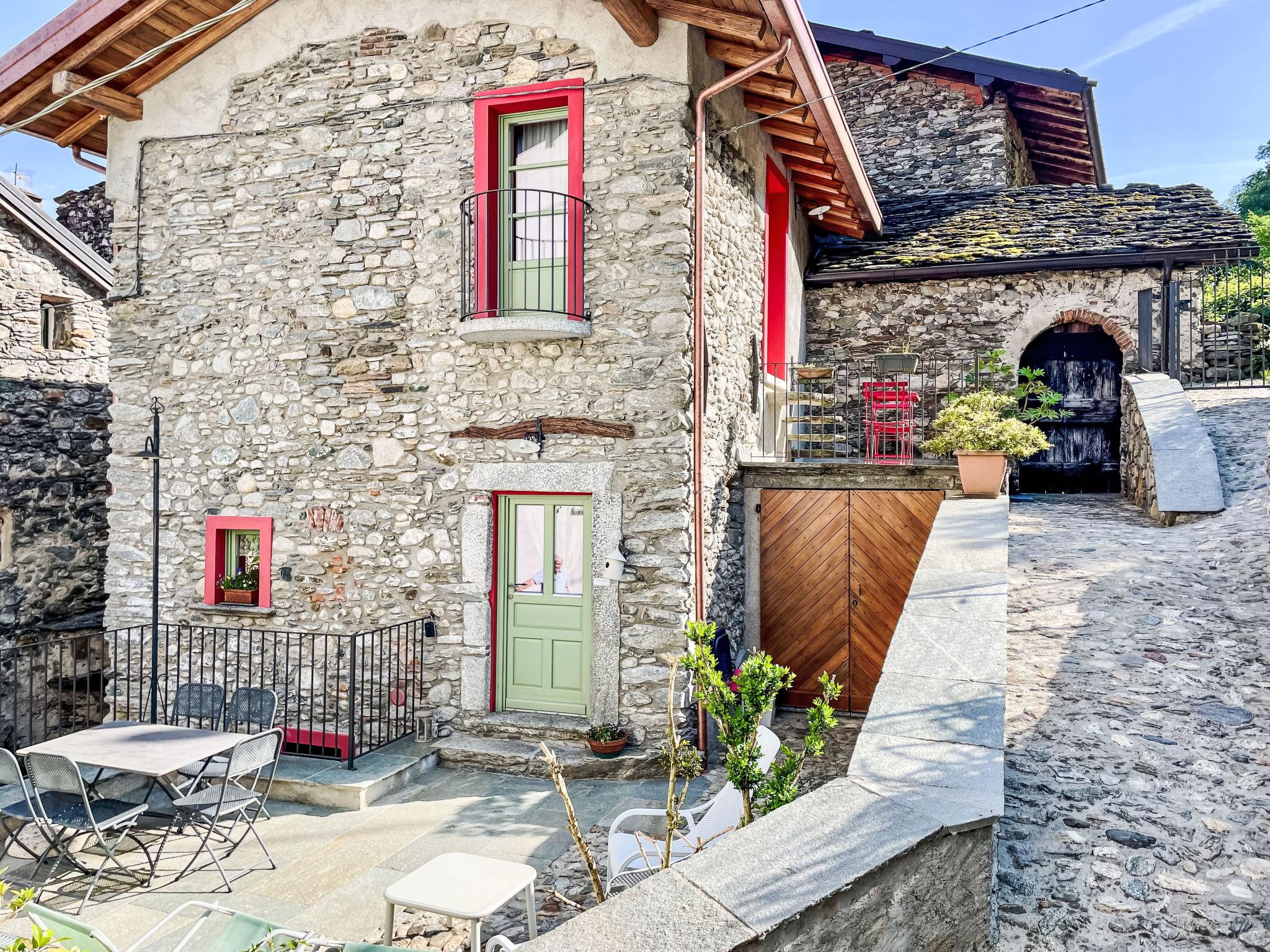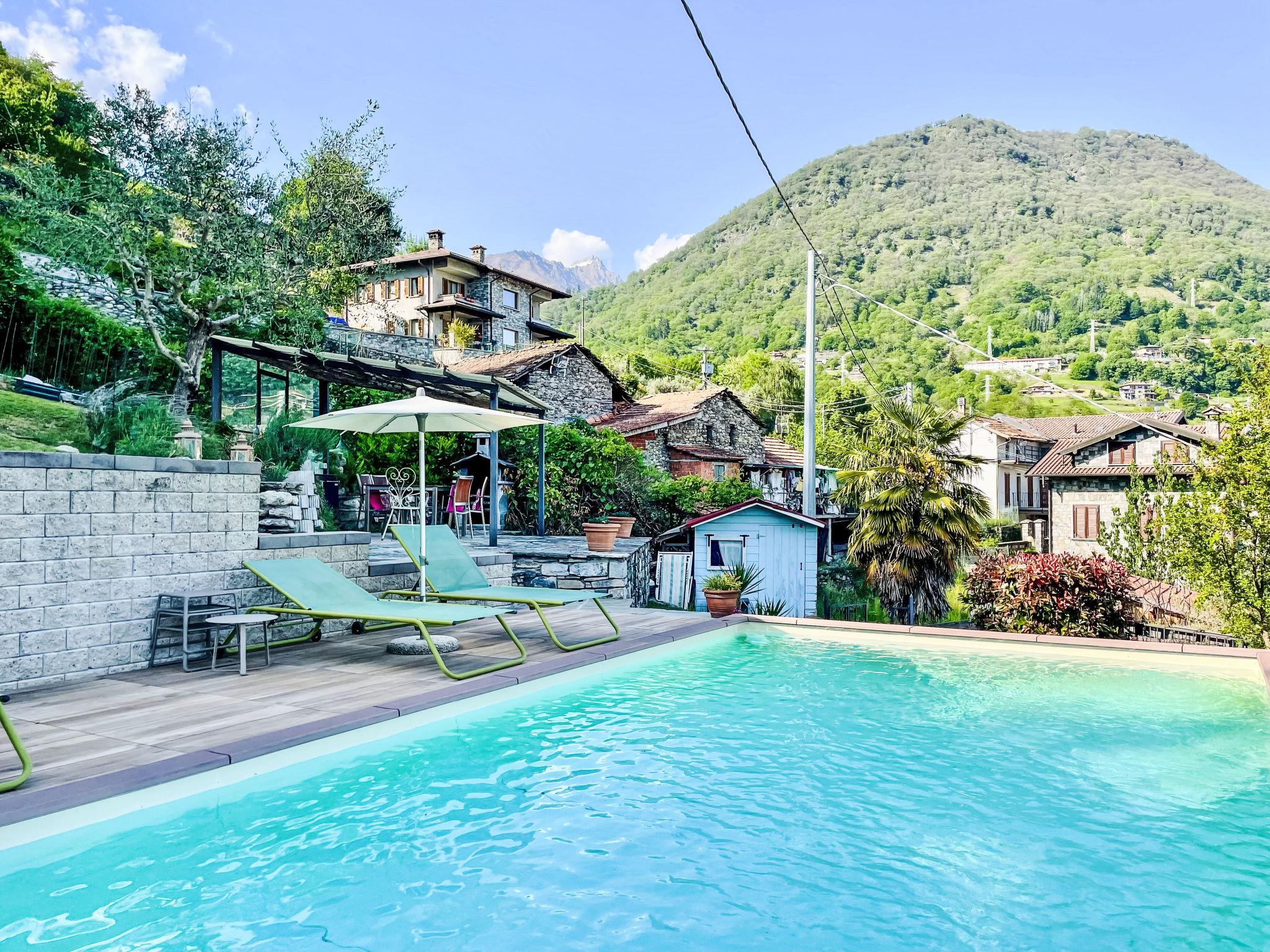 Cosy "rustico" cottage "Tuschaus", 3 storeys. In the hamlet Gaggio 2 km from the centre of Domaso, 52 km from the centre of Como, 52 km from the centre of Lecco, on a slope, 1 km from the lake. For shared use: property 1'000 m2 (fenced), well-kept terraced garden (fenced) with lawn and plants, orchard, swimming pool angular (8 x 4 m, seasonal availability: 15.Apr. - 15.Oct.). WC in the pool area, outdoor shower, garden furniture, barbecue, pool maintenance by the owner/gardener. Bread roll service. 1.4 km long narrow motor access to the house. 200 m footpath to the house. Public parking 100 m. Shop 2 km, supermarket 2 km, bus stop 400 m, railway station "Como" 52 km, pebble beach "Spiaggia 'Madonnina'" 2 km. Marina 2 km, golf course (18 hole) 27 km, surf school 2 km, sailing school 2 km. Nearby attractions: Tempieto di San Fedelino, Forte di Fuentes, Chiesa di San Bartolomeo. Well-known ski regions can easily be reached: Madesimo. Well-known lakes can easily be reached: Lago di Mezzola. Hiking paths: Monte Berlinghera, Alpe Dosso del Liro, Madonna di Gorghiglio. Please note: car recommended. Object suitable for 4 adults + 2 children. The owner does not accept any youth groups. Loading and unloading of baggage is possible at the holiday house. Additional accommodations can be booked. Property ref. IT2427.666.1 is situated on the same property.
