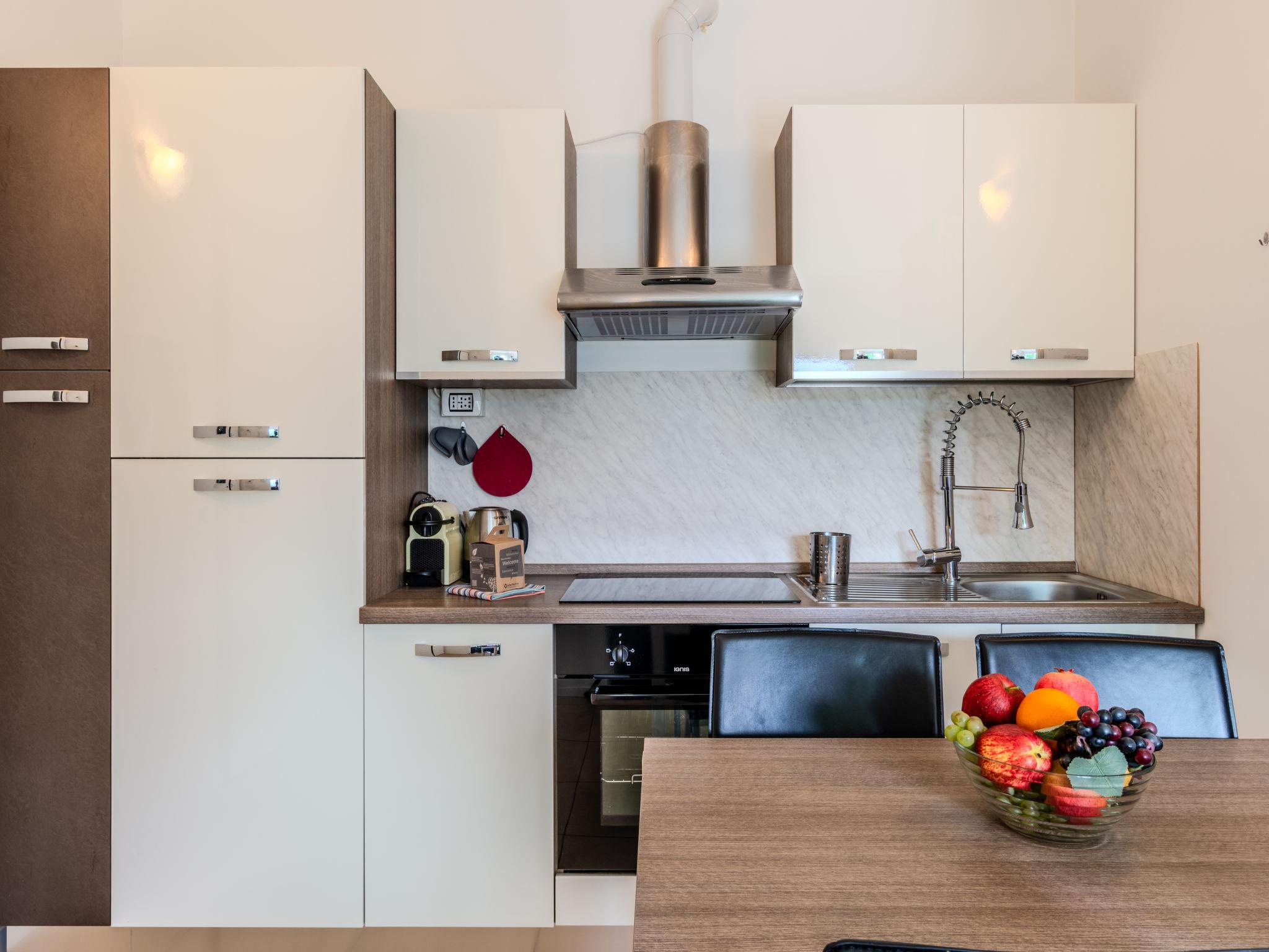 "Nancy", 2-room apartment 40 m2 on 2nd floor. Comfortable furnishings: open living/sleeping room with 1 double sofabed and TV. Exit to the balcony. 1 double bedroom. Small, open kitchen (oven, 4 induction hot plates, toaster, kettle, electric coffee machine, Capsules for coffee machine (Nespresso) extra) with dining table. Shower/bidet/WC. Gas heating, air-conditioning. Heating available only from 15.10. to 15.04. Balcony. Balcony furniture. Very beautiful view of the countryside. Facilities: washing machine, children's high chair, baby cot for up to 2 year olds, hair dryer. Internet (WiFi, free). Garage (1 car), height 210 cm, width 250 cm. Please note: non-smokers only. Maximum 1 small pet/ dog allowed. Fire extinguisher. IT013089C228V2YYK7