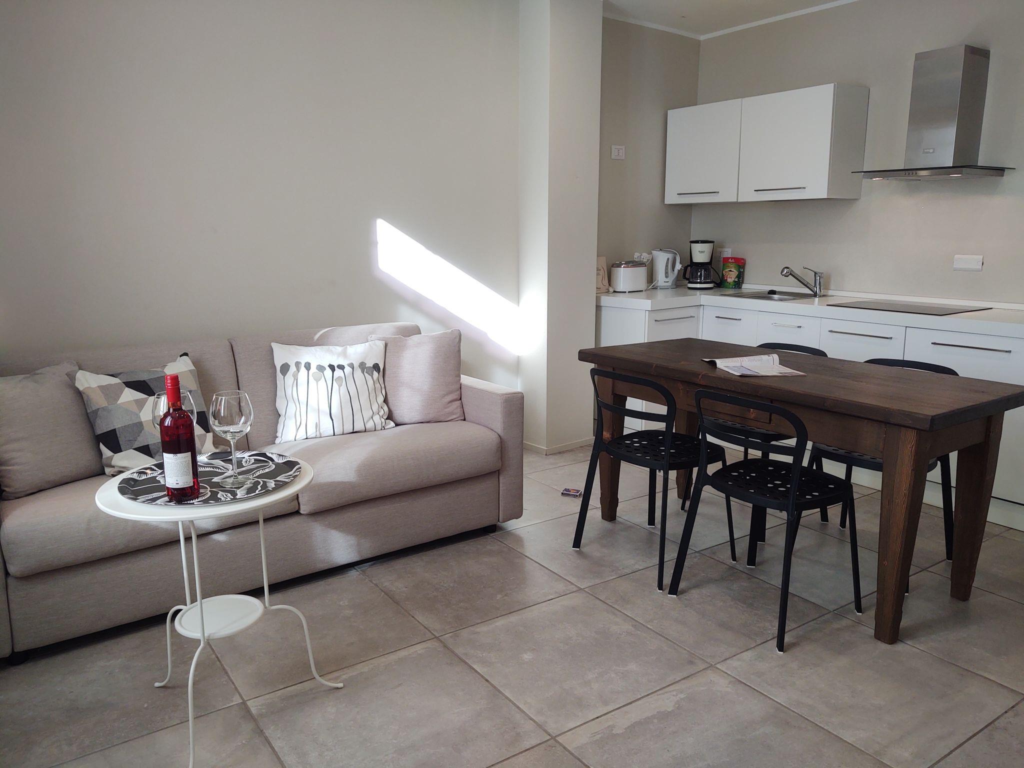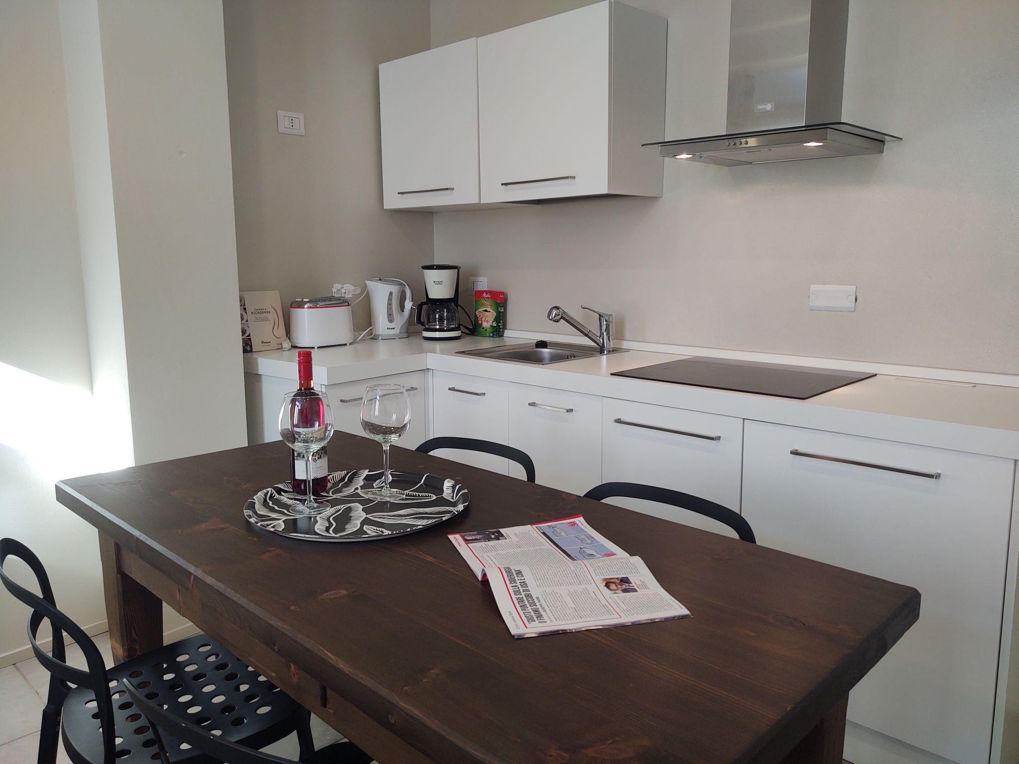 "Monolocale", 1-room apartment 40 m2, on the ground floor. Beautiful furnishings: living/sleeping room with 1 double sofabed, dining table and satellite TV. Open kitchen (dishwasher, 4 induction hot plates, toaster, kettle, microwave, electric coffee machine). Shower/WC. Oil heating. Terrace furniture, deck chairs (2). Facilities: washing machine. Internet (WiFi, free). Parking (1 car). Please note: non-smokers only. Maximum 1 pet/ dog allowed. Private entrance. IT097032C2XVVPYNEU