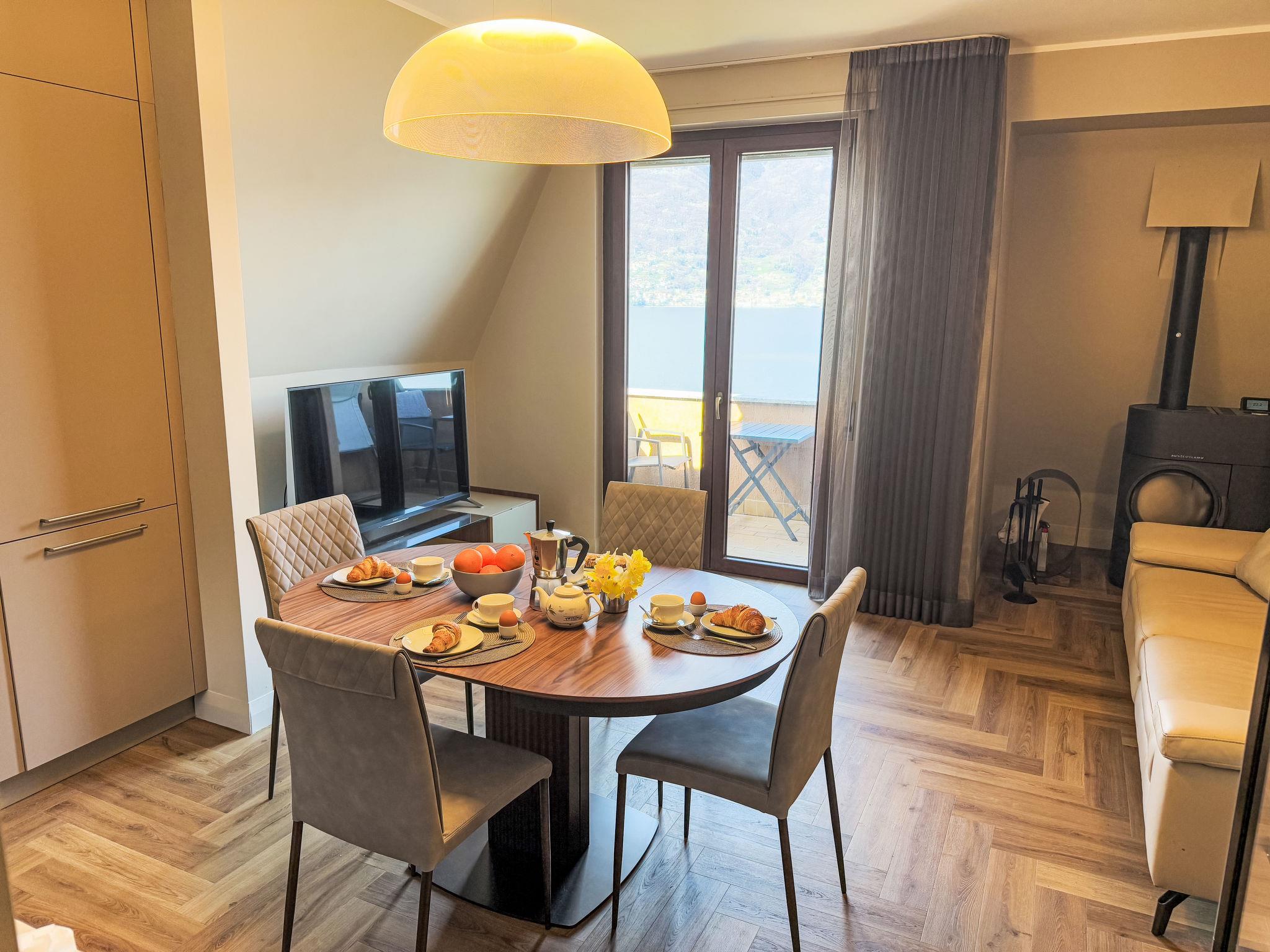 "Vento Errante", 3-room apartment 70 m2 on 3rd floor. Fully renovated in 2025, modern and tasteful furnishings: living/dining room with dining table, TV and heating stove. Exit to the balcony. 1 room with 1 double sofabed. Exit to the balcony. 1 double bedroom with air conditioning. Exit to the balcony. Kitchen (oven, dishwasher, 4 induction hot plates, kettle, freezer, electric coffee machine). Exit to the balcony. Shower/bidet/WC. Air-conditioning. Balcony 4 m2, 2 small balconies. Balcony furniture. Marvellous panoramic view of the lake, the mountains and the countryside. Facilities: hair dryer. Internet (WiFi, free). Parking, garage (1 car) at the house. Please note: non-smokers only. Fire extinguisher. IT097032C2YM73SKY2