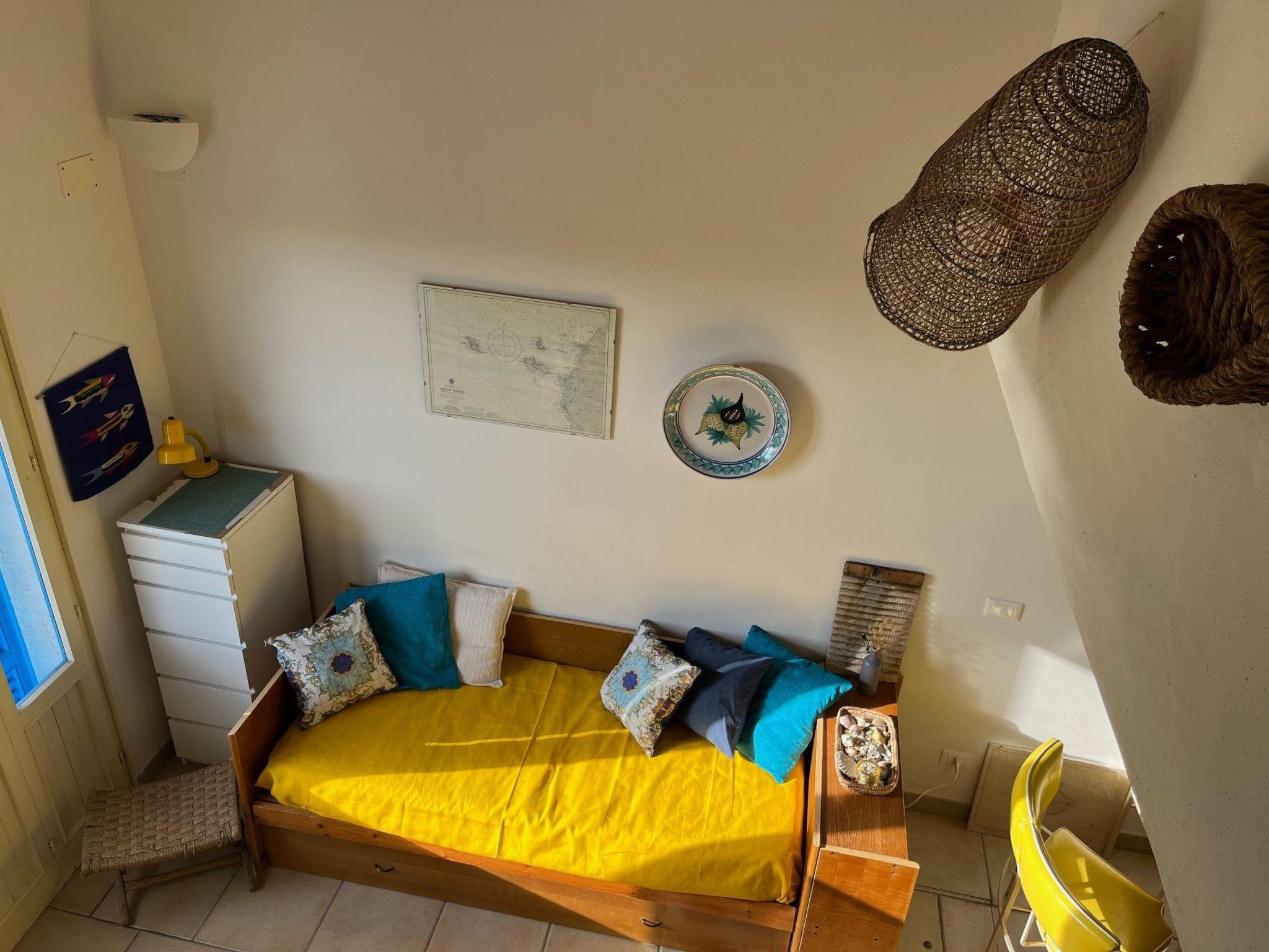 All'interno, al piano terra, Casetta Favonia vi accoglie con un accogliente soggiorno dotato di un divano letto doppio molto comodo, ideale per rilassarsi dopo una giornata al mare. La cucina, completamente attrezzata, e il bagno completo aggiungono ulteriore comodità al vostro soggiorno, mentre uno spazio esterno recintato offre la privacy per godersi serene serate all'open. Going upstairs, you will find a romantic bedroom overlooking a small terrace, which leads you to the upper panoramic terrace, from where you can enjoy breathtaking views.