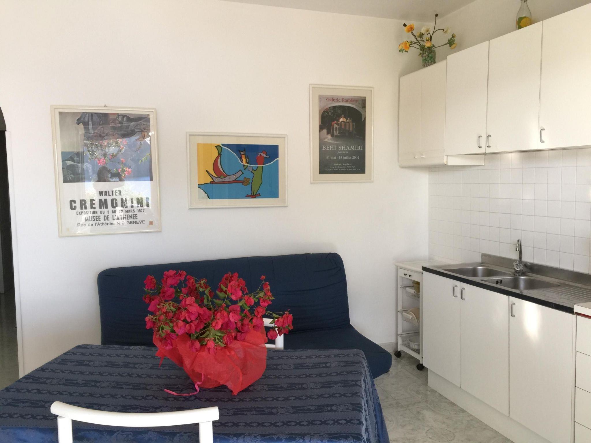 Externally, the flat's jewel is undoubtedly its splendid terrace with panoramic views over the Bay of Canneto. Here, guests can delight in al fresco dining or simply relax while admiring the breathtaking sea views. The addition of an outdoor shower with hot water further enhances comfort, allowing for a refreshing return from the beach before enjoying peaceful evenings under the starry sky.