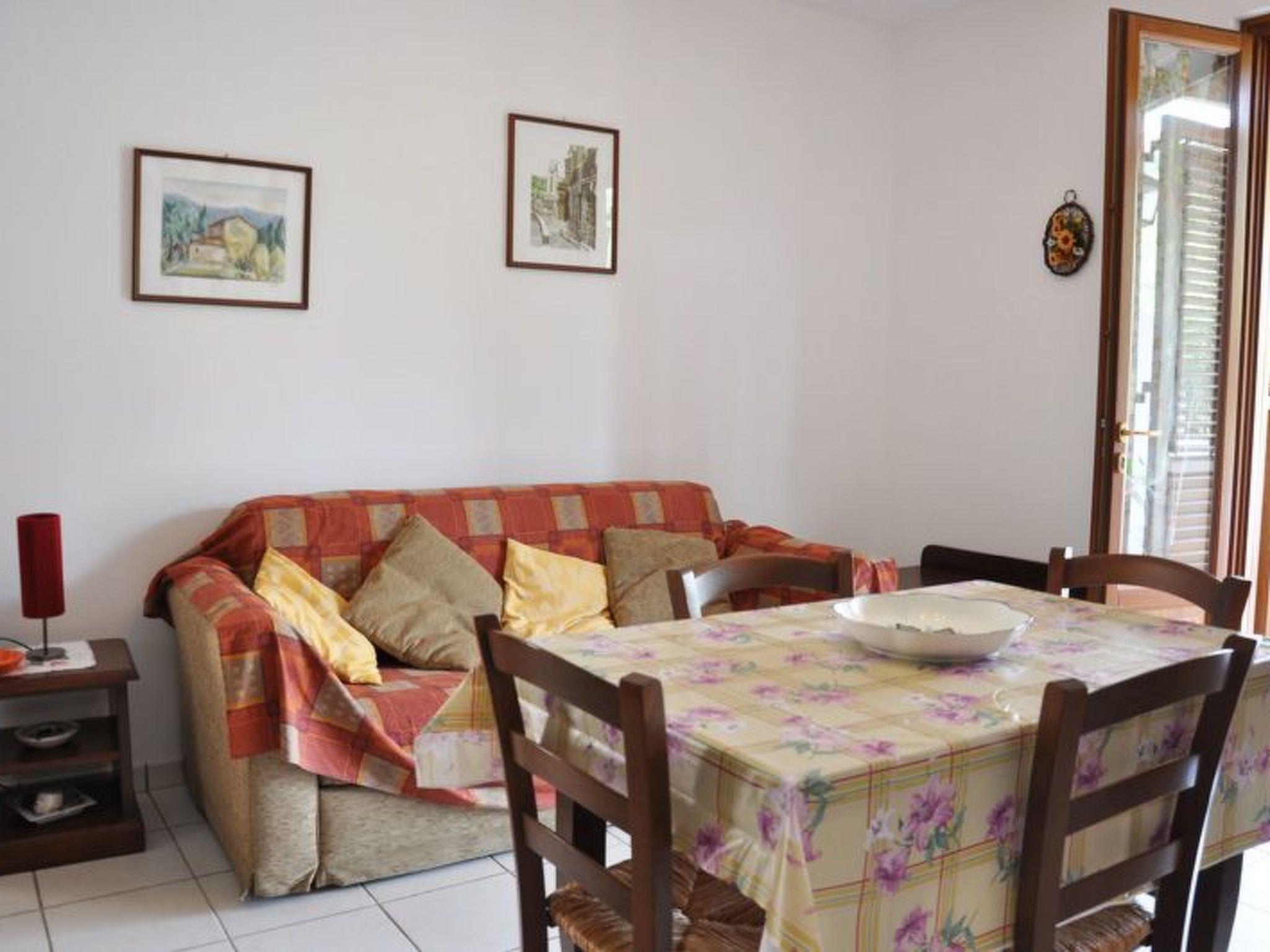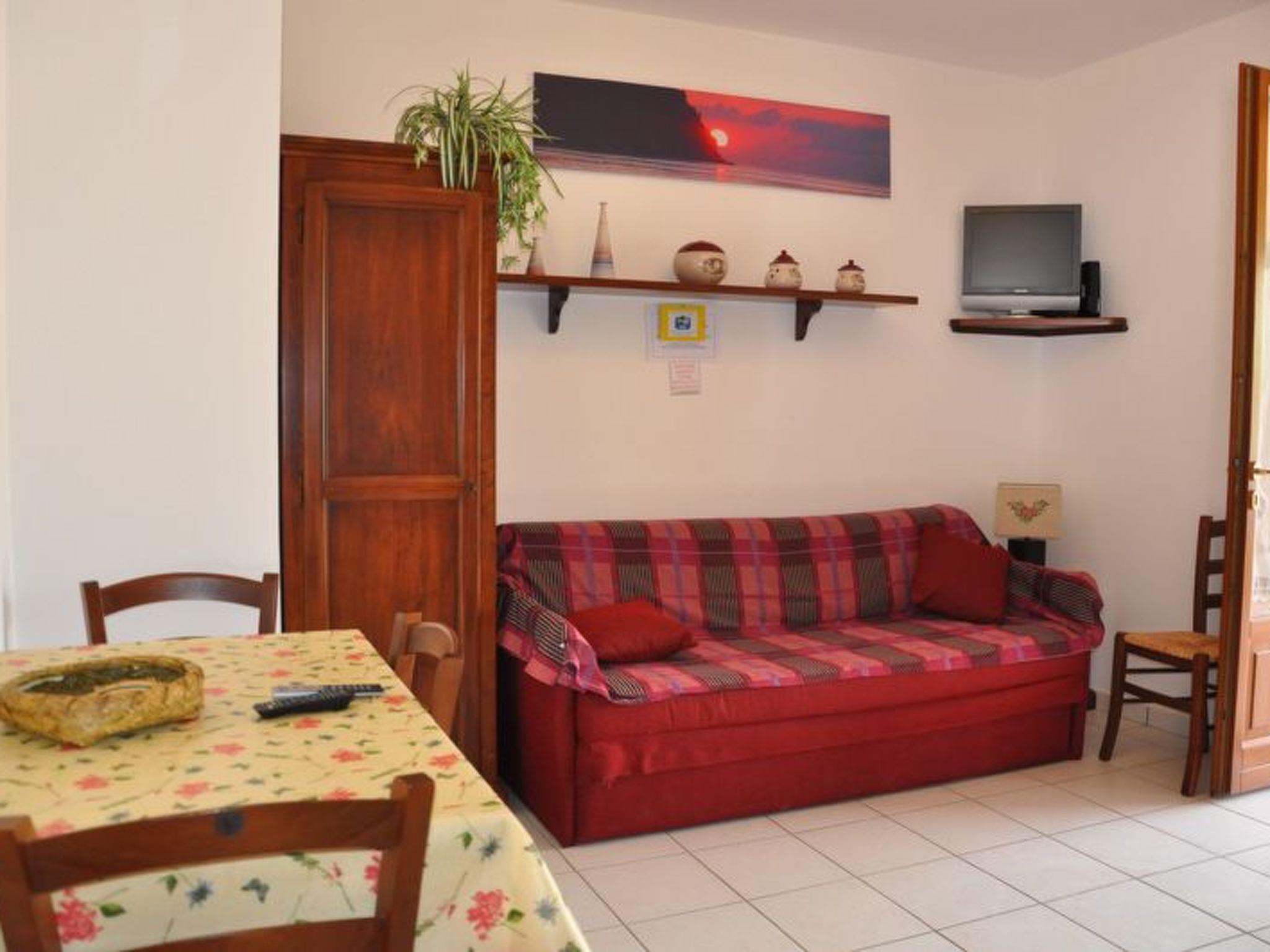 Internally, the flat features a spacious living-dining room with an elegant kitchenette and a sofa bed for 2 persons. You will also find a spacious double bedroom with the possibility of adding a single bed, and a complete bathroom with shower cubicle. Comfort is guaranteed by amenities such as air conditioning, colour TV and free Wi-Fi, making your stay enjoyable at all times.