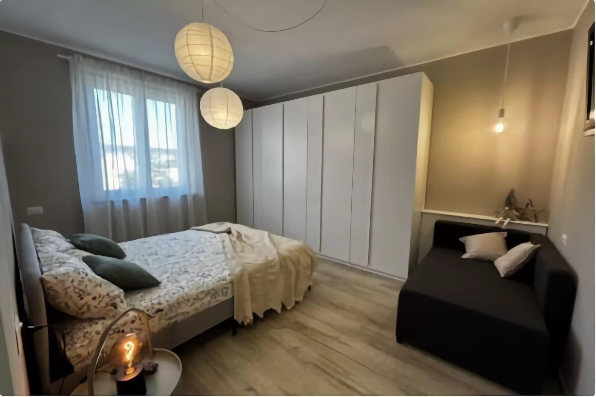 På 1. etage: (Stue(dobbeltsovesofa), Køkken(kogeplade, kaffemaskine, ovn, mikrobølgeovn, opvaskemaskine , køle-fryseskab), soveværelse(enkeltsovesofa, dobbeltseng), badeværelse(bruser, håndvask, toilet, bidet), badeværelse(bruser, håndvask, toilet, bidet), balkon eller terrasse) parkering