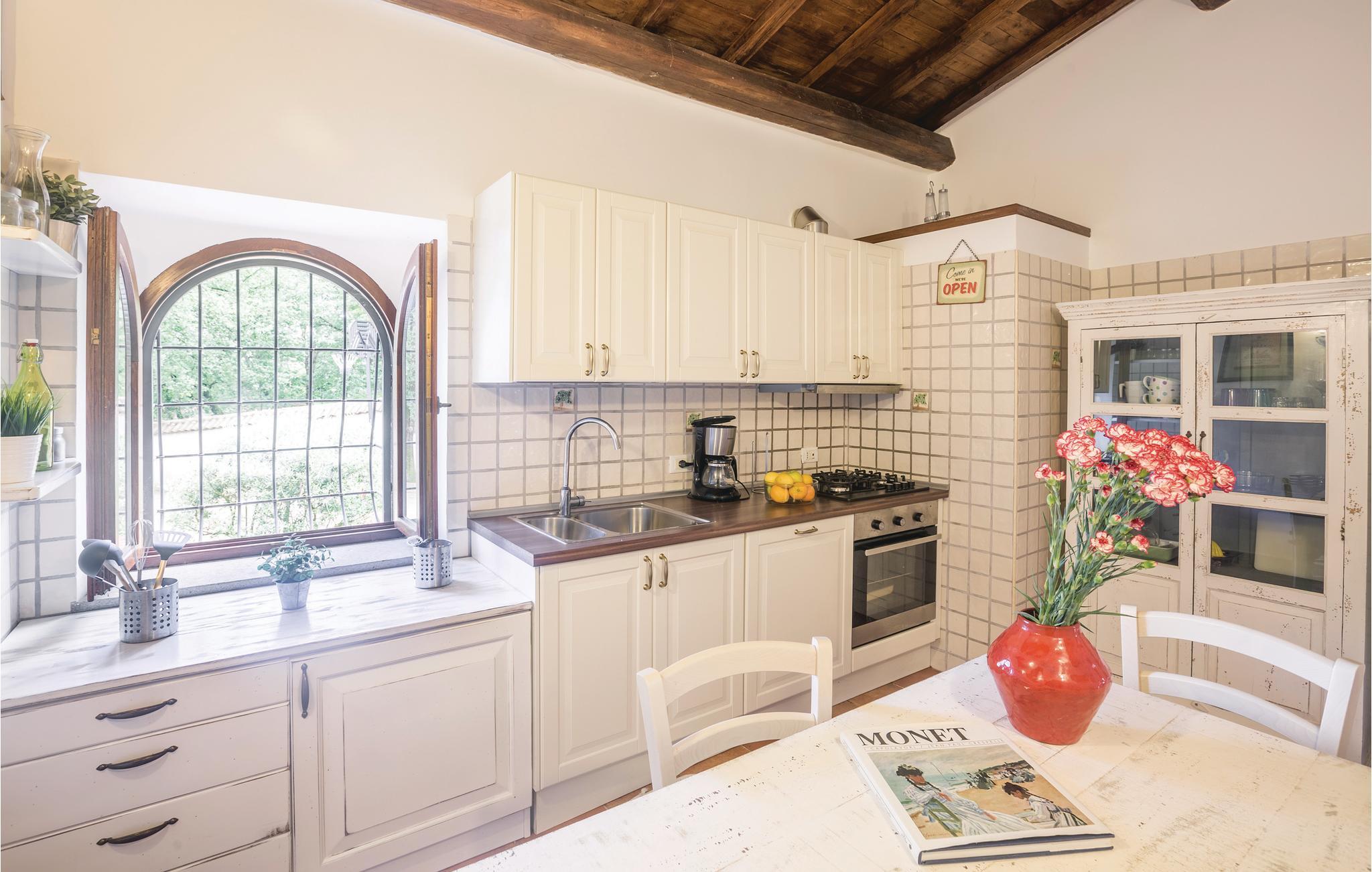 Ganske specielt feriehus; en renoveret lille landkirke fra det 18. århundrede, der ligger nær middelalderlandsbyen Fabrica di Roma (500 m). I spisestuen, engang apsis, er der en freske der viser helgendyrkelsen. Feriehuset ligger i etruskerlandet. Få kilometer fra søerne i det nordlige Latium og fra det sydlige Umbrien. Ideelt udgangspunkt for at udforske de antikke landsbyer og interessante kunsthistoriske byer i begge regioner. Udflugtsmål: 10 km til Vicosøen, 28 km Viterbo (Terme dei Papi), 30 km til Braccianosøen, Tarquinia 66 km, det Tyrrhenske hav 70 km. Rom, som er Italiens metropol med kunst, kultur og historie 70 km væk. I kan tage toget til Rom og glemme alt om parkeringsudfordringer.