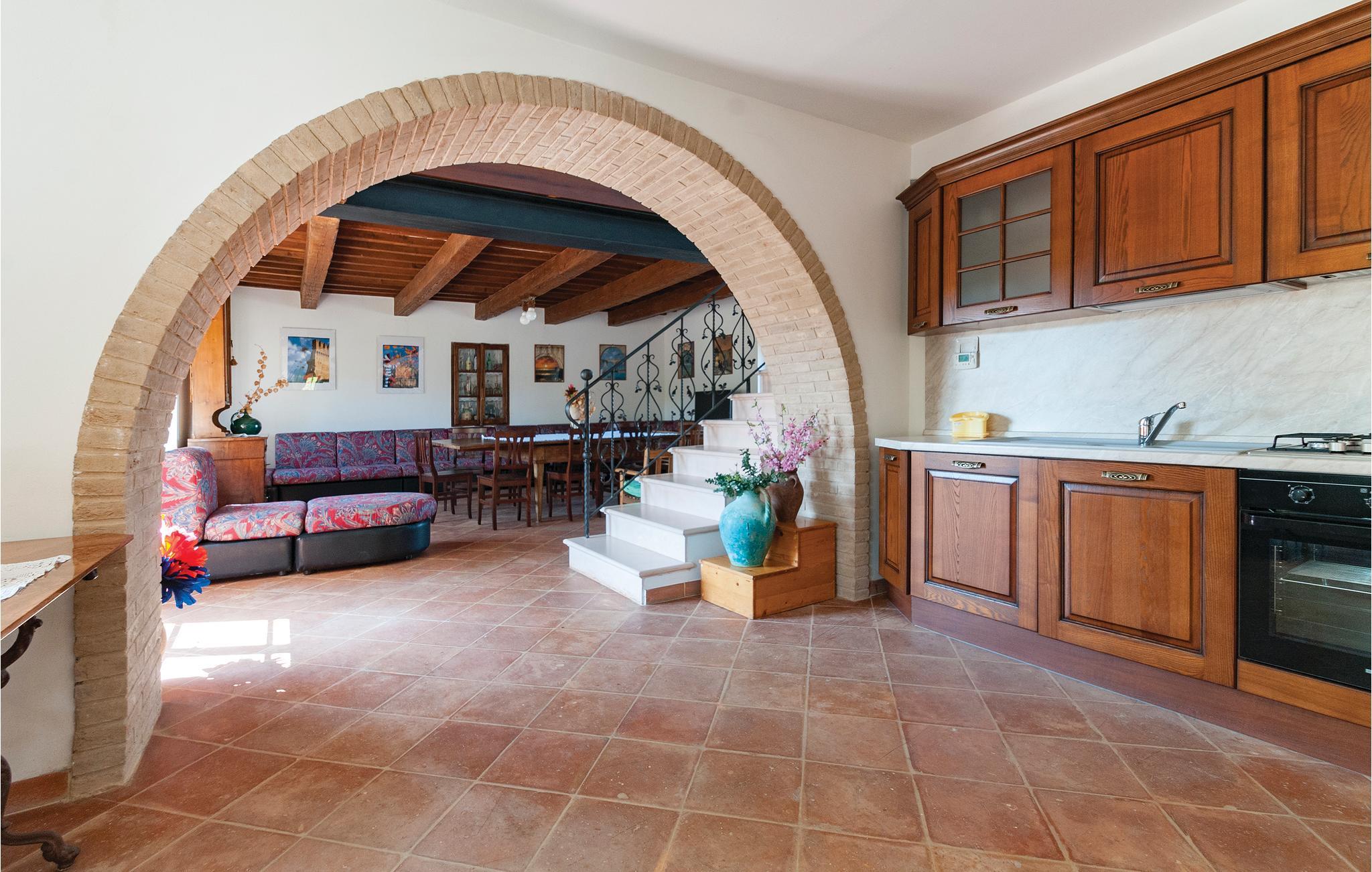 Dette charmerende feriehus i Prelato nær Fano tilbyder jer ideelle forhold for jeres afslappende ferie. Indenfor er der en hyggelig stue, en stilfuld spisestue med pejs og et veludstyret køkken, der fører direkte ud til den store veranda - perfekt til måltider med udsigt over det maleriske landskab. De store soveværelser ovenpå og et lyst billardrum sikrer komfort og underholdning.