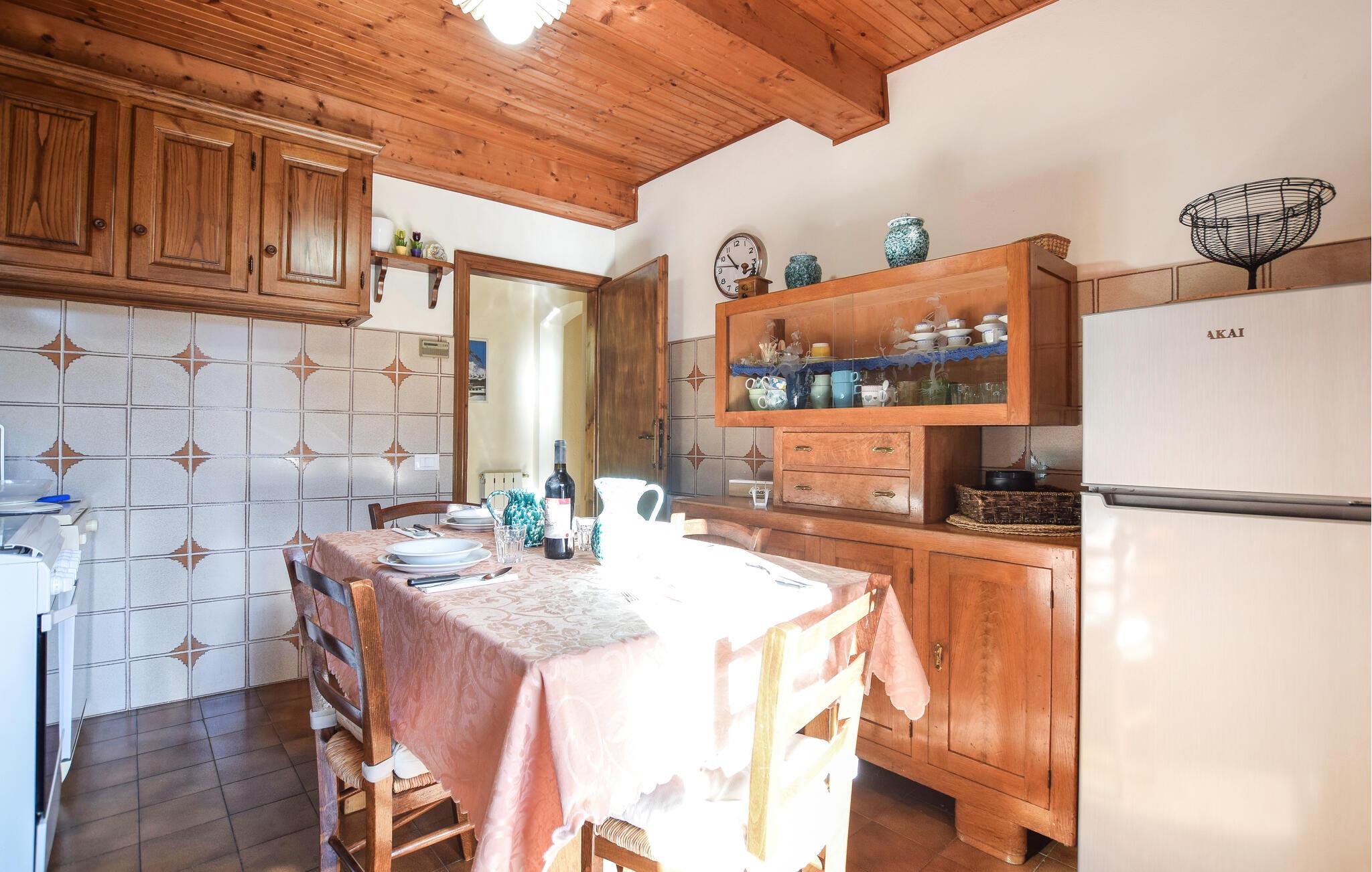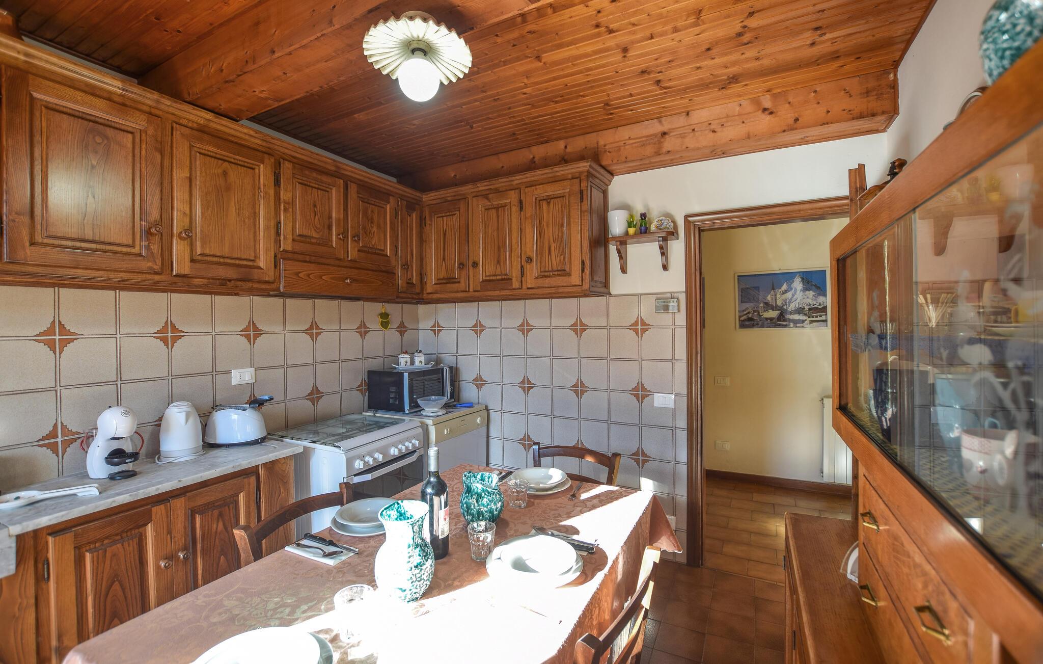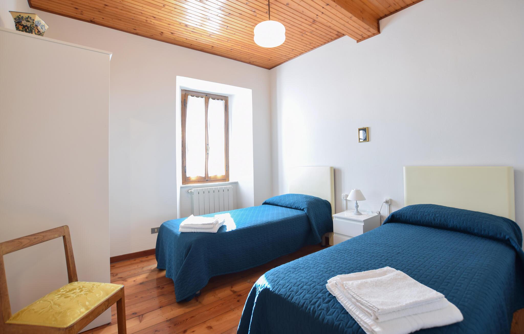 Dette charmerende feriehus venter på jer midt i den rolige bjerglandsby Farnocchia, hvor I og andre friluftsmennesker vil føle sig hjemme. Tilbered lækre pastaretter eller friske salater i det veludstyrede køkken med et varmt trædesign, og nyd jeres måltider i den åbne stue. Planlæg jeres aktiviteter i den hyggelige atmosfære ved pejsen, organiser en spilleaften eller krøl jer sammen på sofaen med en bog.