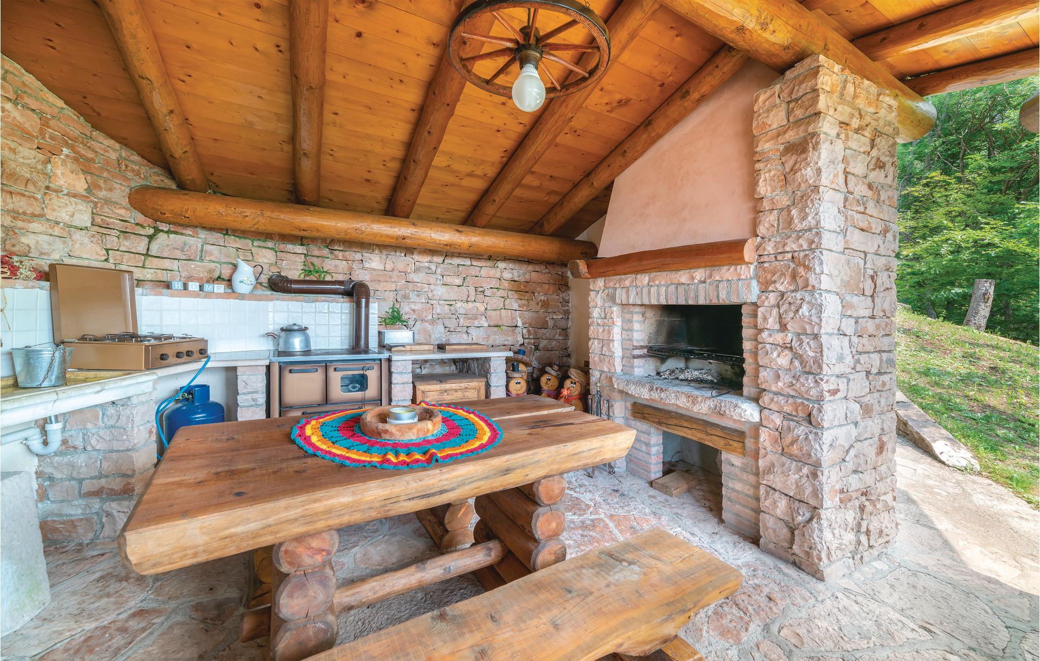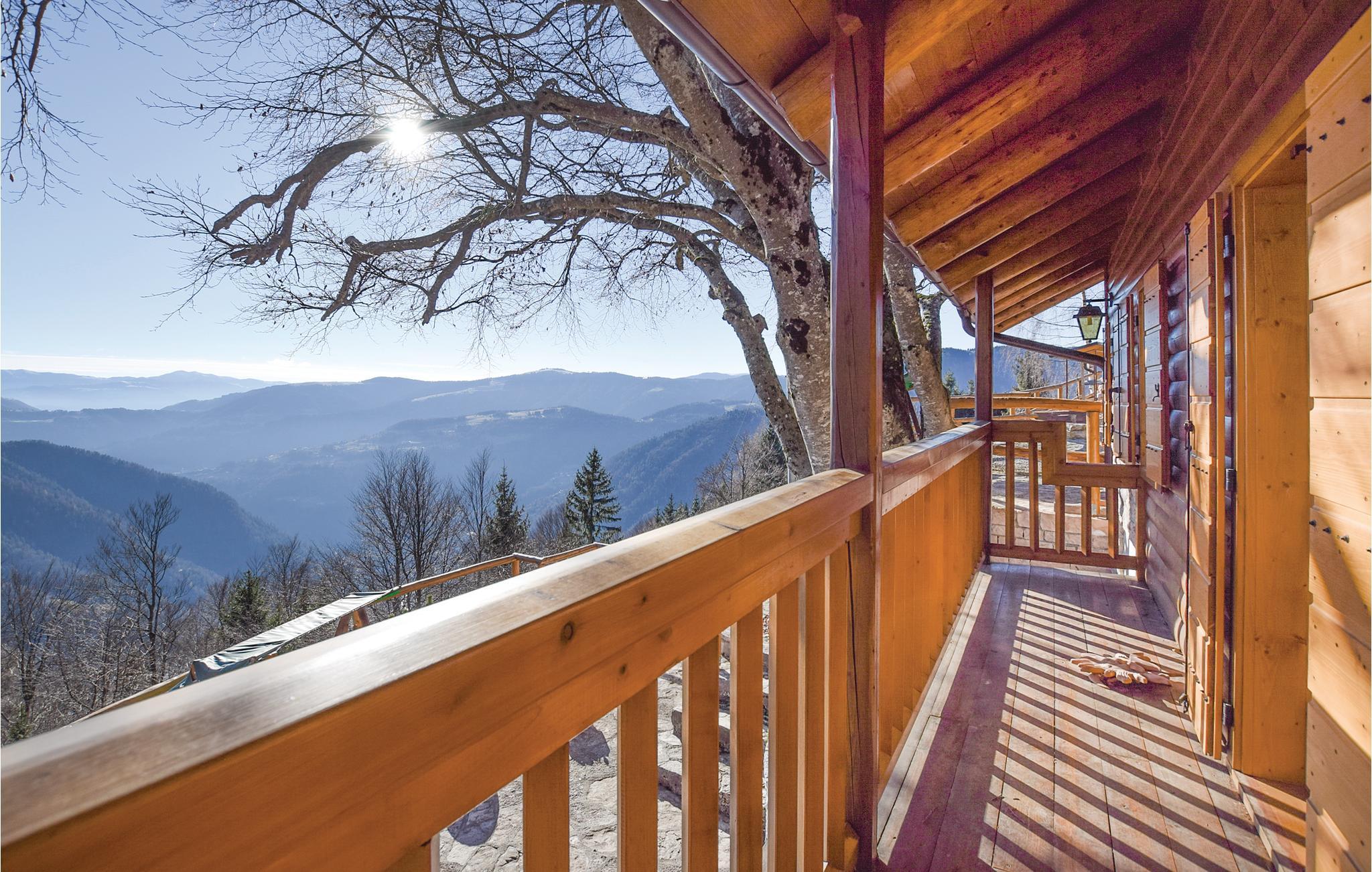 Fra den karakteristiske bjergby Lamon nås huset ad en kurverig vej op ad bjerget, hvor de sidste kilomter er ad en grusvej. Bjerghytten ligger på en stor naturgrund med havemøbler. Her er en overdækket terrasse med udendørs køkken, kamin, bord og stole, i en hyggelig og afslappet atmosfære. Børnene kan underholde sig med mange former for legeredskaber, bl.a. gynge og trampolin.
