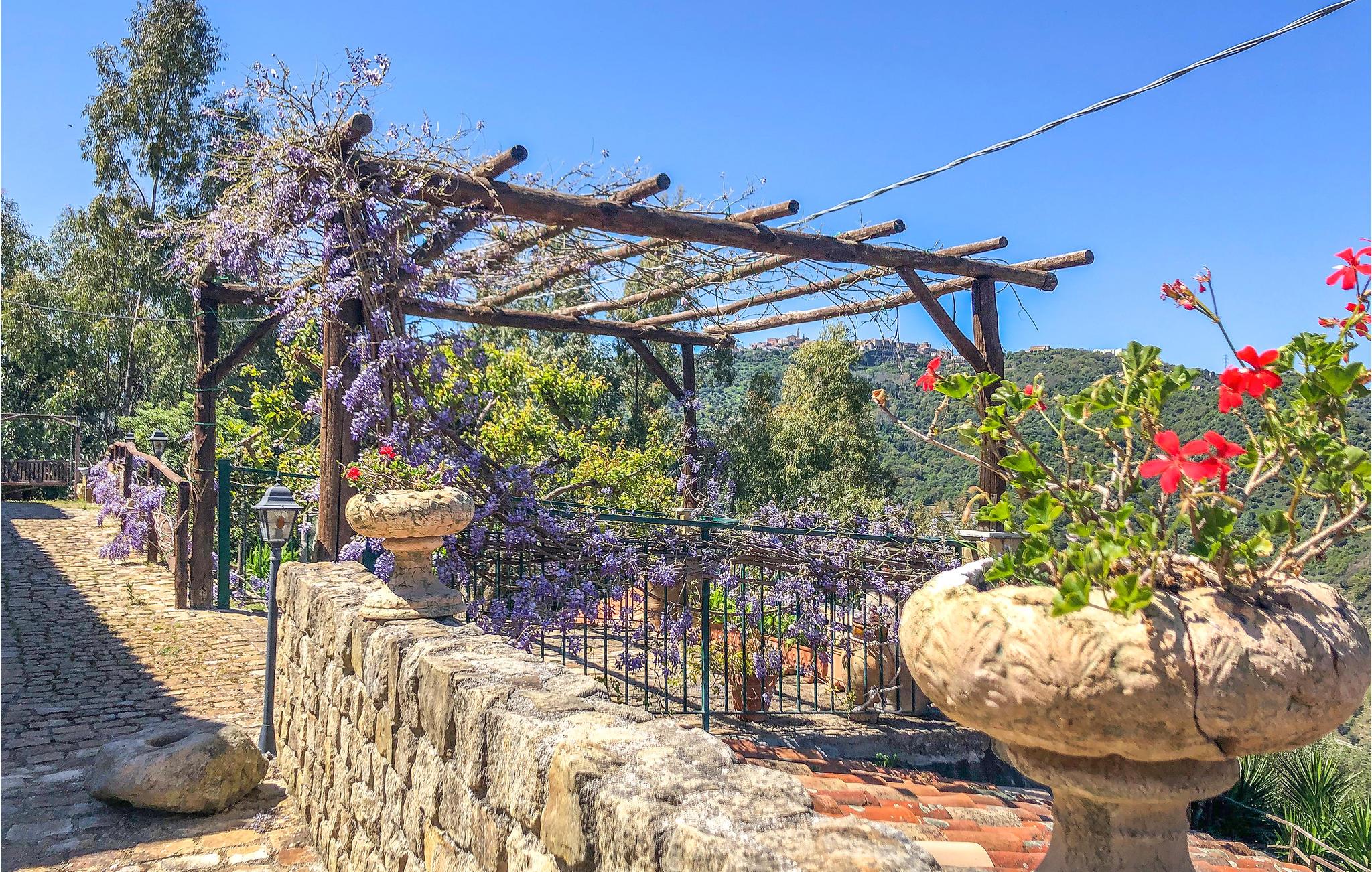 Nyd en fantastisk panoramaudsigt, indrammet af grøn vegetation og farverige blomster, fra denne fantastiske villa, som er bygget i en særdeles autentisk stil og kan rumme en stor feriegruppe. I de gamle stenmure, ved poolen, på den overdækkede terrasse og i den stilfulde, rustikke indretning, føler I jer alle rigtig godt tilpas og kan slappe af væk fra stress og jag, mødes til solide måltider eller finde et roligt hjørne at læse .