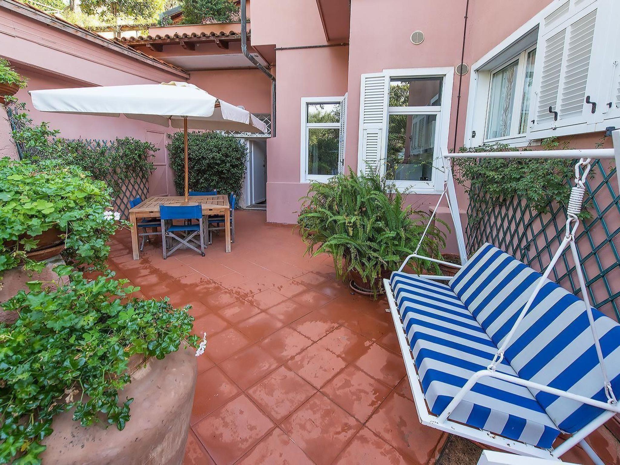 Outside, guests can enjoy the tranquillity offered by the private terrace, ideal for al fresco dining or simply relaxing after a day spent exploring the area. The flat also has a communal garden, perfect for those wishing to immerse themselves in the greenery and enjoy the peace of nature.