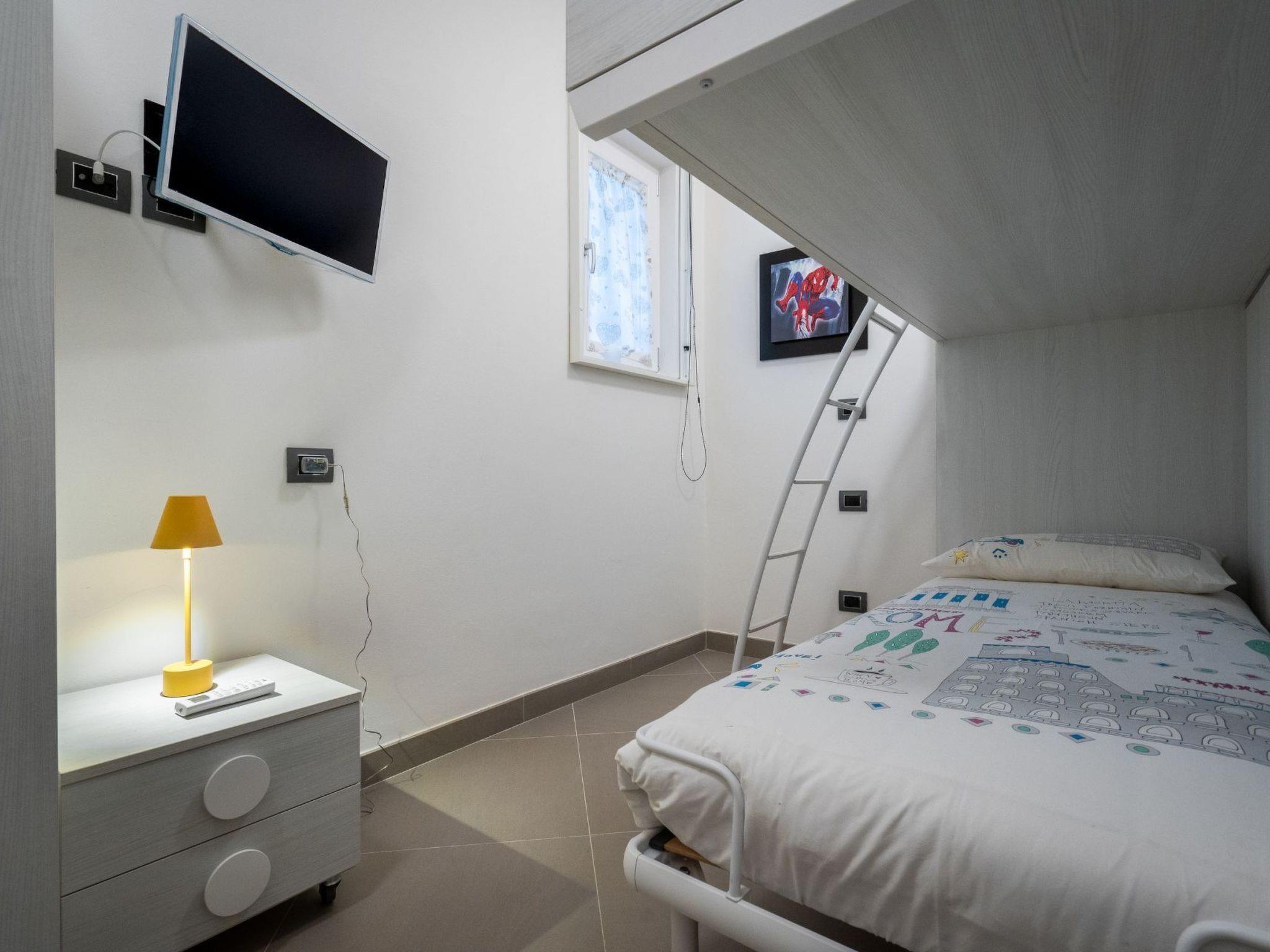 Garden Apartment is a comfortable flat with attention to every detail. This absolutely inviting three-room apartment is located on the ground floor, surrounded by greenery and overlooking a private courtyard that guarantees privacy and tranquillity. The flat can accommodate up to four people, with one double bedroom and one bedroom with bunk beds. Each room is equipped with TV, mosquito nets and air conditioning. The garden flat has a modern, functional bathroom and a kitchen with induction hob, oven, microwave, dishwasher and refrigerator. Outside there is a laundry area. Reliable Wi-Fi with 95.4 downloads.
