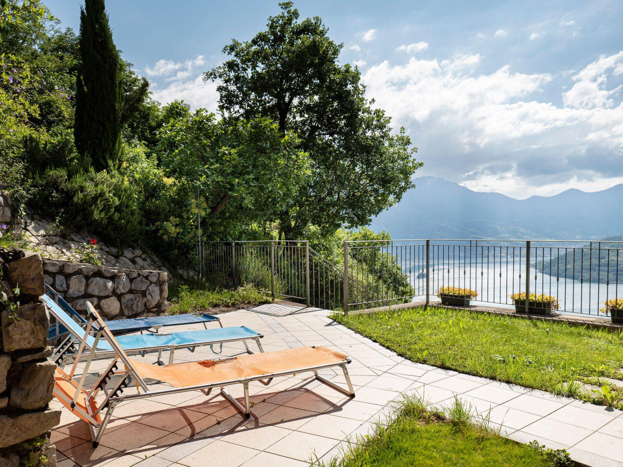 La Villetta, a holiday home in Parzanica, on the Bergamo side of Lake Iseo, is a place capable of offering a perfect welcome to a family on holiday. This is not only because of the interior spaces - 81 m2 distributed over two floors, with two bedrooms and two bathrooms - but also because of the outdoor spaces that amplify the usable area in fine weather. The panoramic terrace onto which the living room with kitchen on the first floor opens is in fact as spectacular for the view it affords, as it is comfortable and large enough to accommodate both the outdoor dining table and sun loungers, on an adjoining lawn area. In addition, of course, there is the communal swimming pool, which can be used by guests.