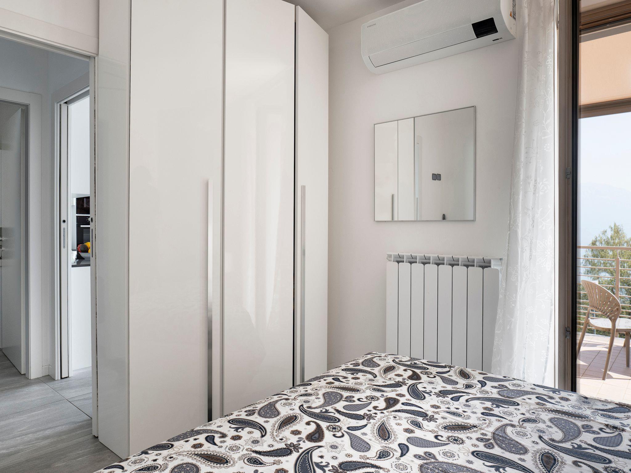 The bathroom is large and complete: in addition to the wall-hung bathroom fittings - washbasin, toilet and bidet - there is a shower cubicle and washing machine. The bedroom is a cosy and restful room: also potentially very bright thanks to the French window overlooking the terrace, it has a double bed and full-height wardrobes. The split for air conditioning is also present here. The flooring of the entire flat is made of large slabs of porcelain stoneware in the typical mottled colours of travertine. Lights on the Lake is equipped with wi-fi.