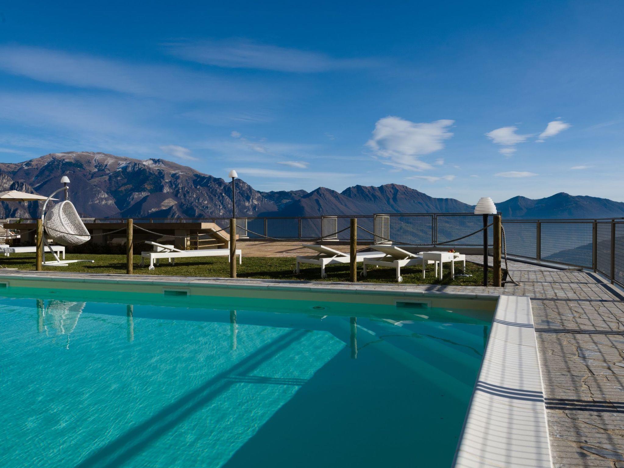 The holiday home Lights on the Lake, located in Parzanica and overlooking Lake Iseo, is a two-roomed apartment of 42 m2 divided with practical rationality: a bright living room with an open kitchen and television corner, a comfortable bedroom with a double bed and a fully equipped bathroom. The flat has modern and functional furnishings and is dominated by light, thanks to the large French windows in the living room and the bedroom, both of which open onto the terrace that embraces two sides of the house: in fine weather this represents a true extension of the domestic space, is equipped with an extendable awning and conveniently allows dining outside. It also communicates with a small garden, also owned by the house. The view from the terrace is priceless and soothing, allowing one's gaze to travel over the lake and the surrounding green mountain amphitheatre.