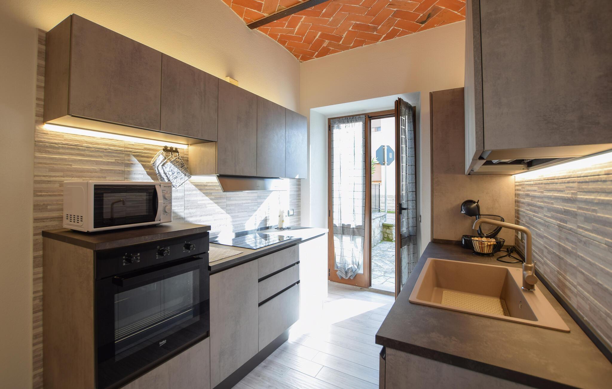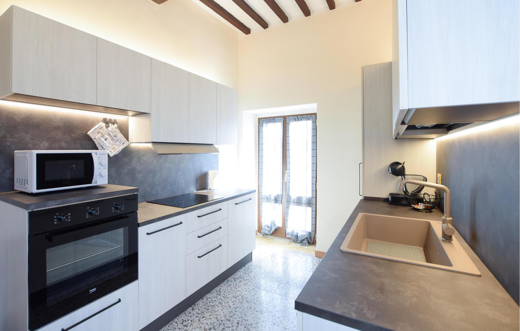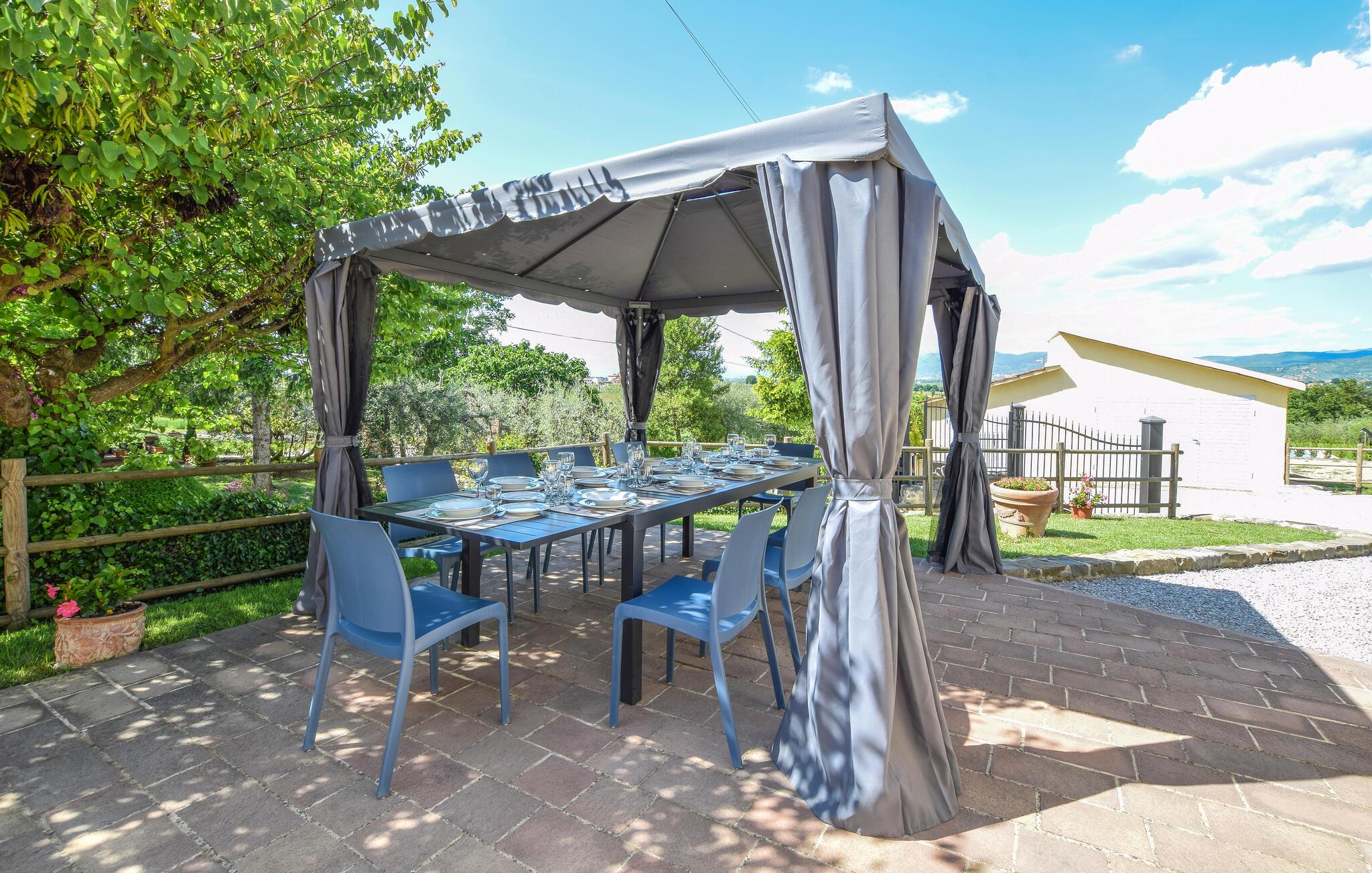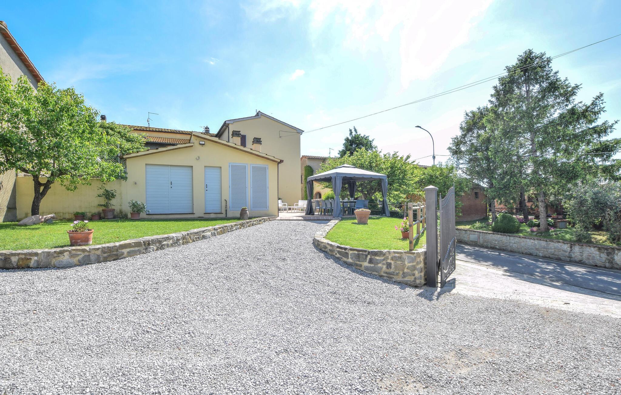 Velkommen til jeres feriehus i Fratticciola di Cortona. Dette kærligt renoverede hjem, der udgør en del af en historisk bondegård, tilbyder en perfekt blanding af rustik charme og moderne komfort. Tilbring dagen på terrassen, hvor komfortable siddepladser og en parasol sørger for skygge. Slap af ved den private pool omgivet af velplejet græs og olivenlunde, og lad sjælen finde ro.