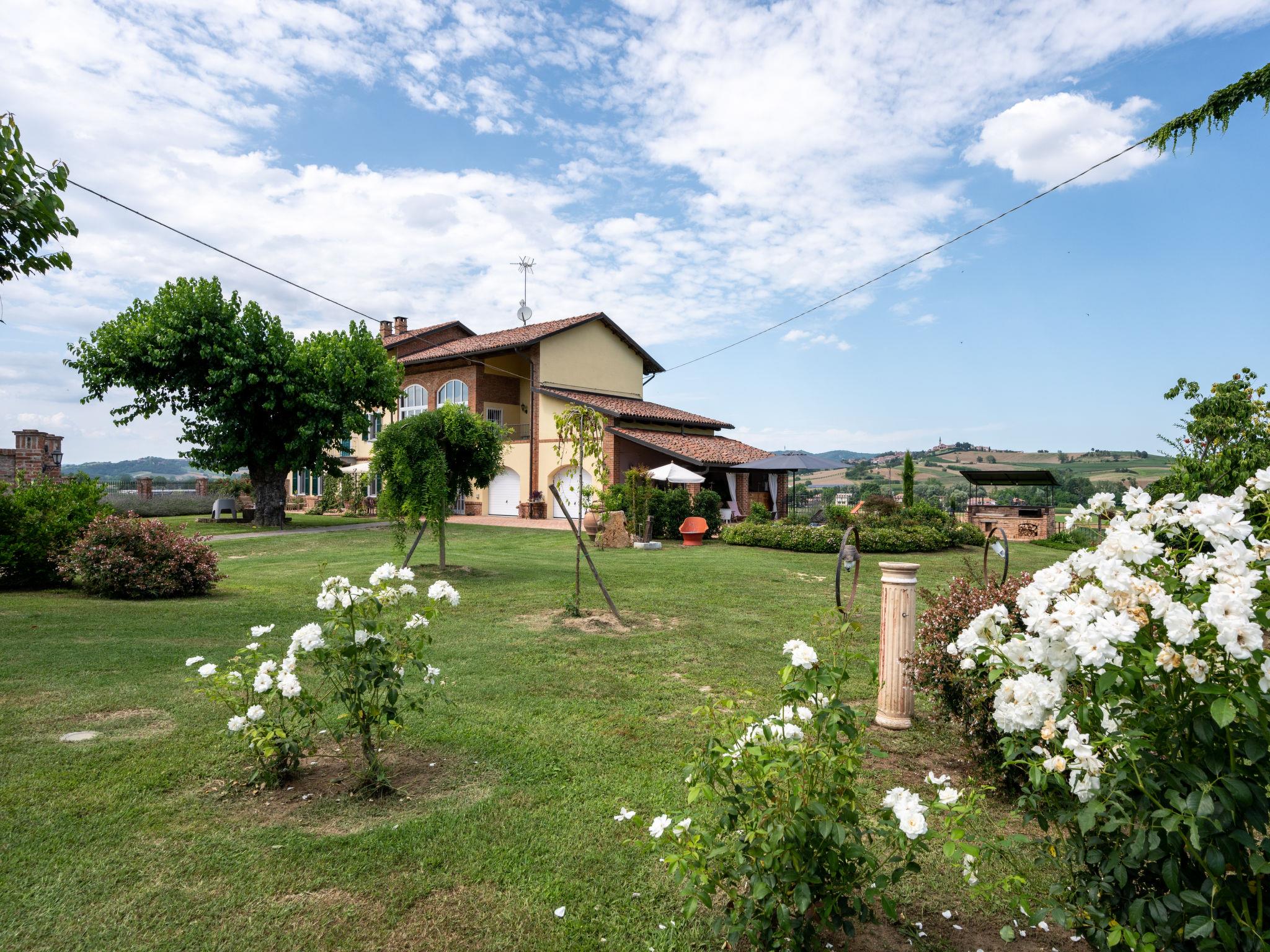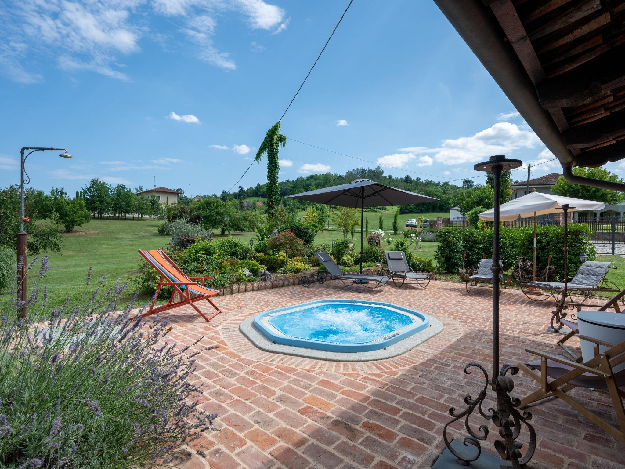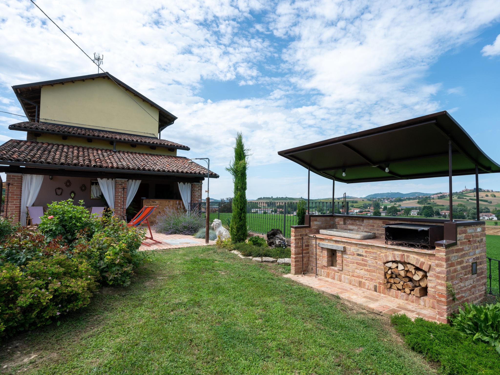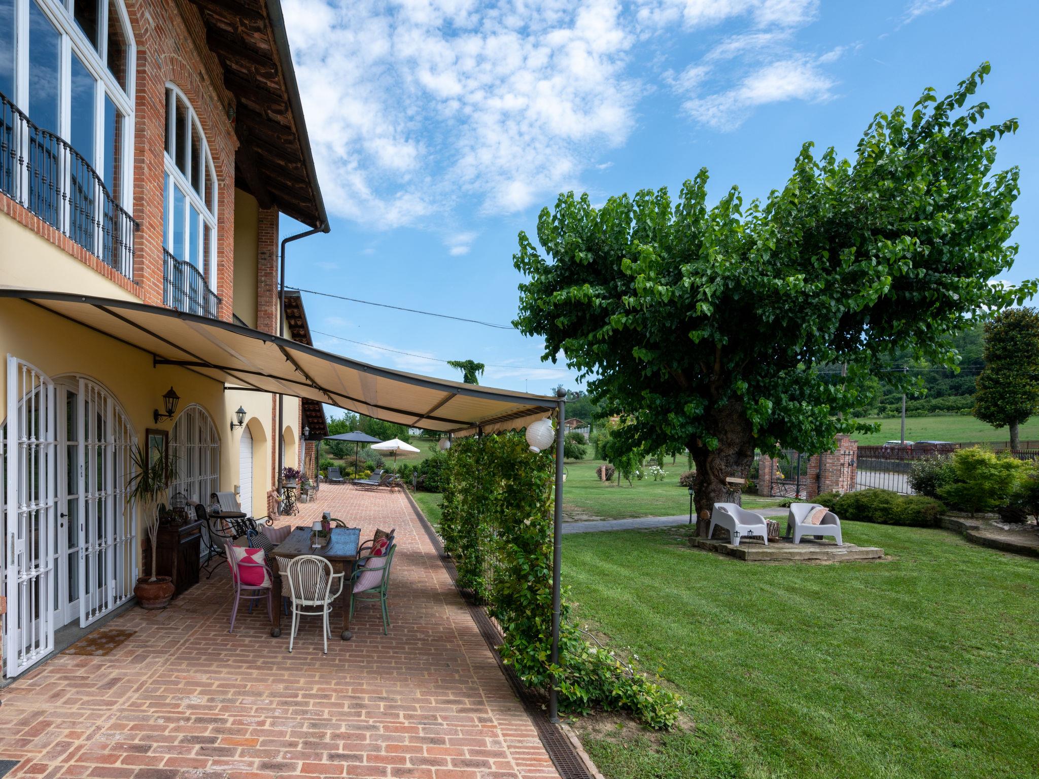 Large cottage "La Bell'aria", detached. On the outskirts, 1 km from the centre of Frinco, in an elevated position. Private: property 4'500 m2 (fenced) with wildlife garden and trees, natural garden, meadow. Outdoor shower, hot tub, table tennis, badminton, patio, pergola (20 m2), terrace, garden furniture, barbecue house, parking (for 3 cars) at the house on the premises. Bus stop 1 km. Nearby attractions: Asti 15 km, Casale Monferrato 37 km, Alba 45 km, La Morra 55 km, Barolo 52 km, Torino 76 km. Please note: car recommended. The tub is open from 30.04. to 15.09. The pool of the Bistro (20 x4 m, 01.06.-15.09.) located at a distance of ca. 100 m, can be used by our guests for a fee of: EUR 15 per person/day.