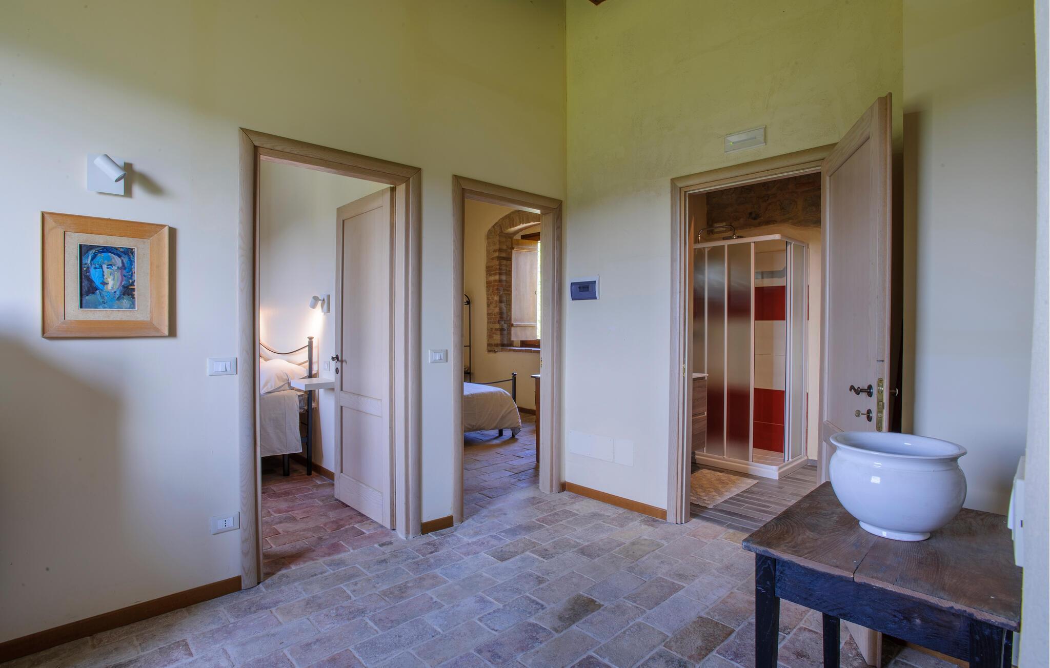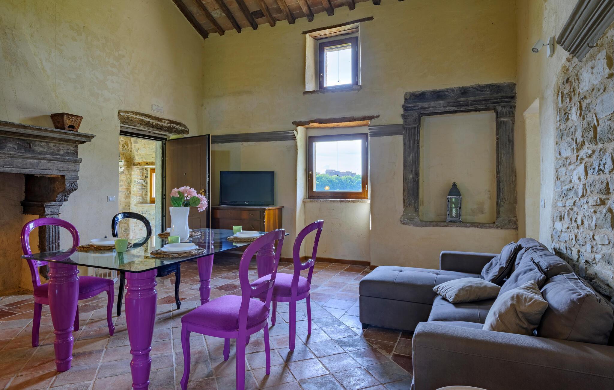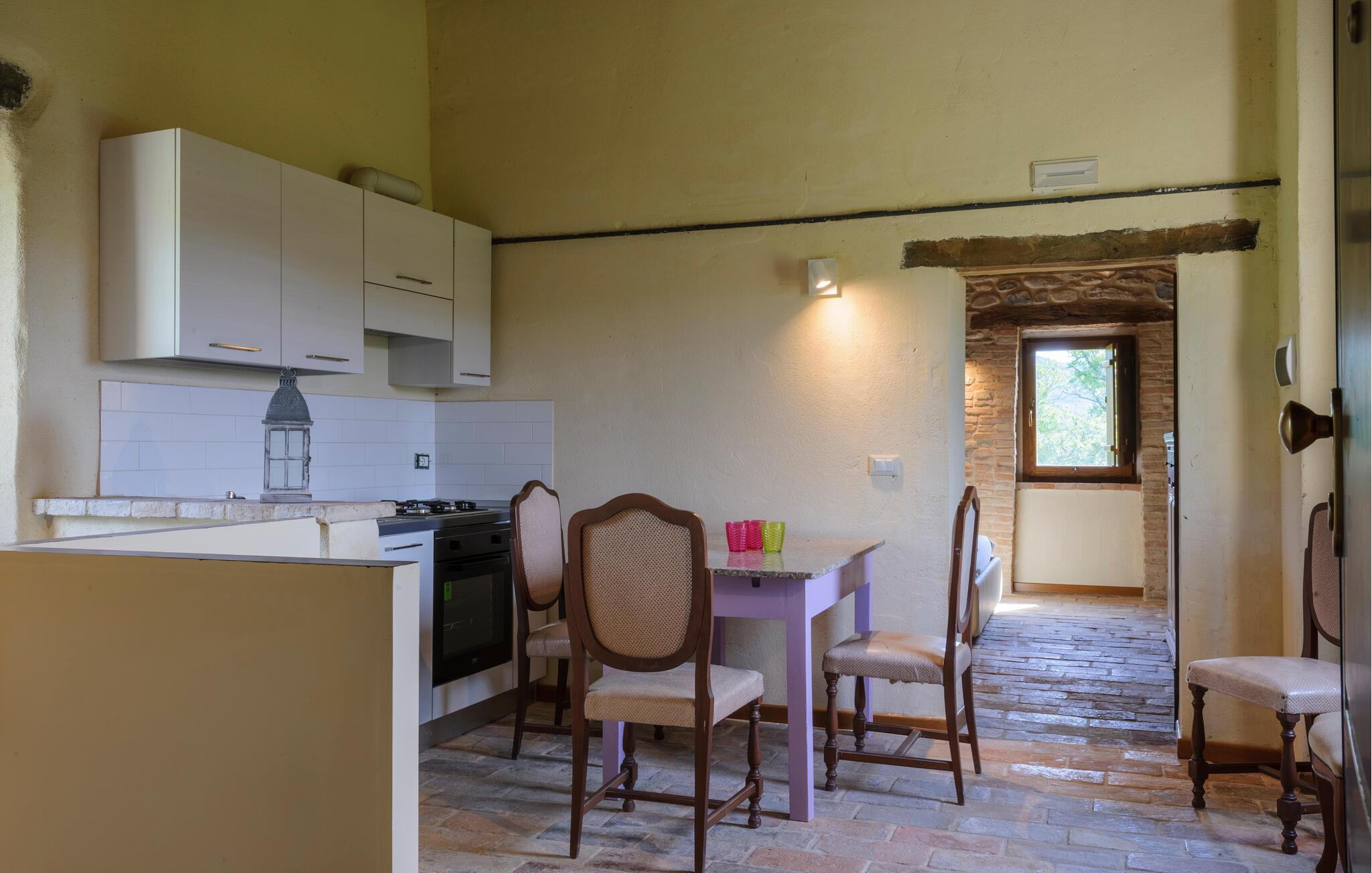 Jeres historiske feriehus i Frontino imponerer med sin rustikke stenarkitektur og lægger op til at opleve denne regions særlige charme. Træd ind i den hyggelige stue, der er udstyret med en indbydende sofa og stilfulde detaljer. Lad dagen begynde i denne varme atmosfære, måske med en bog i hånden eller en kop kaffe. Tilbered en lækker morgenmad i køkkenet. Kombinationen af moderne bekvemmeligheder og traditionelt design skaber en særlig hyggelig atmosfære. Sæt jer derefter ved det rummelige spisebord og nyd jeres måltider i en omgivelser, der udstråler autentisk italiensk hjemlig hygge.