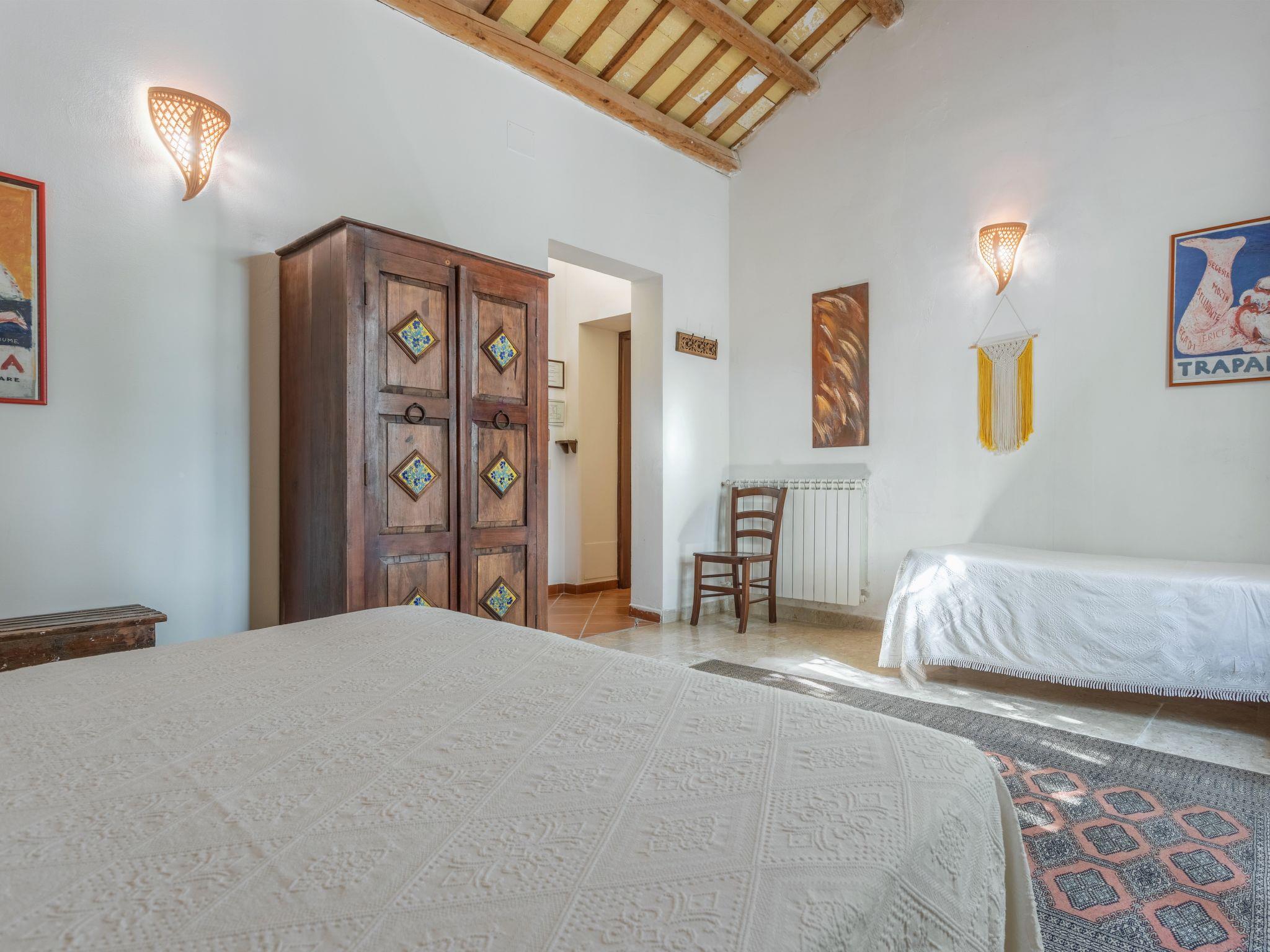 Farmhouse 300 m a.s.l., built in 1921, surrounded by fields. 3.5 km from the centre of Buseto Palizzolo, 7 km from the centre of Fulgatore, 18 km from the centre of Trapani, in a sunny position, 12 km from the sea, 18 km from the beach. Private: property 1'000 m2, swimming pool (10 x 4 m, depth 140 - 180 cm, seasonal availability: 26.Apr. - 31.Oct.). Pool maintenance by the owner/gardener. Breakfast on request (extra). Parking (for 3 cars) on the premises. Grocery 2 km, supermarket 5.5 km, restaurant 1 km, bus stop 19 km, railway station "Trapani" 20 km, sandy beach "Cornino" 18 km. Nearby attractions: Saline di Trapani 19 km, Trapani porto Aliscafi per Isole Egadi 20 km, Parco Archeologico di Segesta 20 km, Erice 22 km, San Vito lo Capo 33 km, Marsala 38 km. Hiking paths: Riserva Naturale dello Zingaro 24 km. Please note: car recommended. Main road 10 m from the property. The tap water has no drinking water quality.