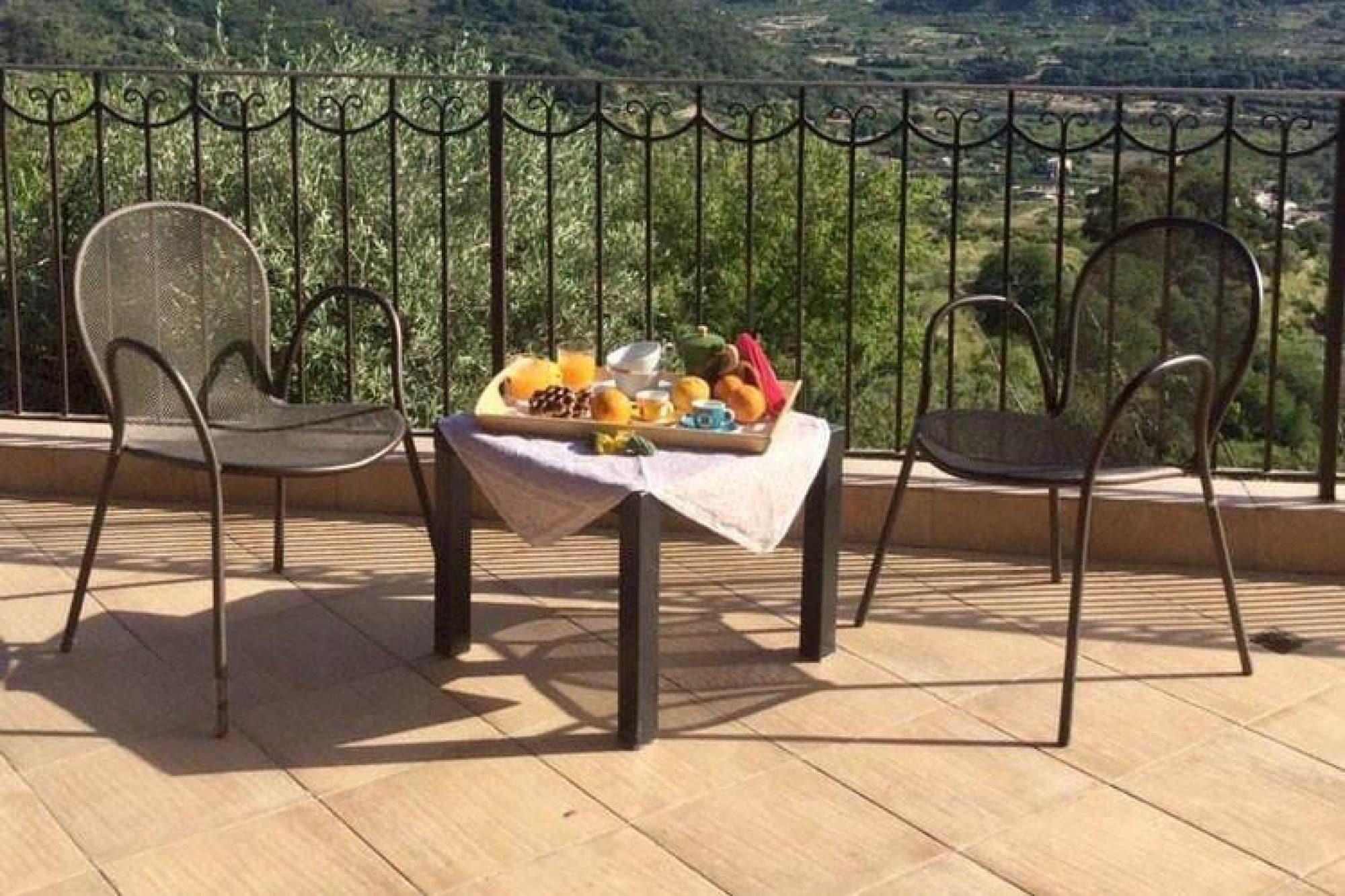 Rustikt og komfortabelt indrettet feriehus med swimmingpool, roligt beliggende over landsbyen Gaggi. På grund af sin beliggenhed på skråningen har du en smuk udsigt over de omkringliggende bjerge, havet og Etna. Huset strækker sig over to etager og har en stue/spisestue med tekøkken, to soveværelser og 1 badeværelse i stueetagen og et soveværelse med en-suite badeværelse på øverste etage (tilgængelig via en udvendig trappe). Ved siden af er en semi-overdækket terrasse med udekøkken. Detaljer: Forbrugsbaserede energiomkostninger, sengelinned, håndklæder, slutrengøring, WiFi-mobilitet: Ikke egnet til personer med nedsat mobilitet