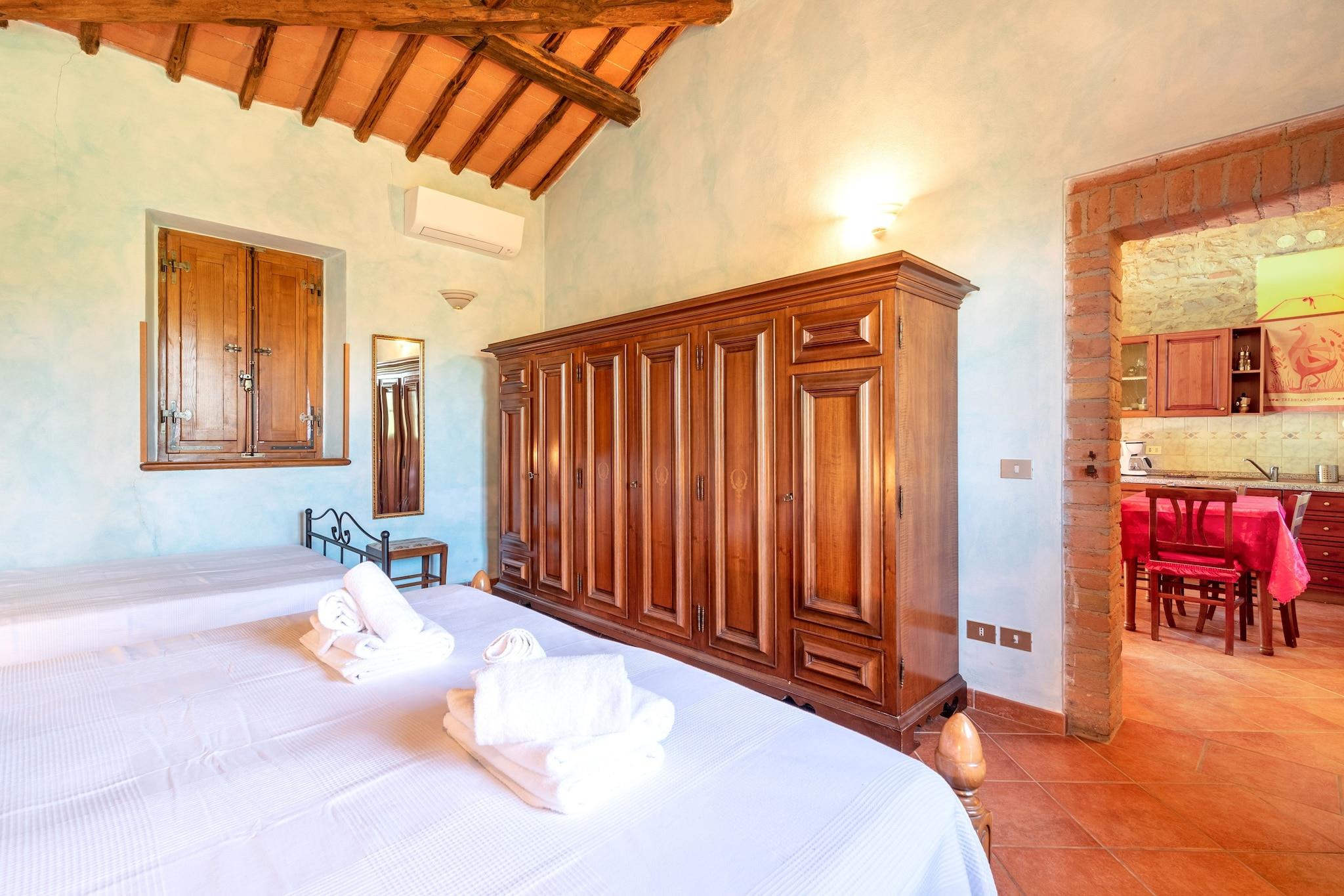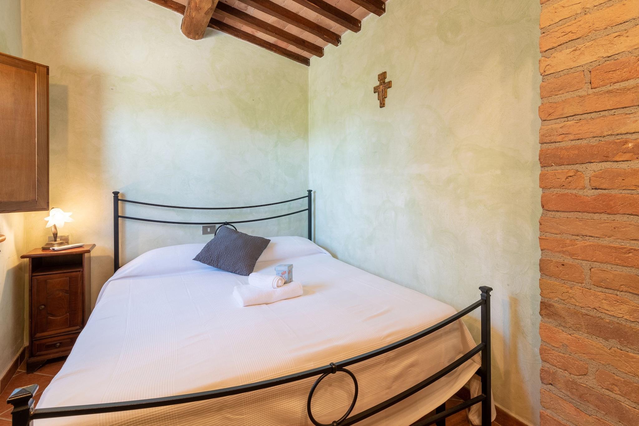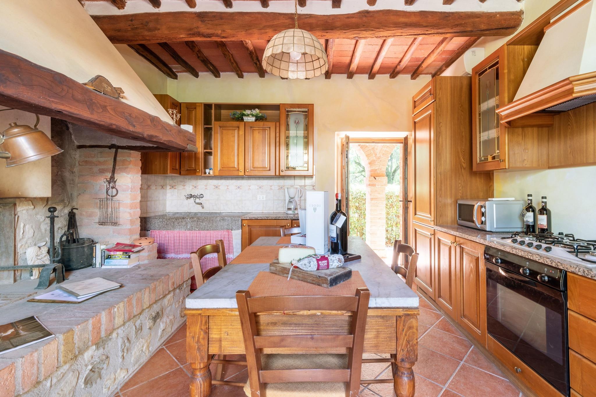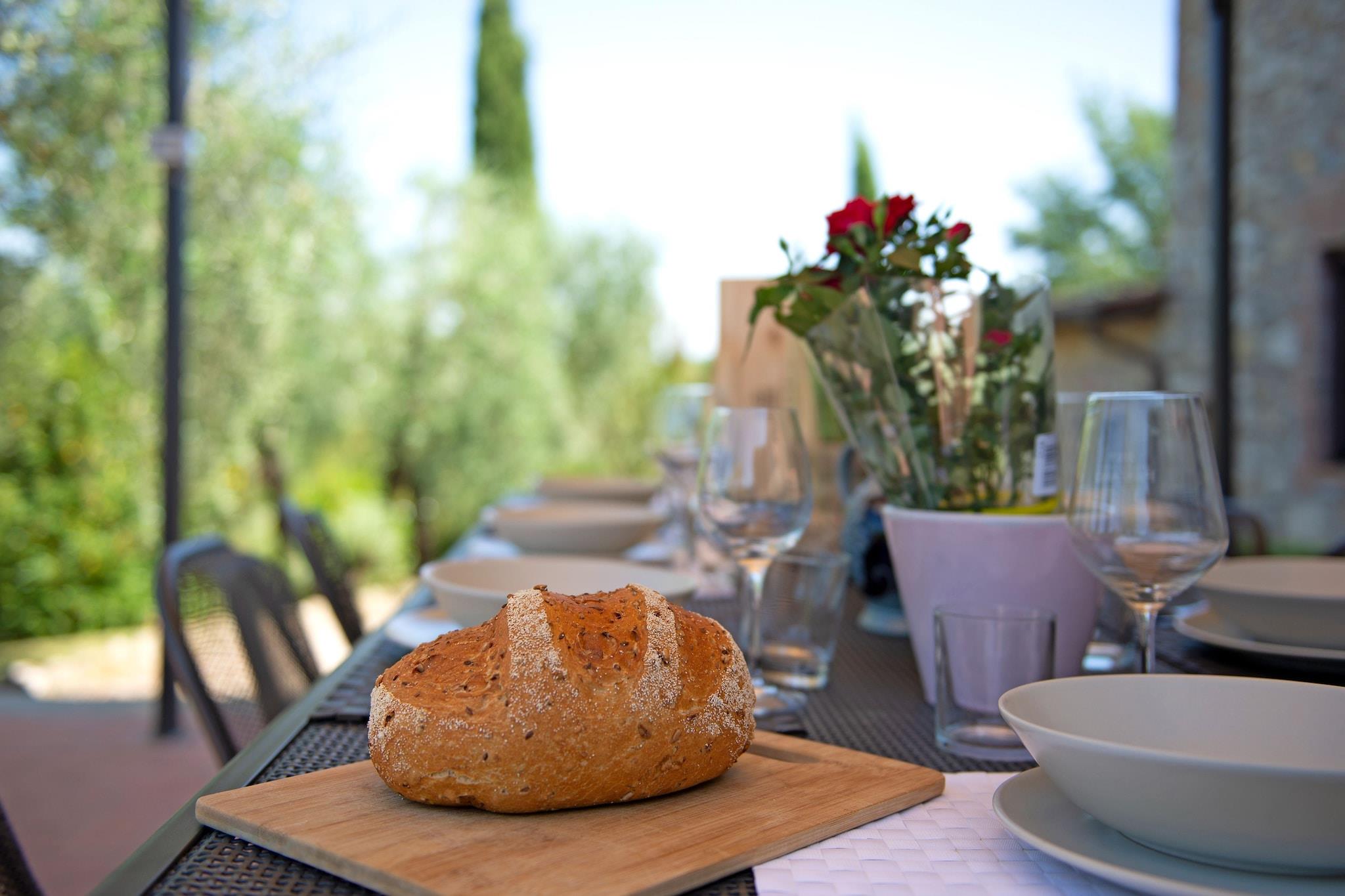 Ferie i hjertet af Chianti Classico i Gaiole in Chianti. Autentisk og charmerende feriehus omgivet af en have, hvor udsigten fortaber sig i bølgende bakker dækket af rækker af vinstokke og oliventræer. _x000D_ _x000D_ Indånd duften af træet, der er rigt på stenege, enebær og eg. Oplev de smukkeste kunstbyer og historiske landsbyer i Toscana: Gaiole in Chianti (15 km), Radda in Chianti (20 km), Castellina in Chianti (27 km), Panzano (30 km. ); Monteriggioni (33 km), Siena (20 km), San Gimignano (55 km), Firenze (80 km), Arezzo (70 km). Ejeren vil måske give dig en rundvisning, hvor du kan smage den himmelske vin._x000D_ _x000D_ En fortryllende udsigt over slottet Brolio er en fryd fra poolen. Udenfor er der en stor terrasse udstyret til at spise frokost med din familie og venner. Stuehuset ender med en del af et rækkehus beboet af en reserveret familie, der ikke vil invadere dit privatliv. Børn, kæledyr er velkomne, og gratis Wi-Fi sikrer jævn surfing og mulighed for at arbejde eksternt.