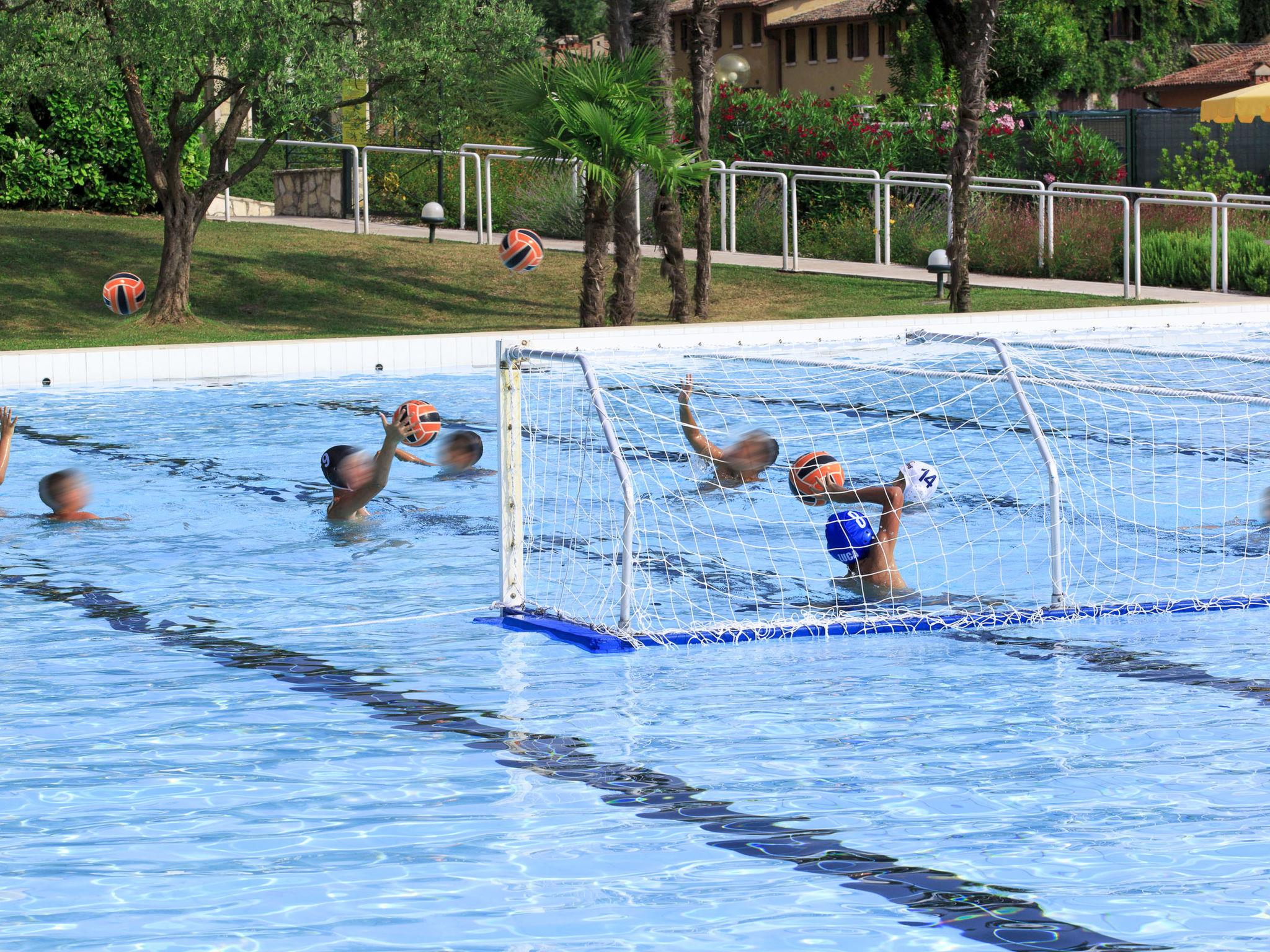 Very large resort "Poiano Resort Appartamenti", 2 storeys. 160 apartments in the residence. Above Garda, on the outskirts, 3 km from the centre of Garda, in an elevated position on top of a hill, 3 km from the lake. For shared use: property 60 ha, terraced garden with lawn and trees, swimming pool (50 x 25 m, depth 140 cm, seasonal availability: 15.Mar. - 15.Nov.). WC in the pool area, children's pool, outdoor shower, tennis (4 x clay court), floodlit (extra), table tennis, volleyball court, beach volleyball, children's playground. In the complex: reception, restaurant, bar, breakfast room, WiFi, fitness room, spa area for shared use (extra), shopping facilities, central heating system, air conditioning, washing machine (extra), tumble dryer (extra), bicycle rental. Towel change weekly (suppl. charge extra). Room cleaning on request (extra). Breakfast and half board possible on request (extra). Parking on the premises. E-charging station. Bus stop "Free Shuttle Bus Poiano - Garda" 100 m, pebble beach 3 km. Golf course (2 hole) 50 m. Nearby attractions: Golf Club Ca' degli Ulivi (18 holes) 4 km, Peschiera del Garda 17 km, Verona 38 km. Please note: entertainment in the season. Suitable for families, suitable for seniors baby equipment on request (extra), in the season. Access to the Spa for adults only.