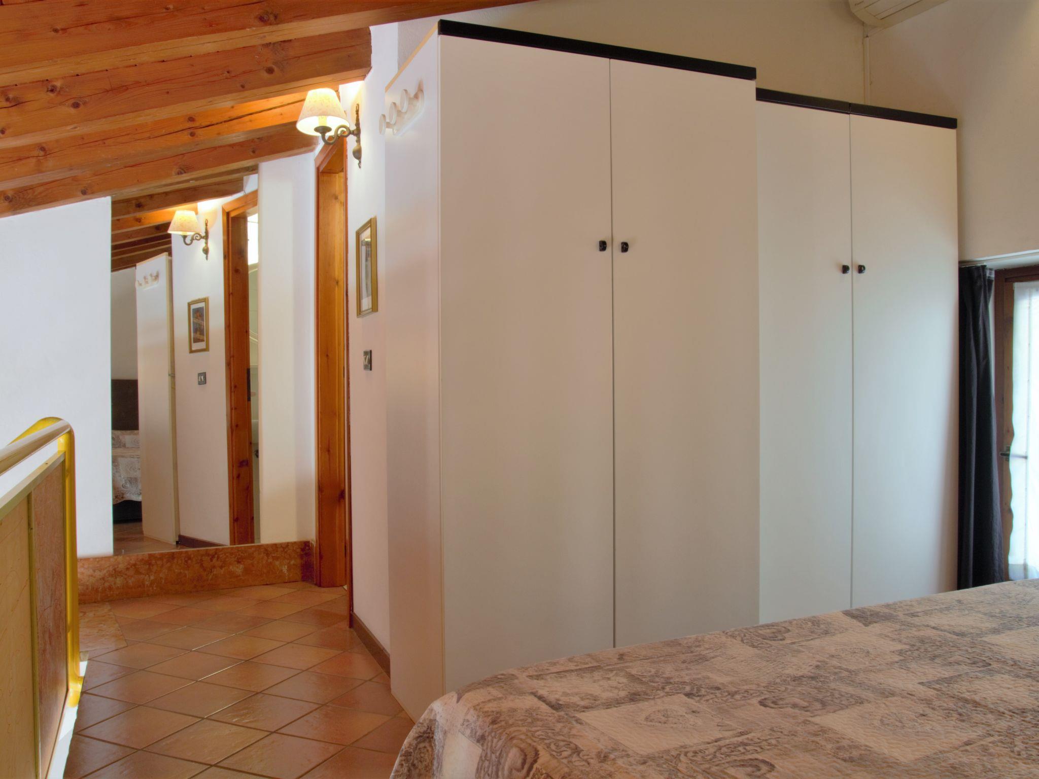 1-room apartment 51 m2 on 2 levels on 1st floor. Practical furnishings: living/sleeping room with 1 sofabed, 1 double sofabed, dining table and satellite TV. Exit to the balcony. Open kitchen (4 gas rings, microwave, electric coffee machine). Upper floor: (open staircase) gallery with sloping ceilings with 1 double bed. Shower/bidet/WC. Air-conditioning, forced-air heating (extra). Heating not available in all rooms. Balcony. Balcony furniture. Distant view of the lake. Facilities: washing machine. Parking at the house. Please note: non-smokers only. Maximum 1 pet/ dog allowed. IT023036B4R937XSBC
