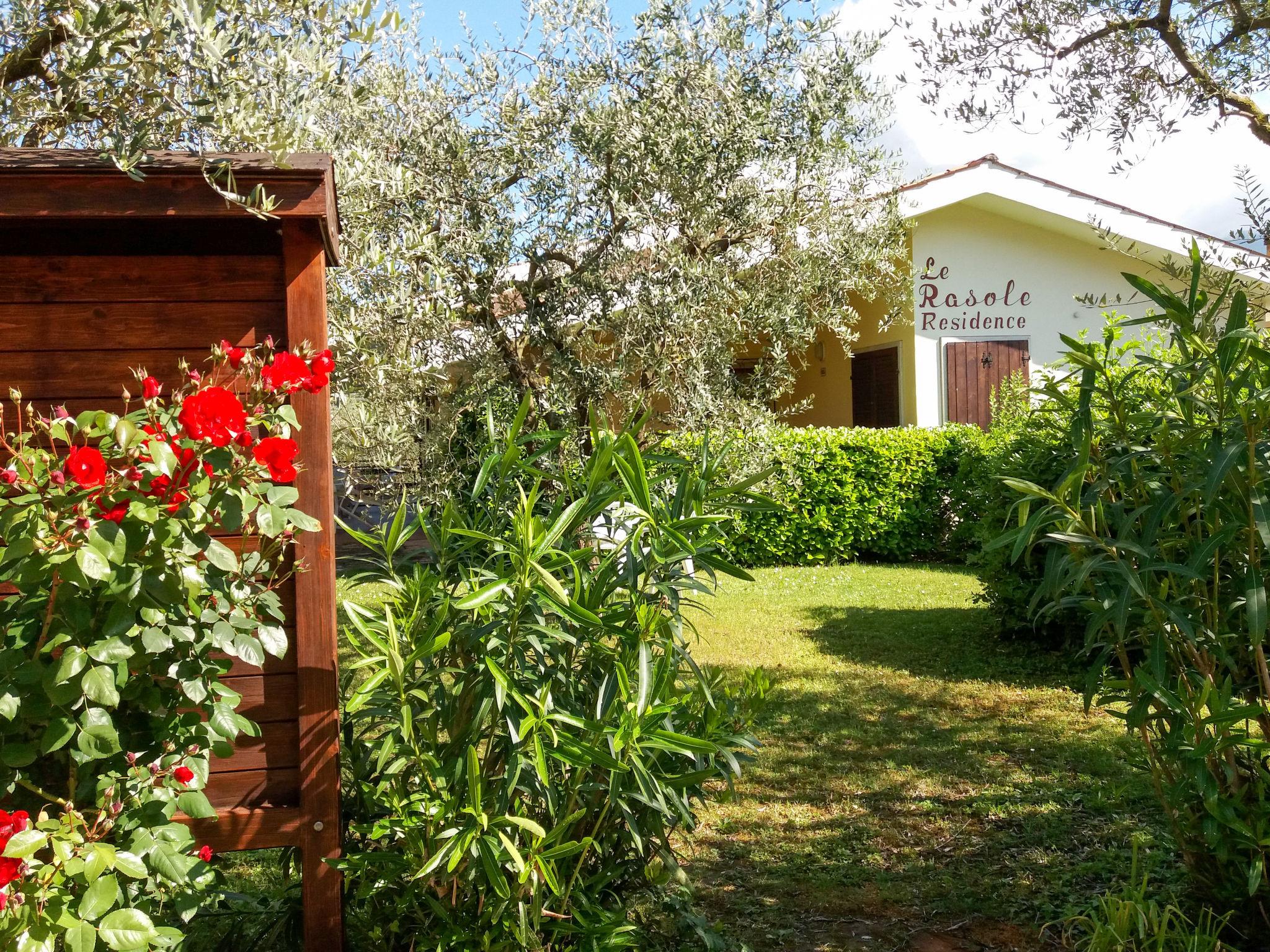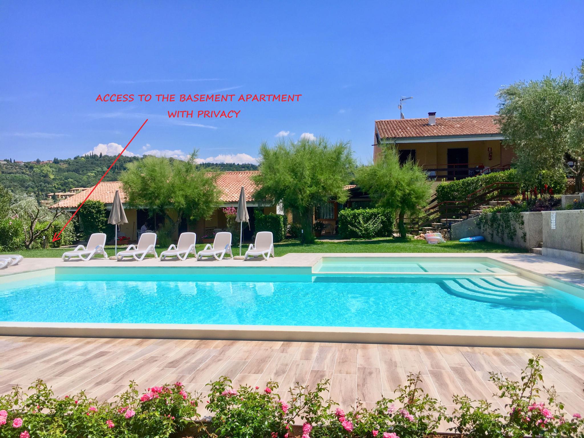 Residence "Le Rasole", 2 storeys. 10 apartments in the residence. On the outskirts, 2 km from the centre of Garda, on a slope, residential area (villas), 2 km from the lake, in the countryside. For shared use: well-kept terraced garden with lawn and trees, swimming pool (12 x 4 m, depth 140 cm, seasonal availability: 15.May. - 30.Sep.). Outdoor shower, barbecue, children's playground. In the house: washing machine (for shared use). Stepped path to the house. Parking on the premises. Supermarket 1 km, restaurant 50 m, pedestrian zone 2 km, bus stop 1.3 km, ferry "Ferry Terminal Garda" 2.2 km, pebble beach 2 km, thermal baths "Gardacqua" 2 km. Golf course (18 hole) 4 km. Nearby attractions: Verona 37 km, Sirmione 30 km, Malcesine 30 km, Gardaland 16 km. The owner does not accept any youth groups.