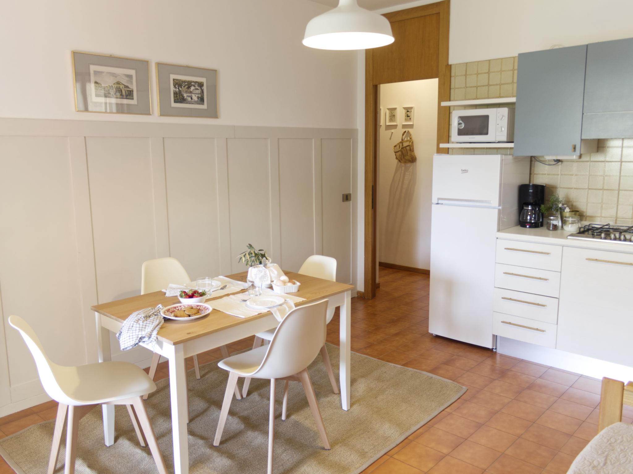 "Superior", 2-room apartment 50 m2, on the upper ground floor. Renovated in 2023, very comfortable furnishings: living/sleeping room with 1 sofabed, 1 pull-out bed, dining table and satellite TV. Exit to the terrace. 1 double bedroom. Open kitchen (dishwasher, Gas stove, 4 gas rings, toaster, microwave, electric coffee machine). Shower/bidet/WC. Gas heating, air-conditioning. Heating available only from 01.10. to 30.04. Large terrace roofed. Terrace furniture, deck chairs. View of the swimming pool, the garden and the countryside. Facilities: safe, children's high chair. Internet (WiFi, free). Parking (1 car). Please note: non-smokers only. Private entrance. IT023036B48K58OFWZ