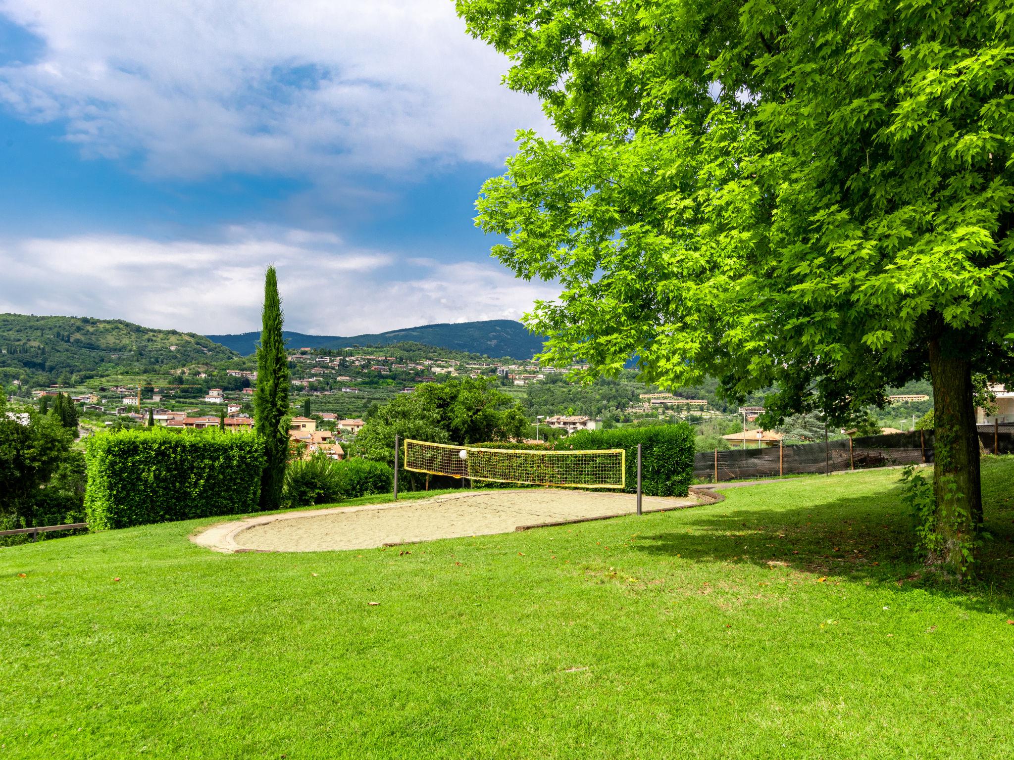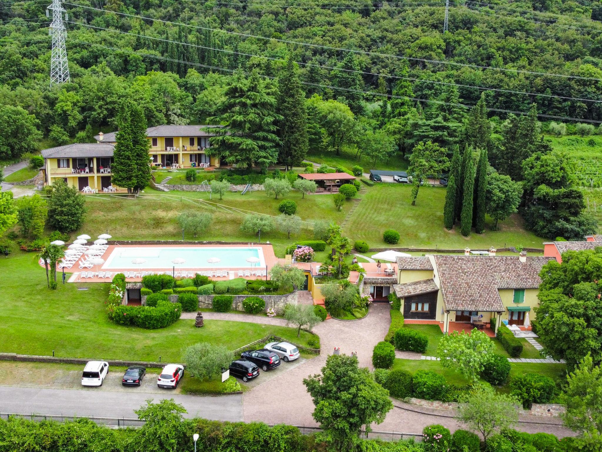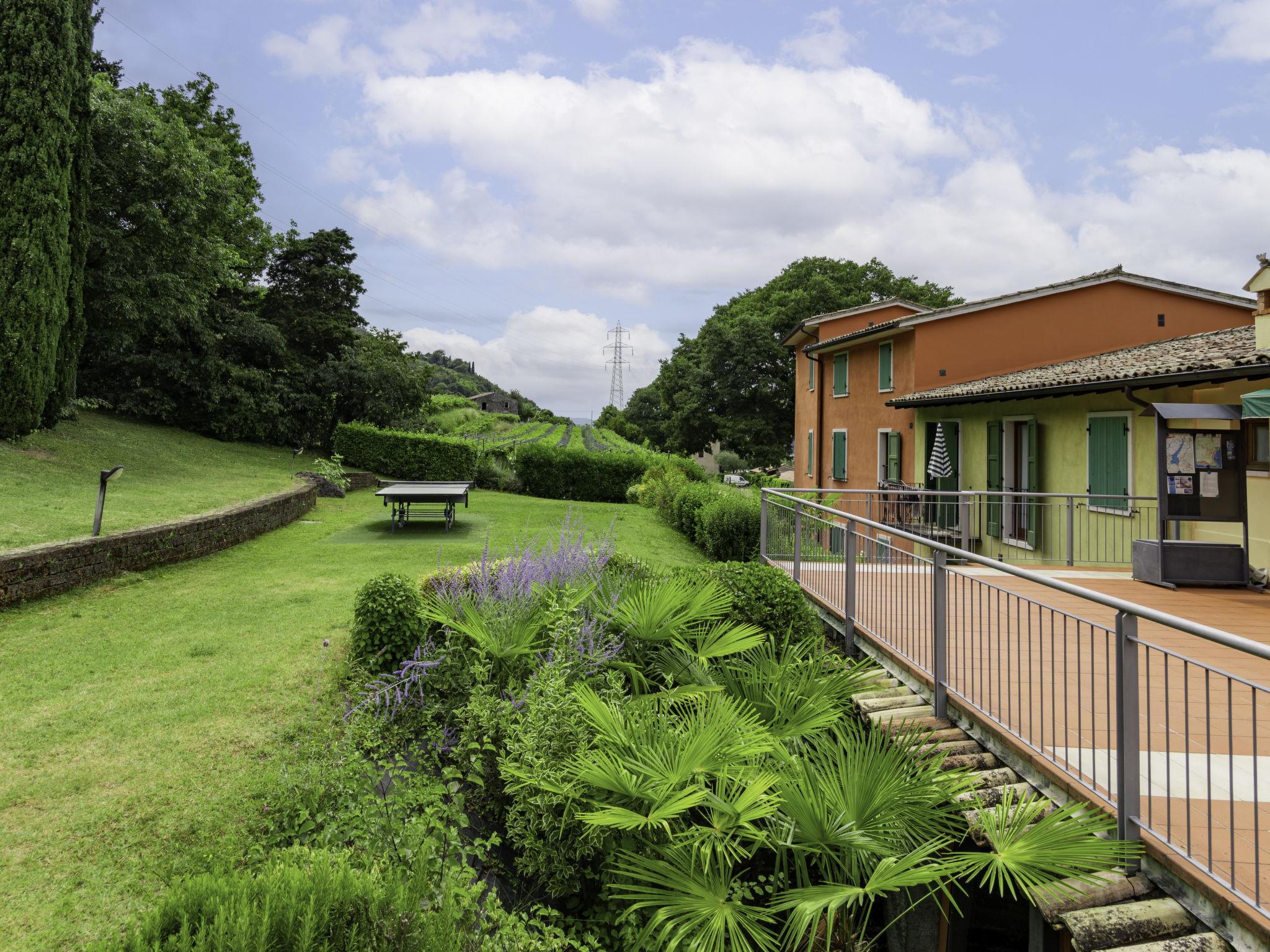 Residence "Corte Camaldoli". 20 apartments in the residence. On the outskirts, 1.2 km from the centre of Garda, on a slope, 1.5 km from the lake. For shared use: property 14'000 m2, well-kept terraced garden with lawn and trees, swimming pool (20 x 10 m, seasonal availability: 01.Apr. - 30.Oct.). WC in the pool area, outdoor shower, beach volleyball, patio, arbour, garden furniture, barbecue, children's playground. In the complex: reception, lounge with TV, internet access, WiFi, fitness room, table tennis, table football, storage room for bicycles, washing machine (for shared use), heating to be paid on the spot, bicycle rental. Bread roll service. Parking on the premises. Bus stop 20 m, pebble beach 1.5 km. Golf course (18 hole) 5 km. Nearby attractions: Peschiera del Garda 29 km, Malcesine 30 km, Verona 38 km. Hiking paths: Monte Baldo 30 km. The owner does not accept any youth groups. Residence with electric gates. Air conditioning only available from early June to mid September.