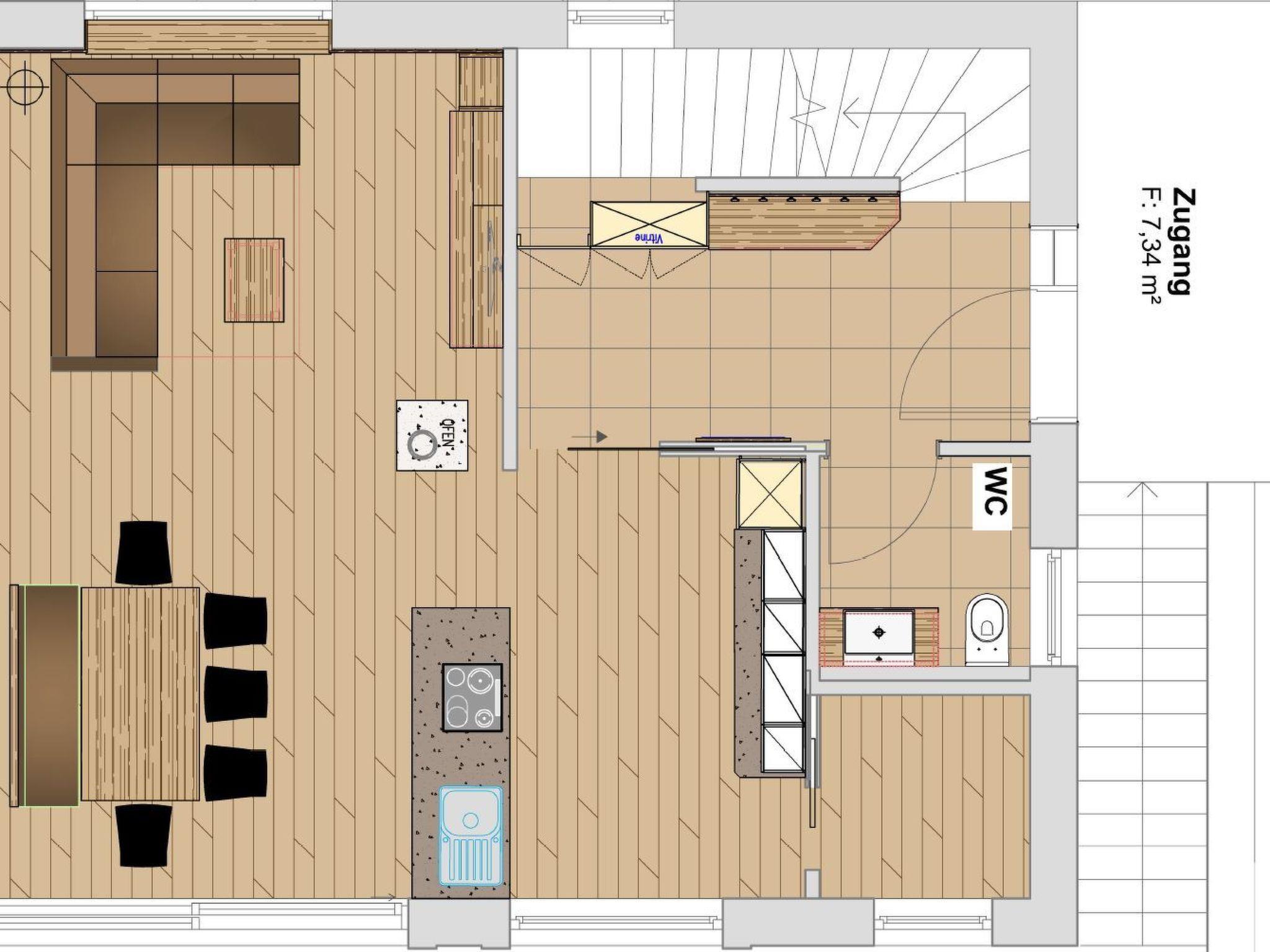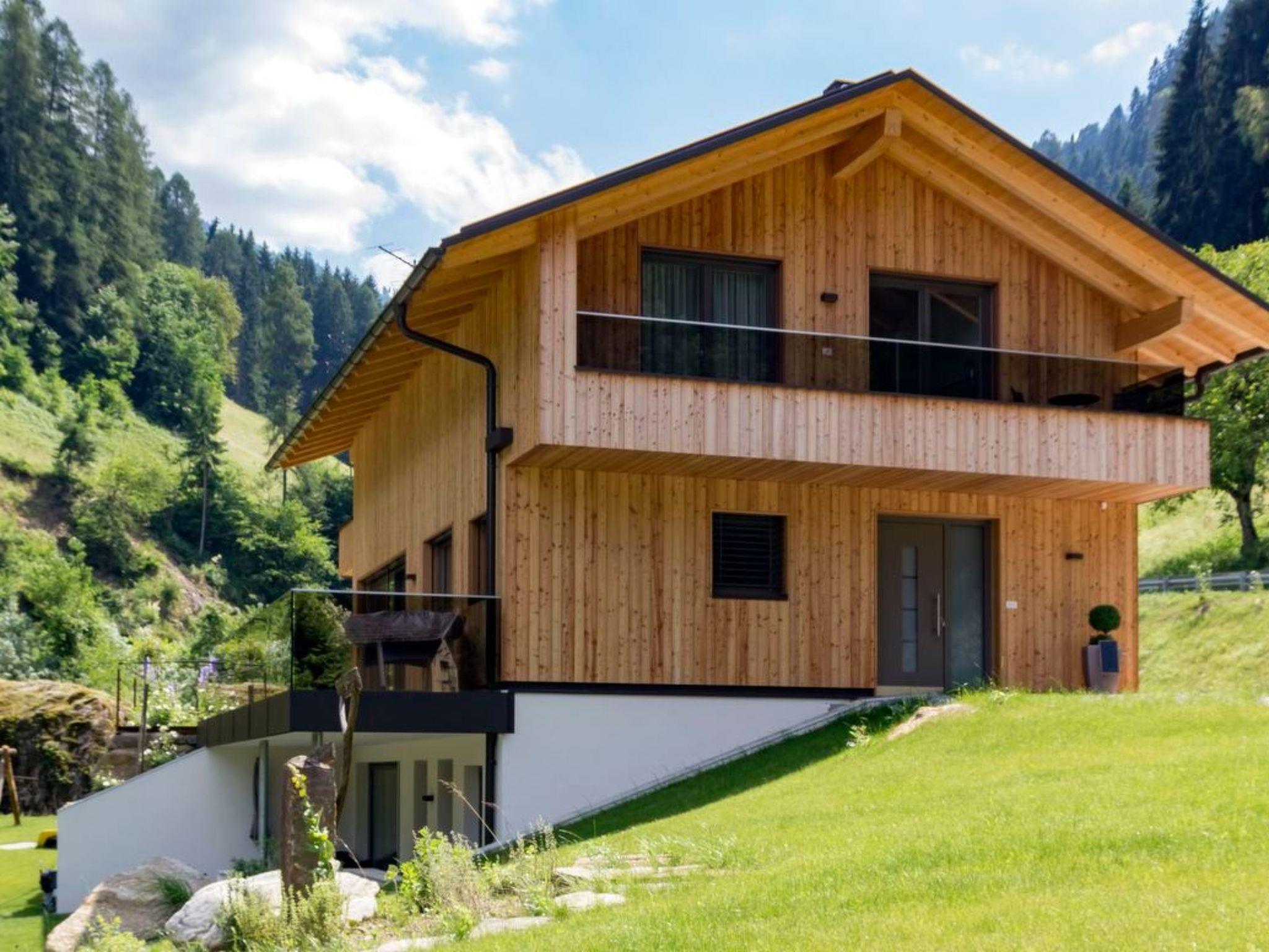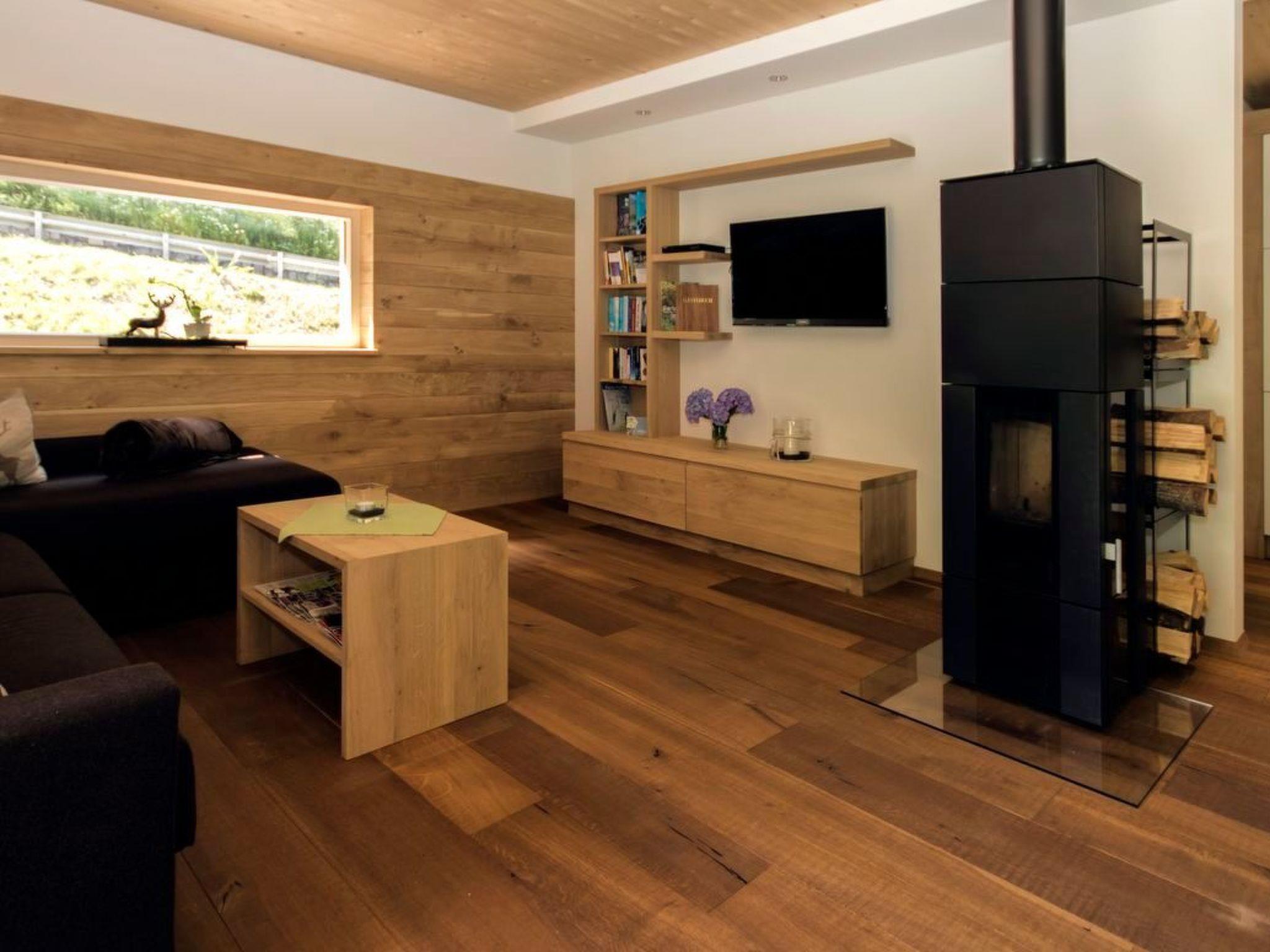 The owners have decided to build this new chalet in a natural and sustainable way, and the chalet and furnishings have been created with great attention to detail, tradition and a touch of luxury. The chalet offers enough space for up to eight people, making it an ideal place to spend your holiday with the whole family or with friends. Built in 2015, the holiday home has a living space of 170 m². On the ground floor, you will find a light-flooded communal area consisting of a comfortable living room, a cosy dining area and a modern cooking area. There is also a guest WC and a cloakroom, from where the staircase branches off to the upper floor. The upper floor includes a hallway from where the three double bedrooms and two bathrooms are individually accessible. In the basement you will find a small wellness area and a laundry room with washing machine and tumble dryer. The three bedrooms are each furnished with an indirectly lit, comfortable double bed with a width of 200 cm and are approx. 1.60 m below the sloping roof at the lowest point. Each bedroom has a wardrobe, a desk and a flat-screen TV with satellite channels. While one bathroom is designed as a full bathroom with shower cubicle, bathtub and bidet, the second bathroom has a shower. Both bathrooms have a WC. The open-plan kitchen with its spacious cooking island invites you to cook together: The gas hob and raised oven are a dream for amateur chefs. A dishwasher, a fridge with freezer compartment and the usual small electrical appliances are of course also available. Take a seat at the solid dining table on a bench and four traditionally designed wooden chairs. During your meal, you can enjoy a far-reaching view of the natural surroundings through the floor-to-ceiling, almost continuous glass front. Past the wood-burning stove, which provides cosy warmth in winter, you reach the living area, where you can relax together on a corner sofa after a day out. A sauna and relaxation loungers await you in the basement.