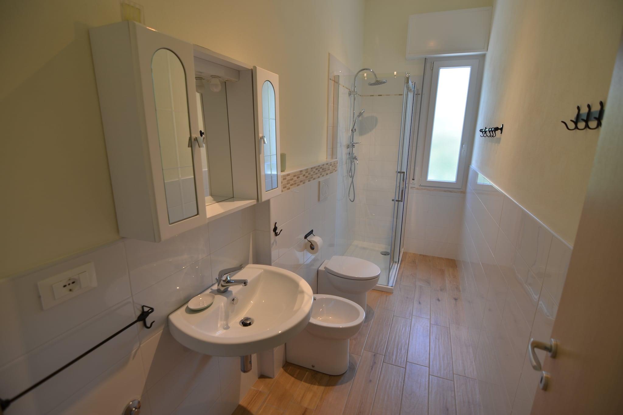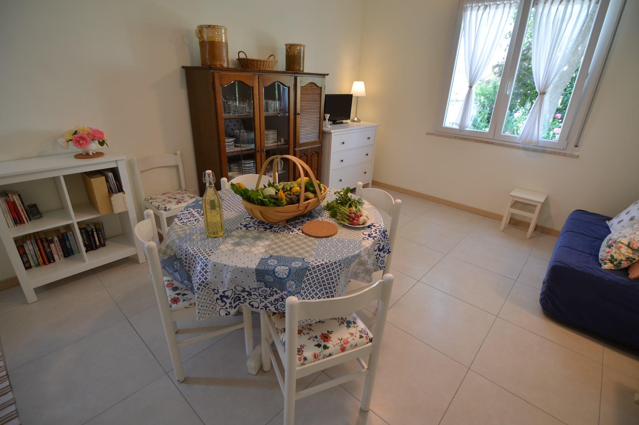 Denne indbydende lejlighed ligger i den charmerende by Gatteo Mare og tilbyder et afslappende fristed for op til fem gæster, hvor moderne komfort kombineres med Adriaterhavskystens skønhed. Stueetagen har en lys stue med en dobbelt sovesofa og tv, et åbent køkken med alt det nødvendige, et soveværelse med en dobbeltseng og en enkeltseng samt et rummeligt badeværelse med bruser, håndvask, toilet og bidet. Træd ud i den private have, hvor du kan nyde liggestole, udendørs spisning og adgang til et fælles grillområde. Sandstrandene ligger kun 1 km væk, mens vandsport i Atlantica (6,4 km) og Mirabilandia (25 km) byder på eventyr. Fiskentusiaster kan besøge Lago Felloniche 16 km væk, og der er cykler til rådighed til at udforske de maleriske omgivelser. Nærliggende restauranter serverer friske fisk og skaldyr og regionale specialiteter, herunder Osteria Bartolini (17 km) og Ristorante Caterina (4 km). Gæsterne kan også udforske kulturelle attraktioner som Castello Sigismondo og Fellini-museet. Med en perfekt blanding af afslapning, spisning og lokal udforskning er denne lejlighed et ideelt udgangspunkt for en mindeværdig ferie ved Adriaterhavet.