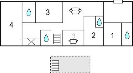 Badeværelse 4m2 (nr. 1) - WC. Varmt og koldt vand. Bruser