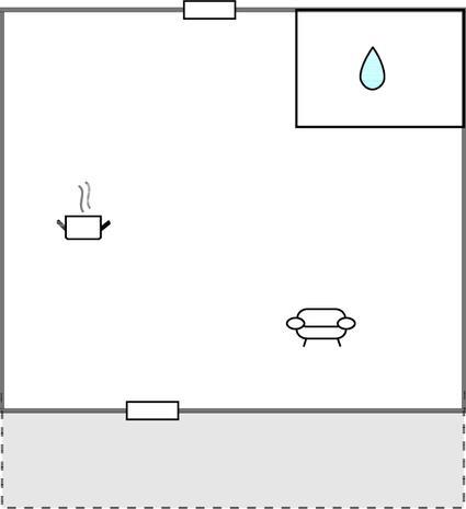 Opholdsstue/køkken 35m2 - 2 Sovepladser. (Sofa, madras eller lignende).